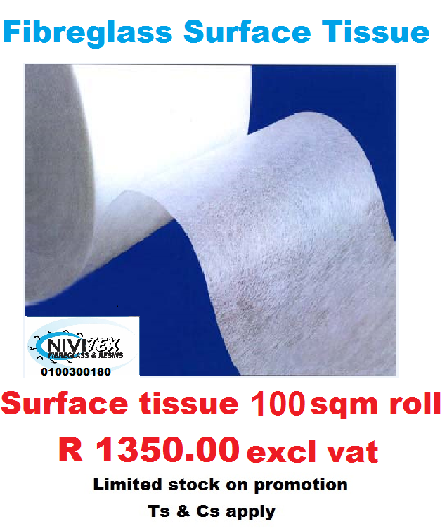 Are you looking for the final finish smooth finish on your fibreglass lay up or moulds. We at Nivitex Fibreglass & Resins has the solution. Fibreglass Surface tissue is the way to go. Contact me today! 010 030 0180view more