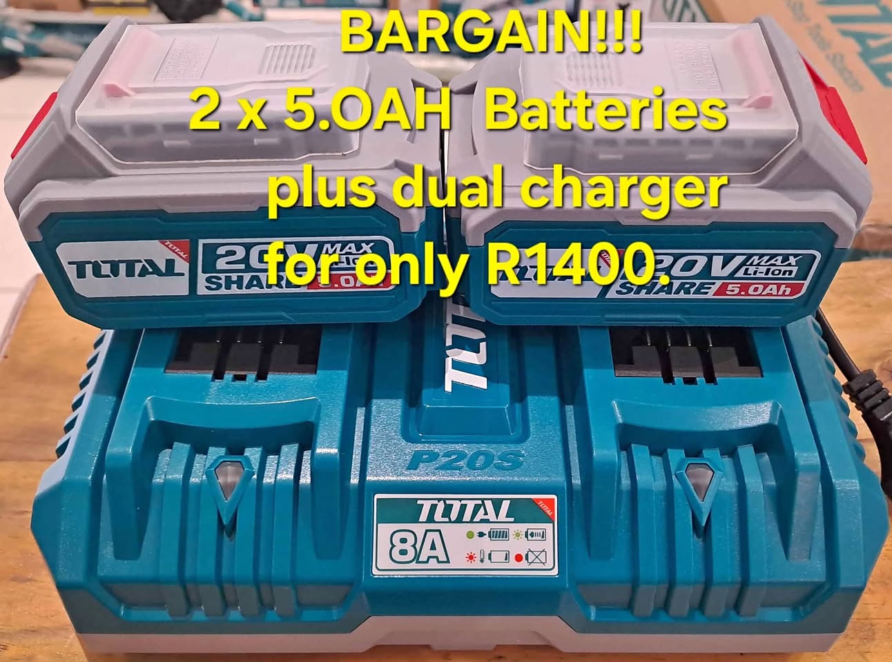 Collection in Goodwood Card facilities available Absolute Bargain: Brand New Total Tools 2 x 5.AH Batteries plus dual charger