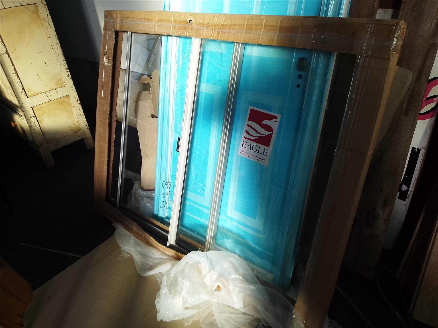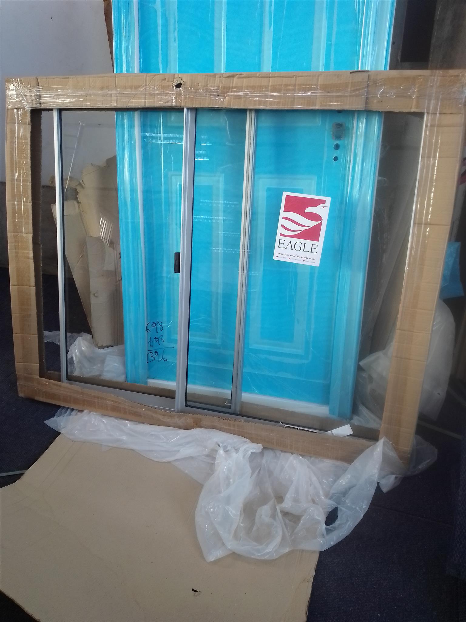 Aluminum 3 track windows and frame with mounting brackets (1.5m x 1.2 m) . More details:
