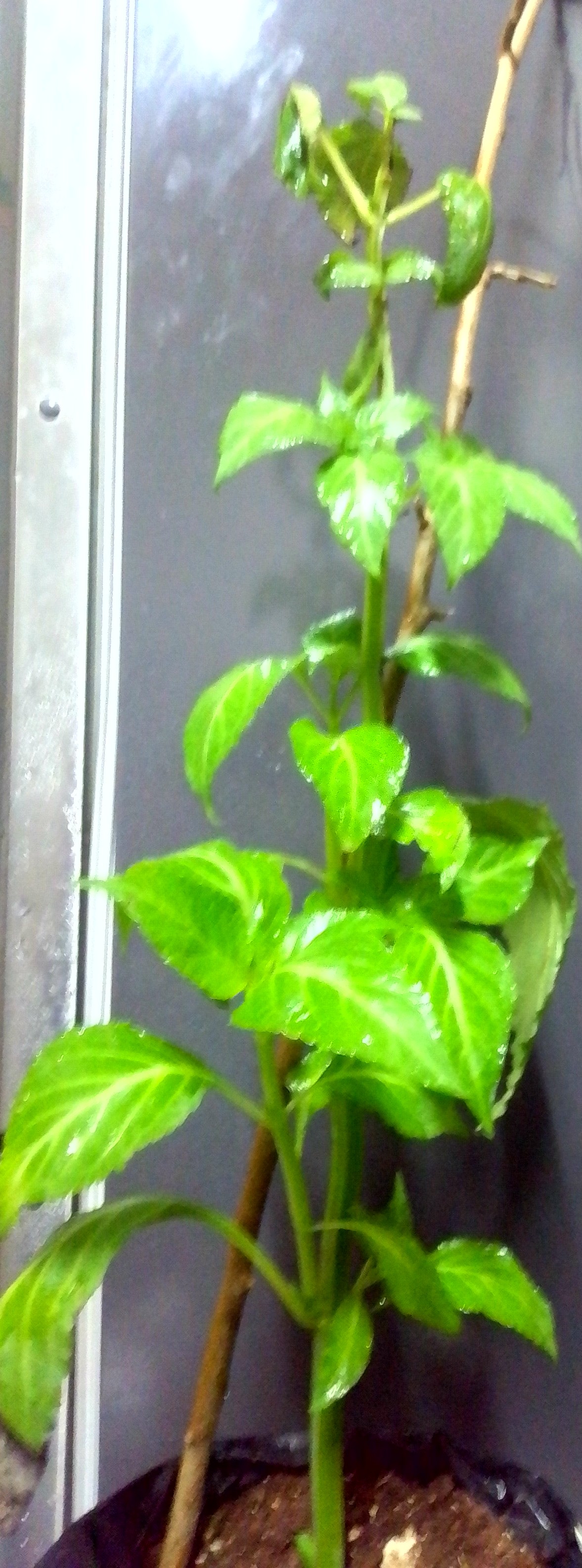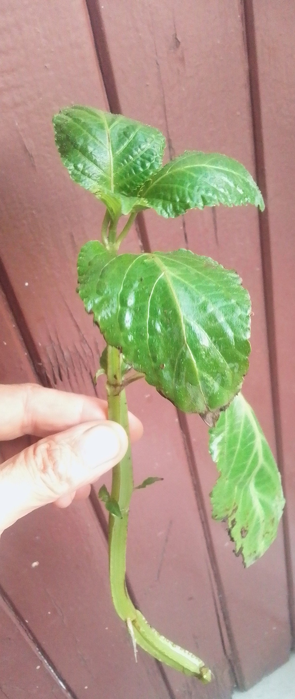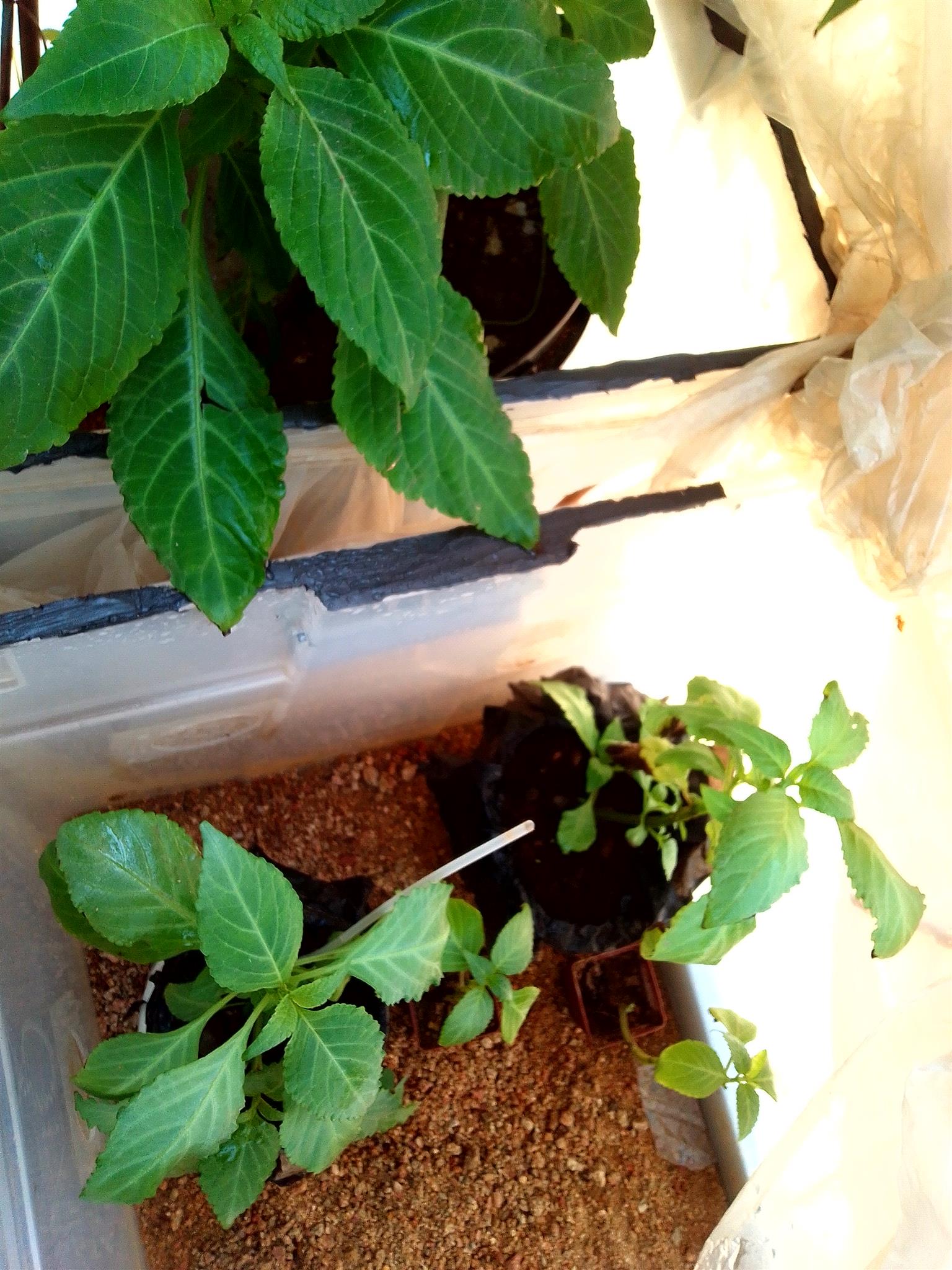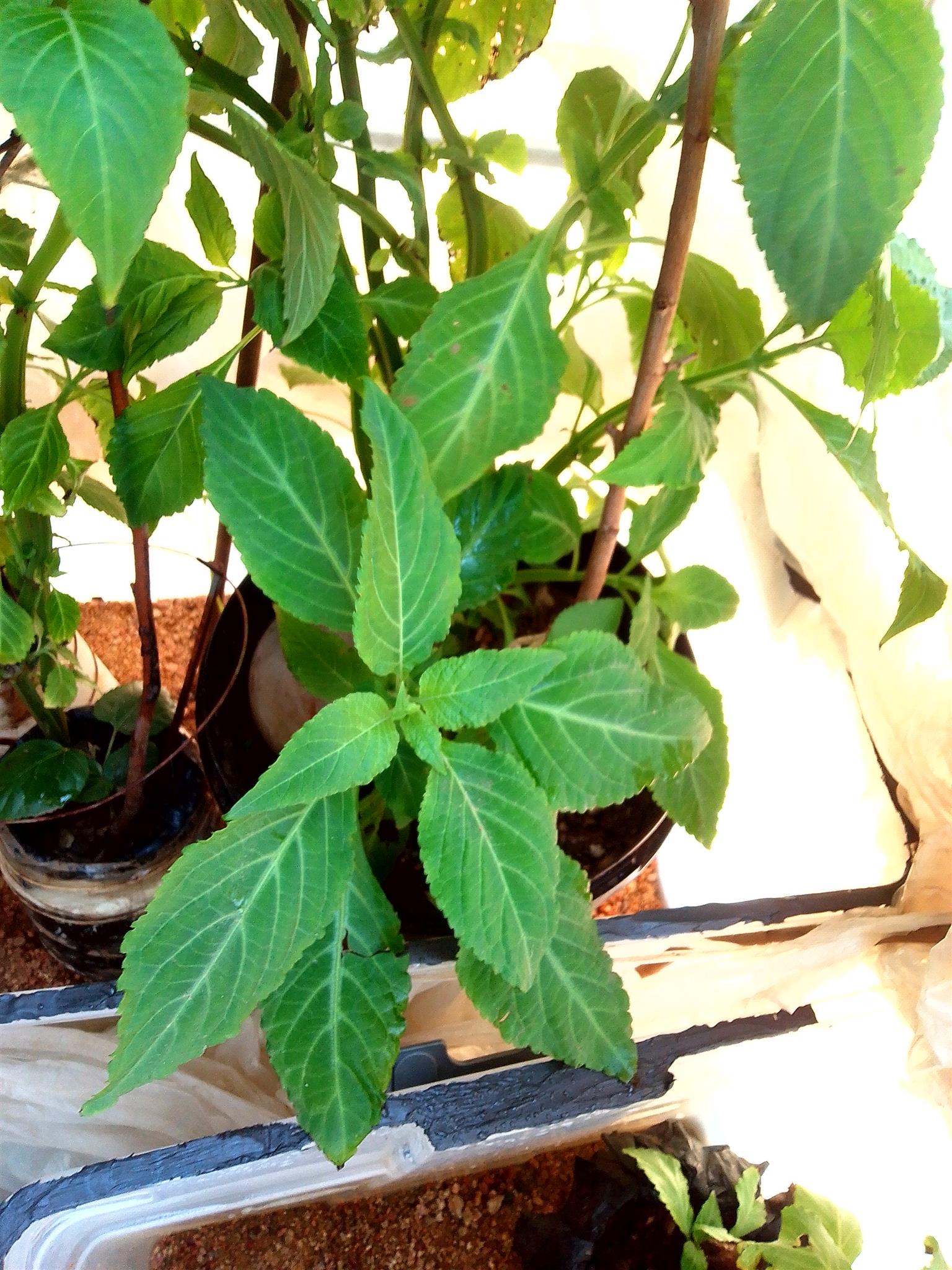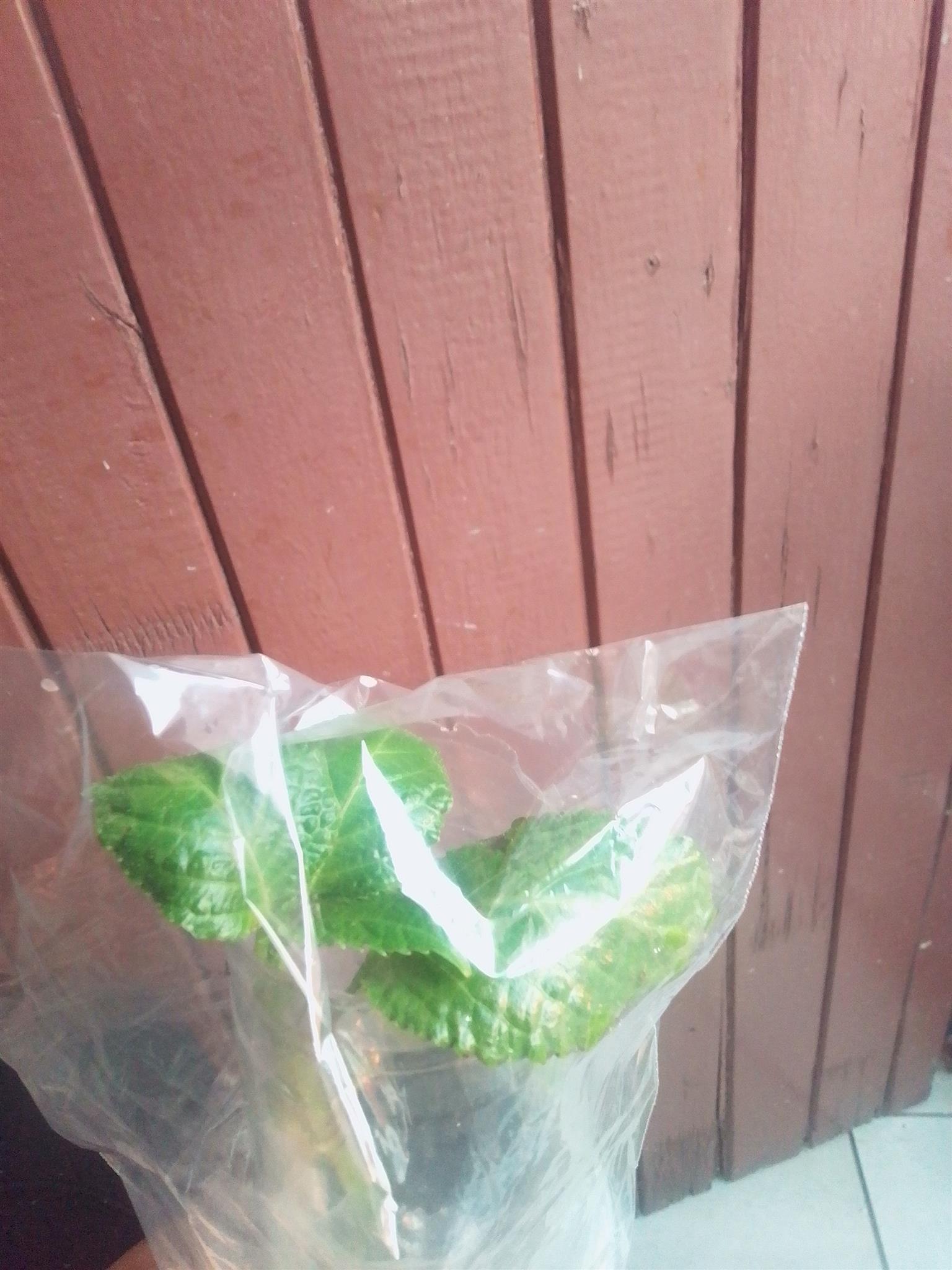 Keep well misted especially during sunny days in well drained well composted soil. Add some dry leaves and 1 cup of Bone meal or dry clean eggshells mixed into about 4litres of potting soil. Add a cup of pearlite if soil is to water logged. Water well the min it starts to droop and only water every two weeks or when the plant starts to droop a bit. Salvia hates wet feet. They love nutrient rich well drained soil with some rotting leaves and grass cuttings to grow superiorly. Add fish emulsion or velvet bean (muccuna prurience) if you can't stand the smell of fish emulsion. Ps. Ventilate well after applying fish emulsion because the fumes can kill the plant if left completely closed after. Use a garden spray bottle with filtered or distilled water to spray every day once a day or as needed in your area depending on weather. The leaves grow large and emerald green if we'll looked after and in the right conditions. Leaves burn and dries out fast when in the sun so keep semi shaded and humid enough. Dnt allow leaves or plant to dry out or droop to long and watch out for root rot if using soil that is not well drained or not clean enough. Potting soil is best because it has less pathogens. Plant in a larger container only once the roots are fully developed and almost outgrows the pot.