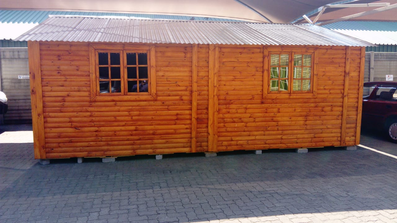 4mx6m log cabin one door, two windows 800mmx900mm, wooden floor, zinc roofing on top and we paint it with wax oil to prevent water damages