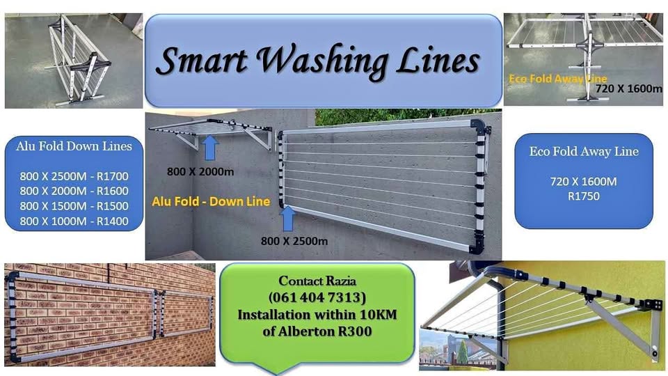 Smart Washing Lines *Aluminium *Foldable *Space Saver *Installation or DIY *Rust Free *Maintenance Free Contact Razia