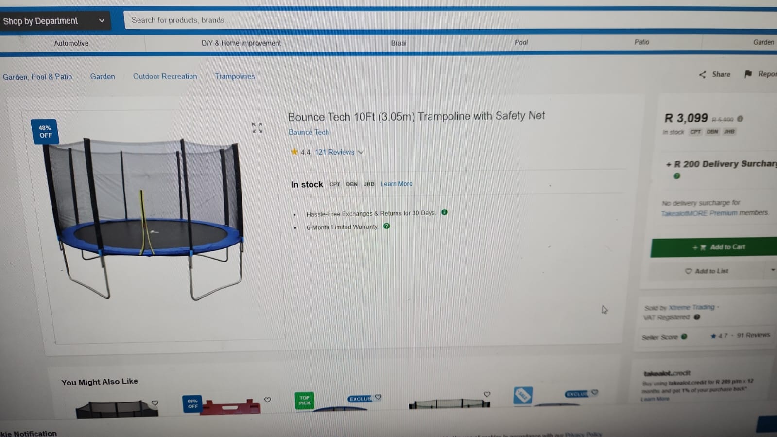 Selling a Bounce Tech 10ft (3.05m) Trampoline with safety net for just R2599!