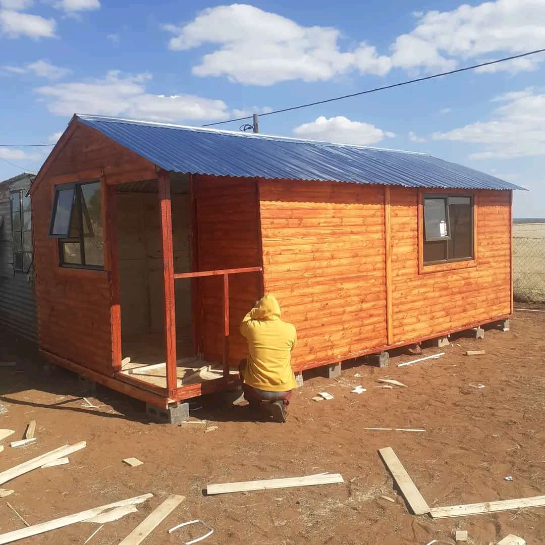 4x8m log wood with Alluminium windows and sliding door.We deliver everywhere. Contact Leticia on 0600187163/ 0600187163.