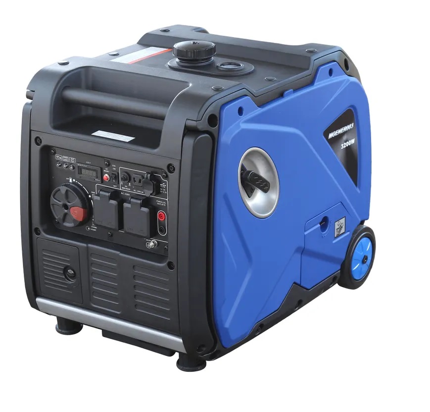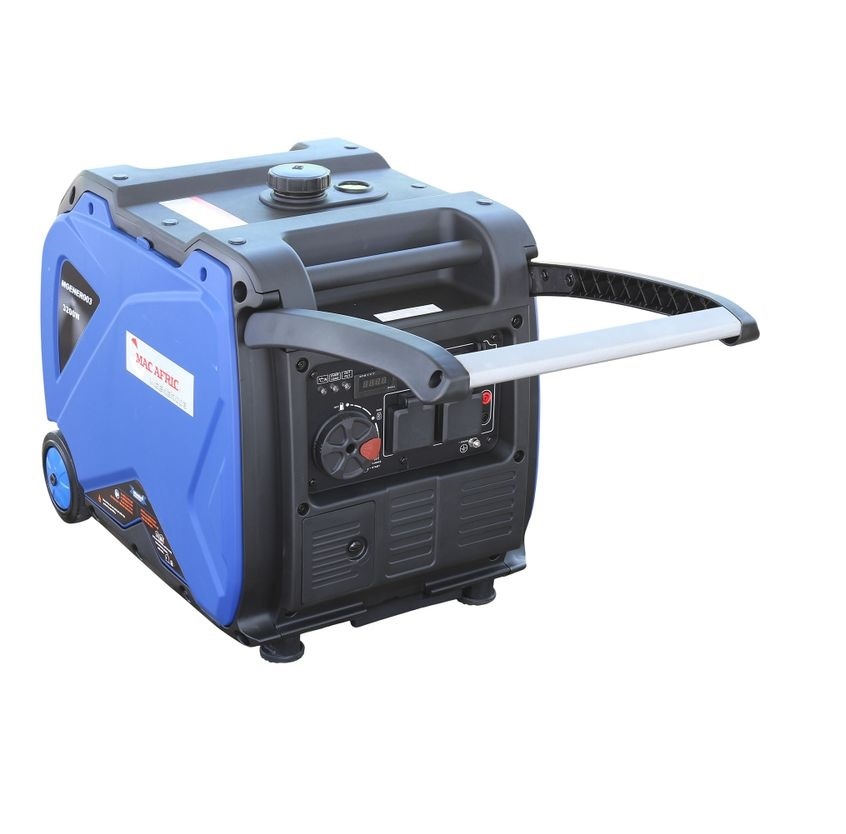 The MAC AFRIC 3.2kW is a larger inverter generator and offers a host of new features compared to traditional generators. Inverter generators produce pure sine wave electricity meaning that sensitive devices with microprocessors (such as TVs, recording equipment, and medical equipment) can safely run at optimal levels. This generator boasts reduced noise levels at 65 Dba which is quieter than most vacuums! The connectivity on offer is outstanding – with a digital display, 2 full-sized plugs, 2 USB ports, an integrated pull handle, and soft plastic wheels for easier maneuverability.