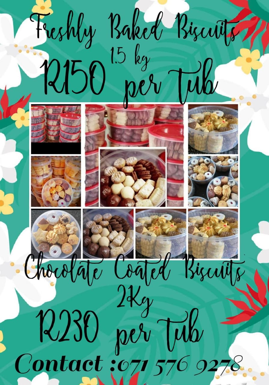 Buy 1.5kg freshly baked delicious biscuits for R 150. ๐ช๐ช๐ช & 2kg chocolate coated biscuits @ R230