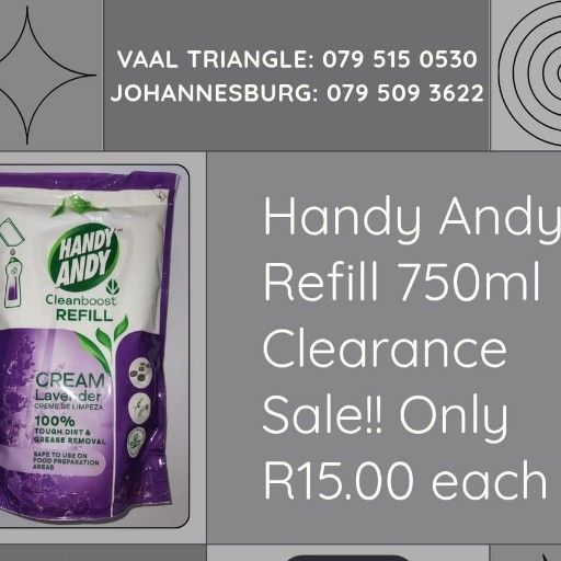 750ml Handy Andy lavender cream refills for sale can order as singles or a box of 12 jhb and Vaal triangle