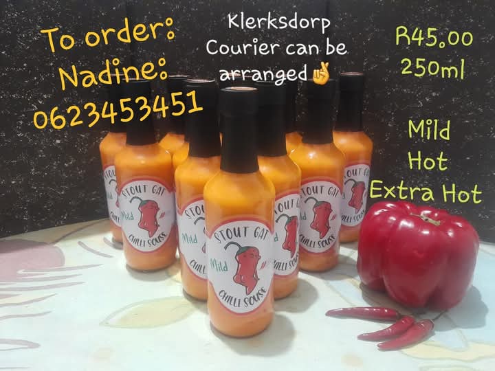 Mild , Hot and Extra hot sauses availible. Collection can be arranged at a local shop in Klerksdorp. Eft or Cash on Delivery Only.