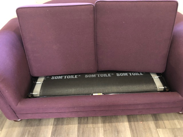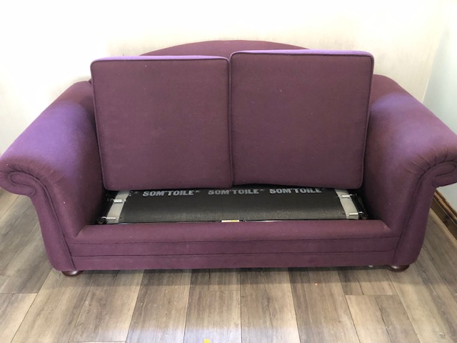 Sleeper couch, used, 15years. Som'toile for small children. Used for children of guests. New Material covering and cushions. Couch open up in three quarter bed for small children.