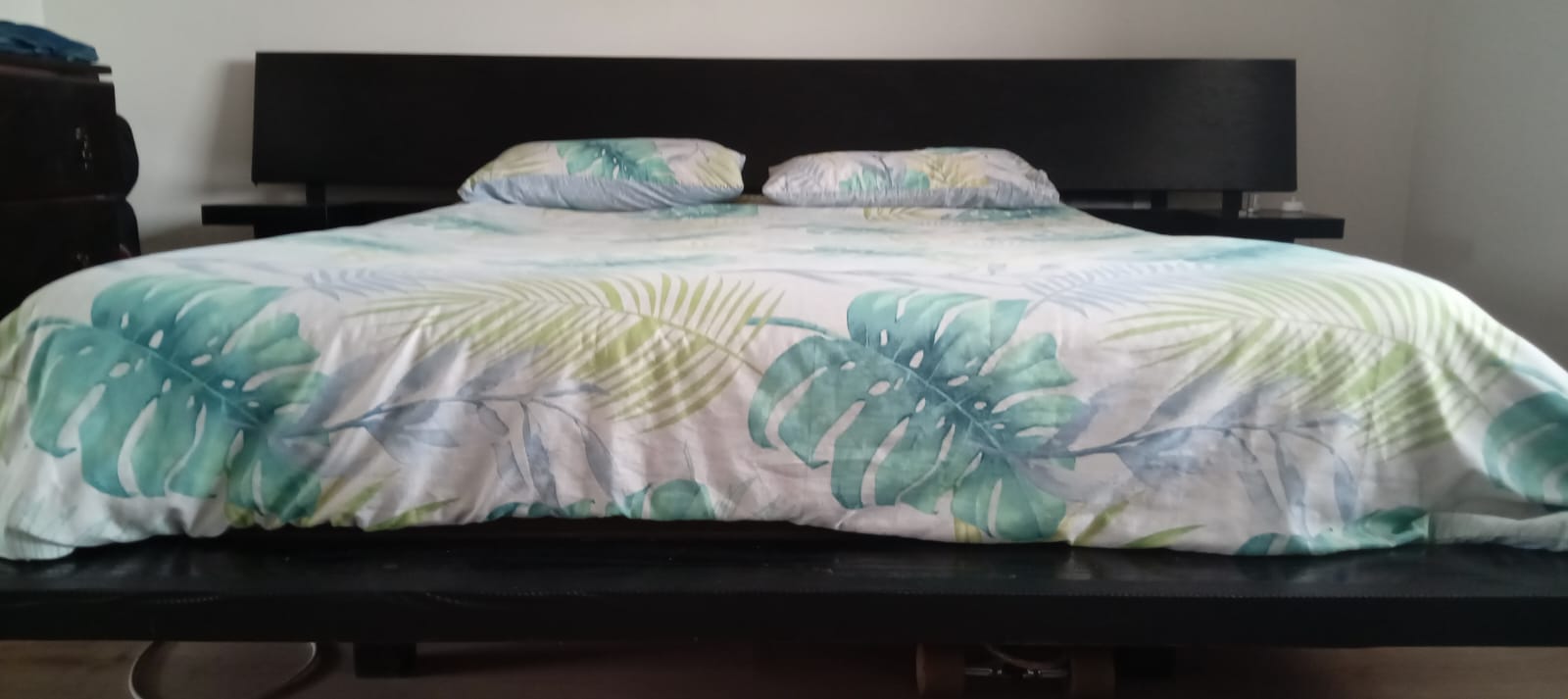 Floating bedroom suit - solid pine wood restonic queen size mattress included.