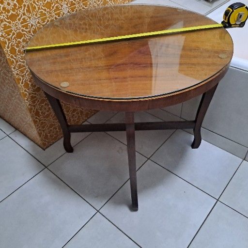 Pls whatsapp on Pls view pics for size Has a glass top aswell small chip view pics Wood table