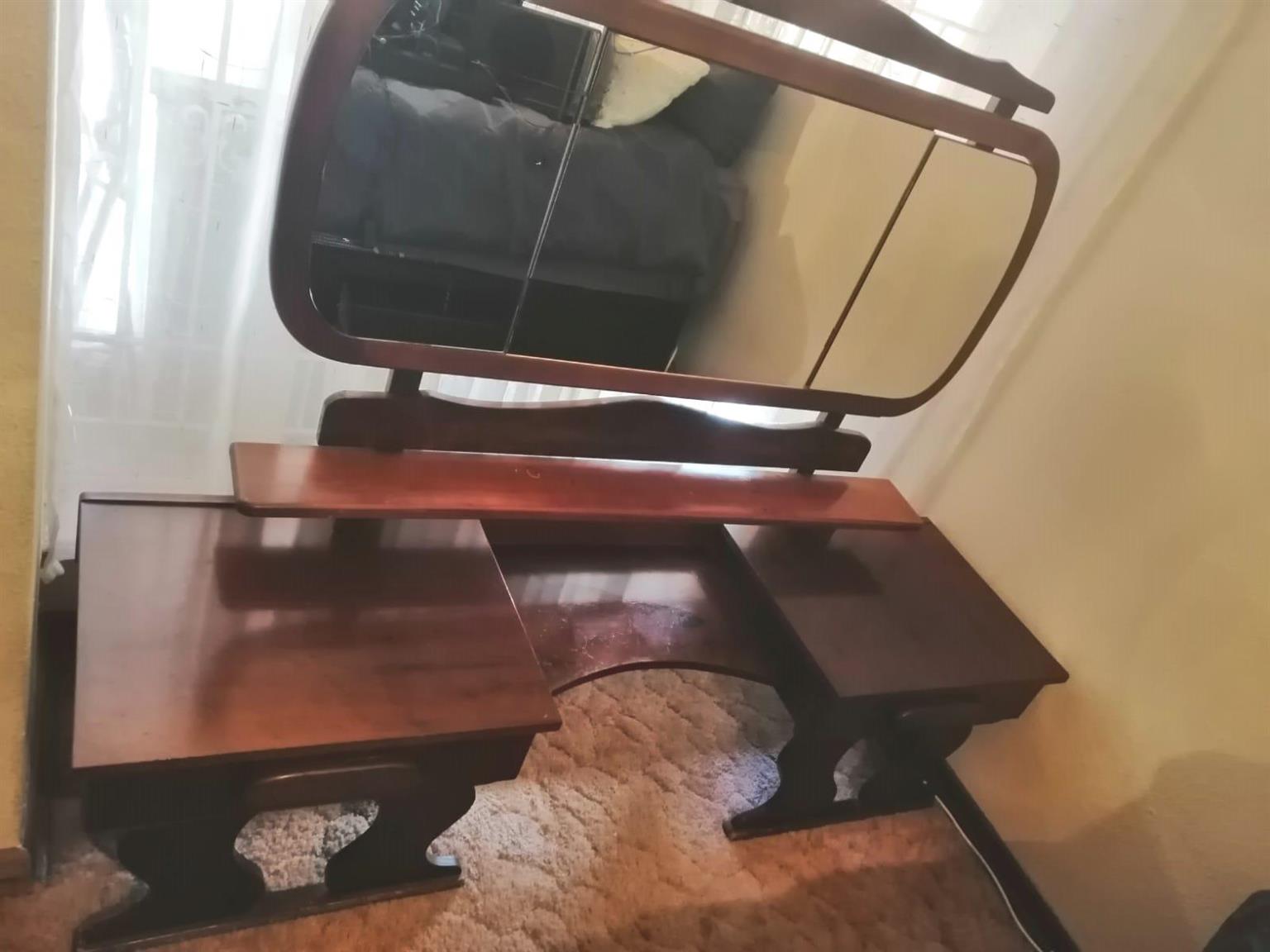 PRICE REDUCED: Semi Solid Imbuia Bedroom Dressing Table in very Good Condition for urgent sale with seat / built out of semi solid woods / REDUCED: WAS R1500 / NOW R1000 / call 0670696643view more or 0826823808view more / Area: Germiston / No delivery avail / collection only