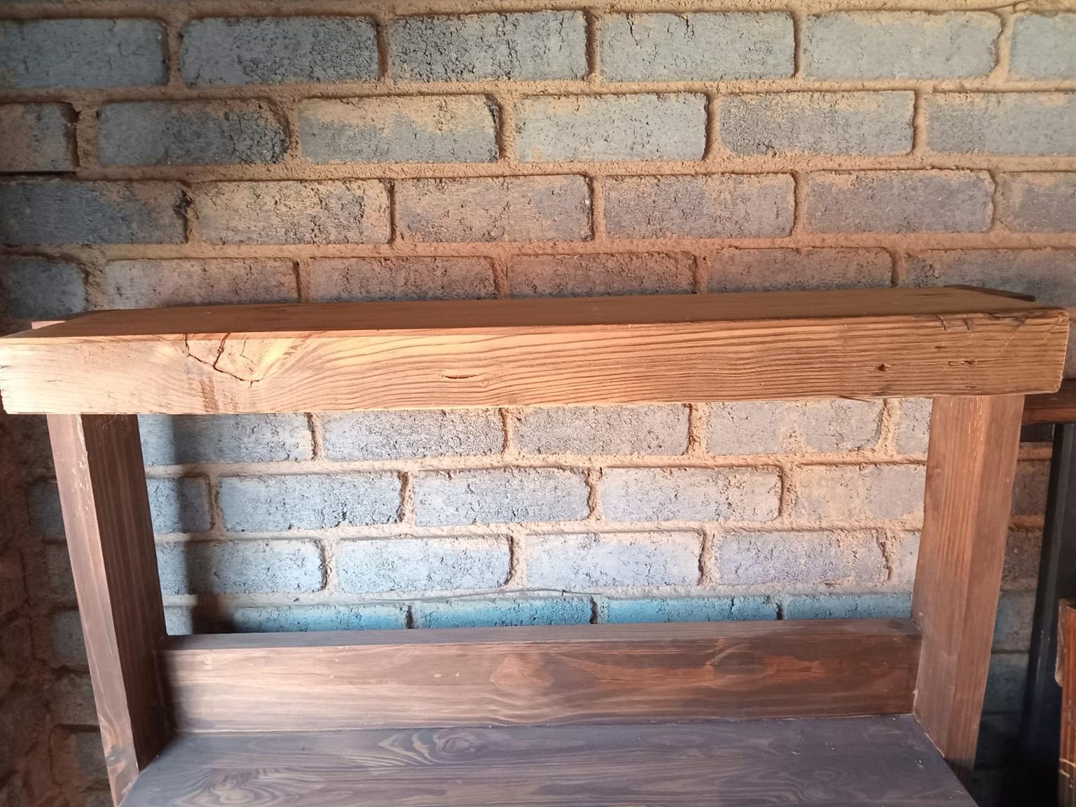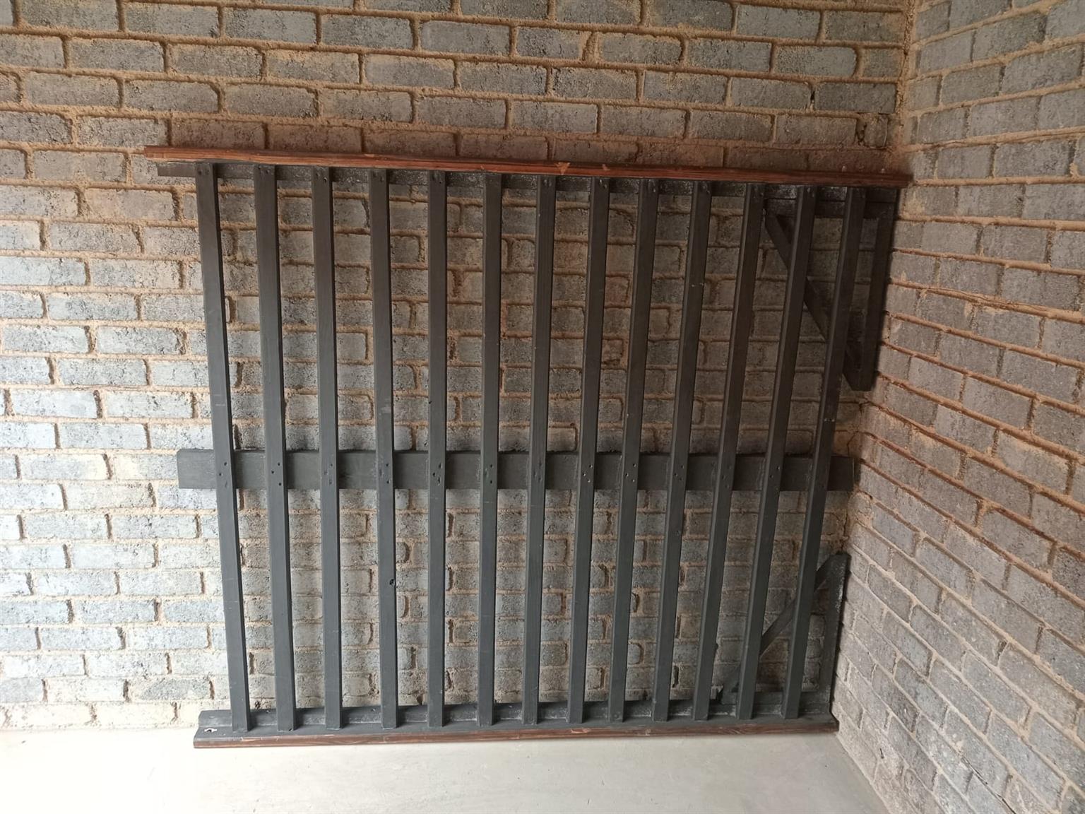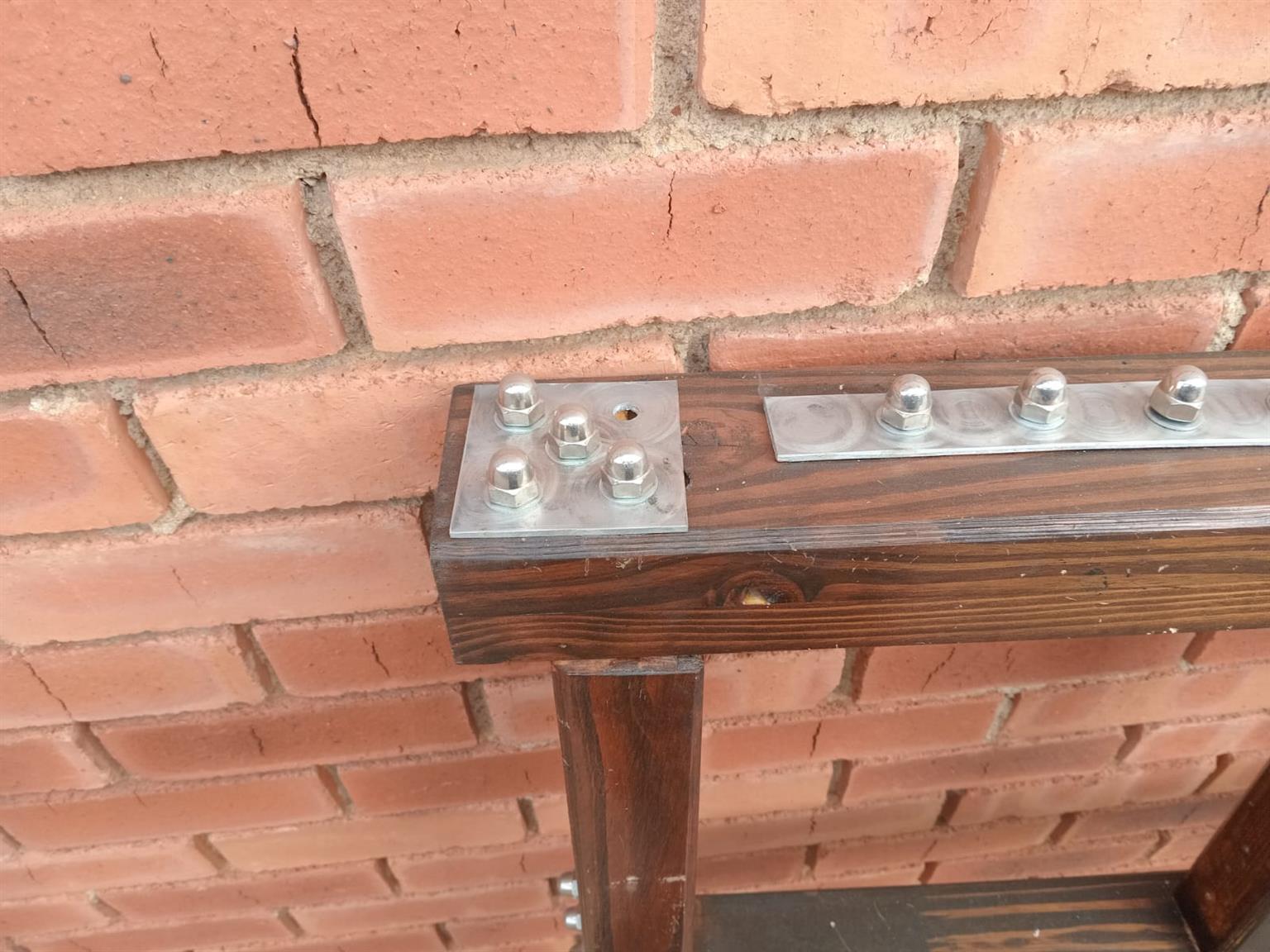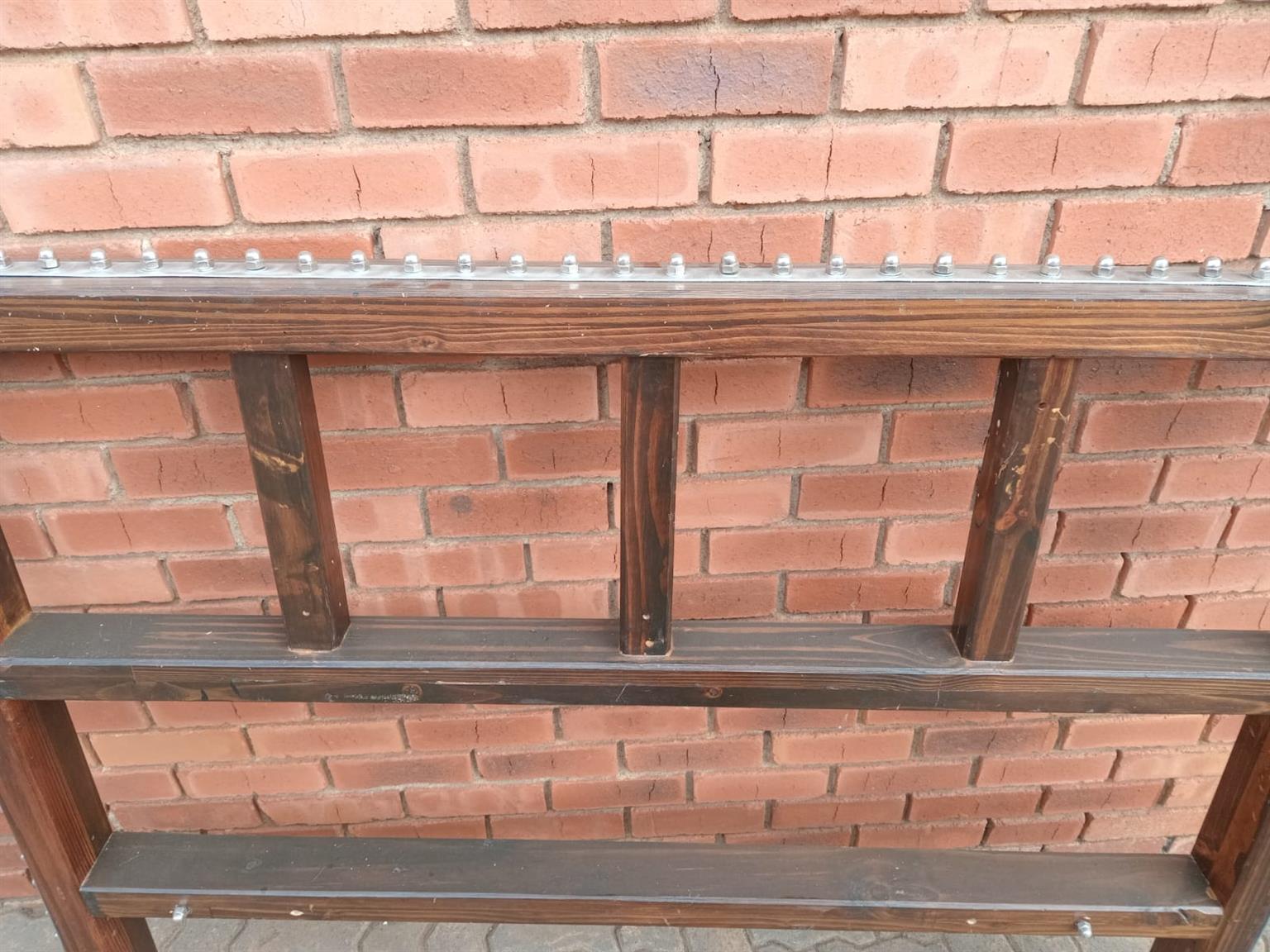 Handmade wooden bed base, side cupboards and chest of drawers with steel detailing.