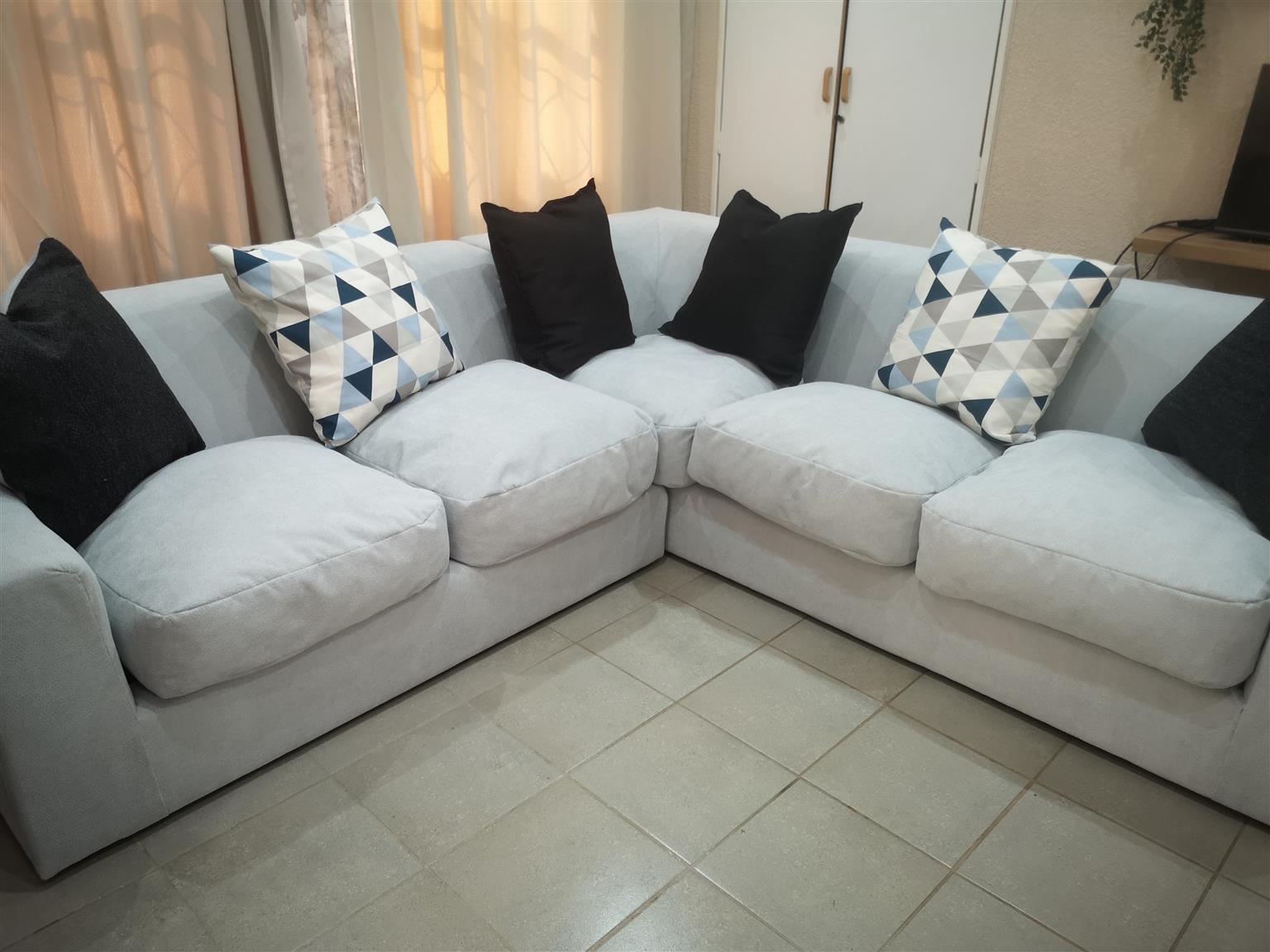 A beautiful L Shaped Coricraft Couch with Scatters for sale. Fabric is new and Scatters as well. Comfortable and big with thick foam padded backrests. Practically New and hasn't been sat on. You can check our Facebook page HammonNel for more couches and info too. We are based in Brackenhurst, Alberton.