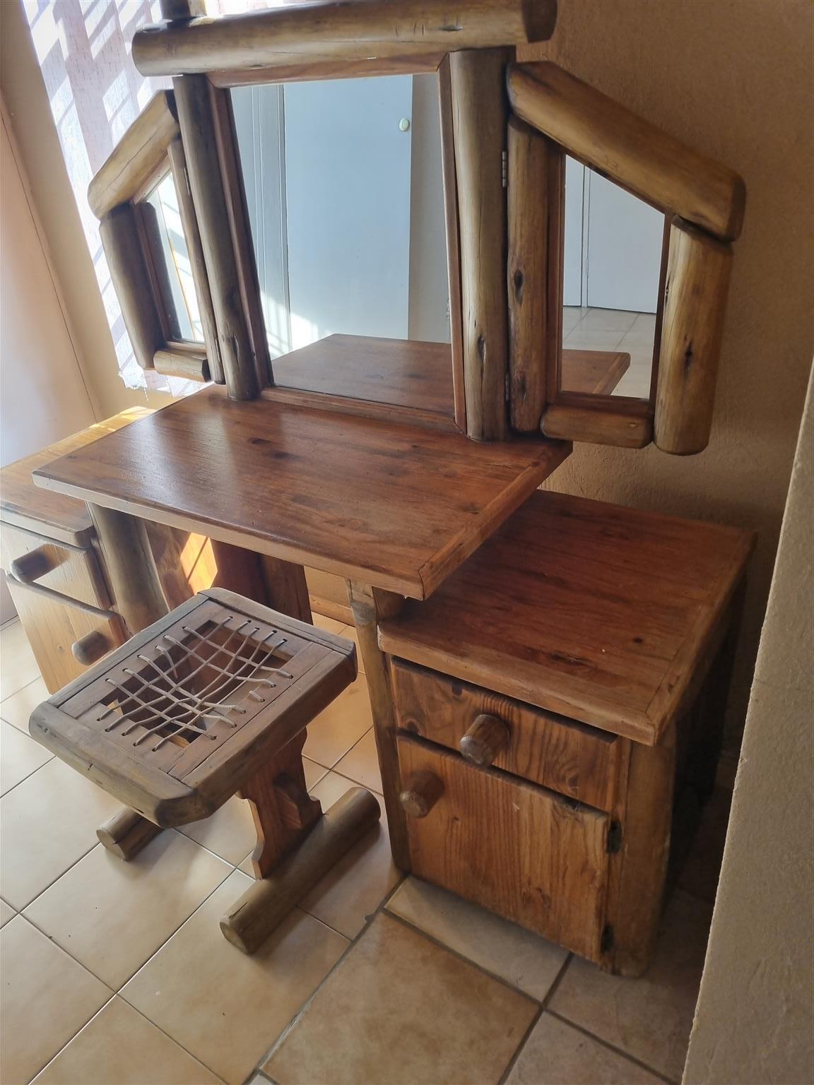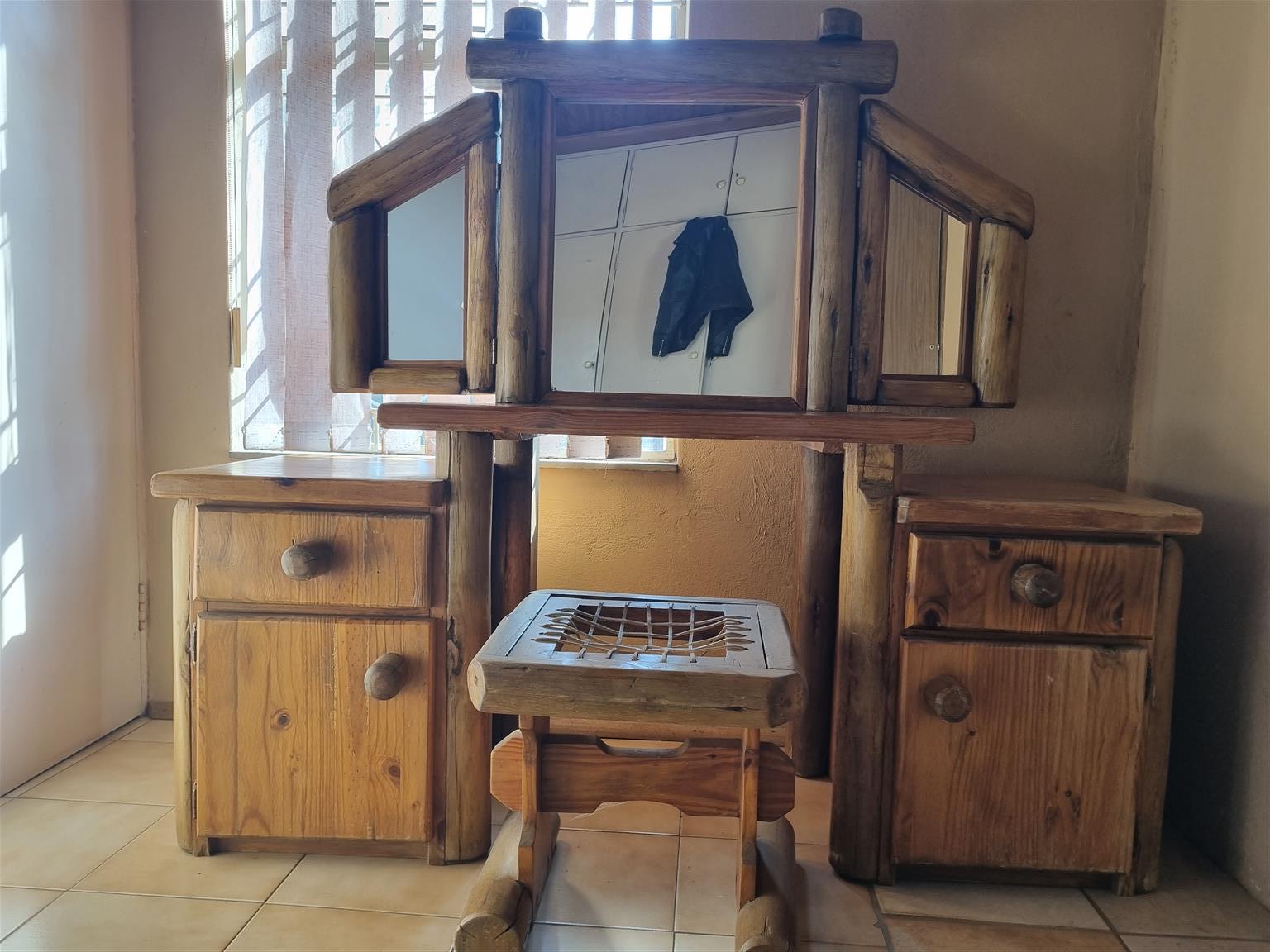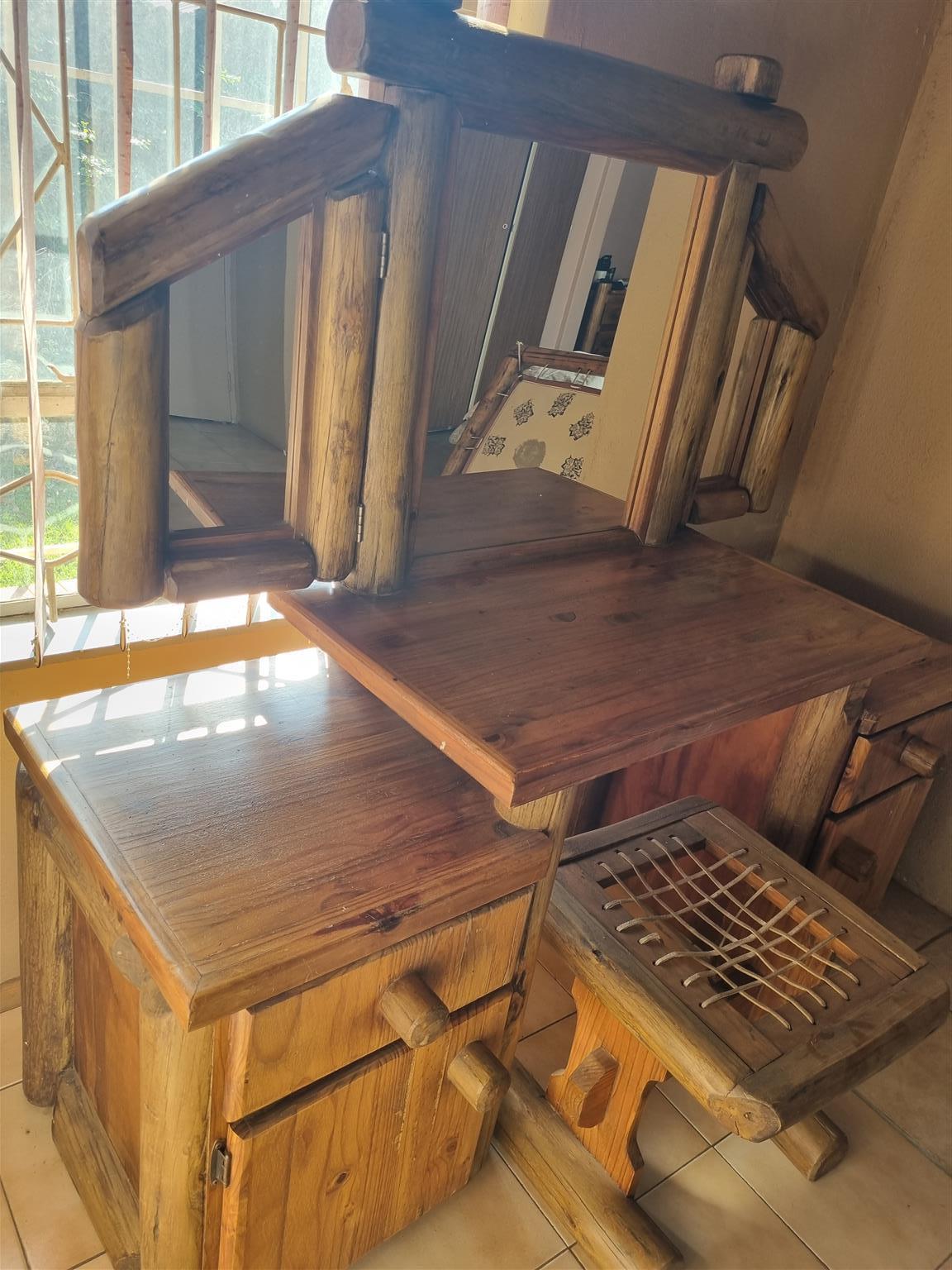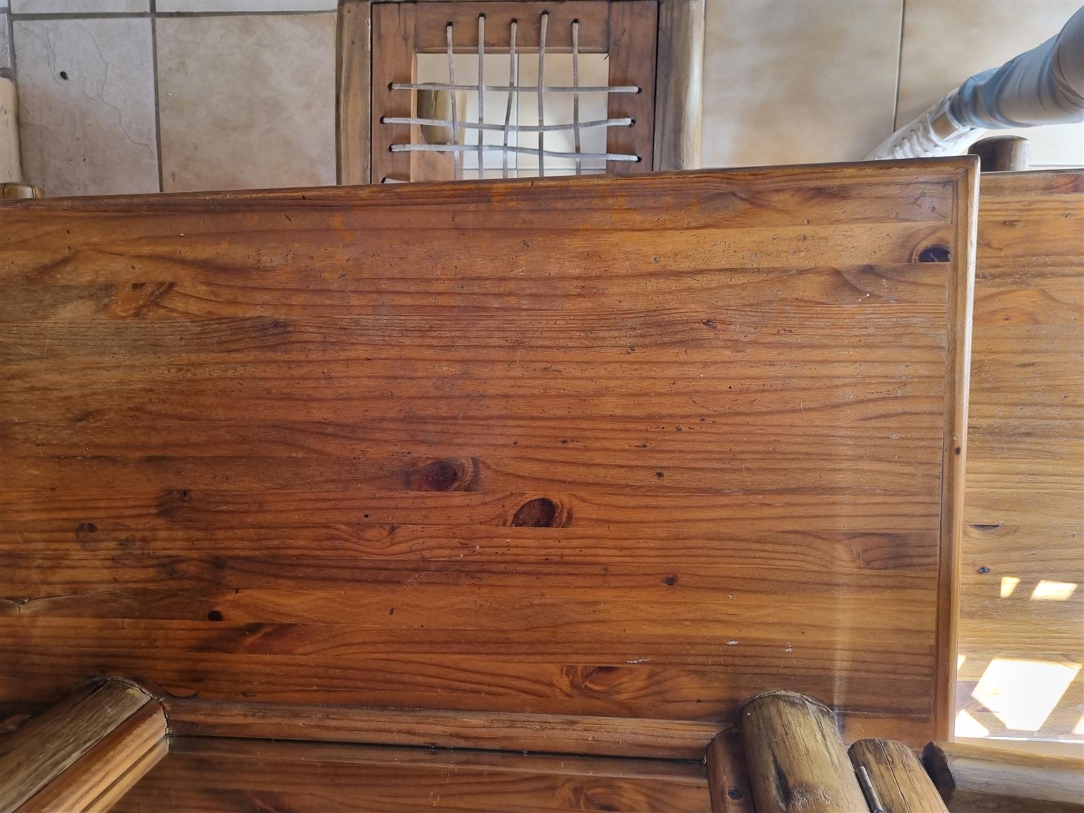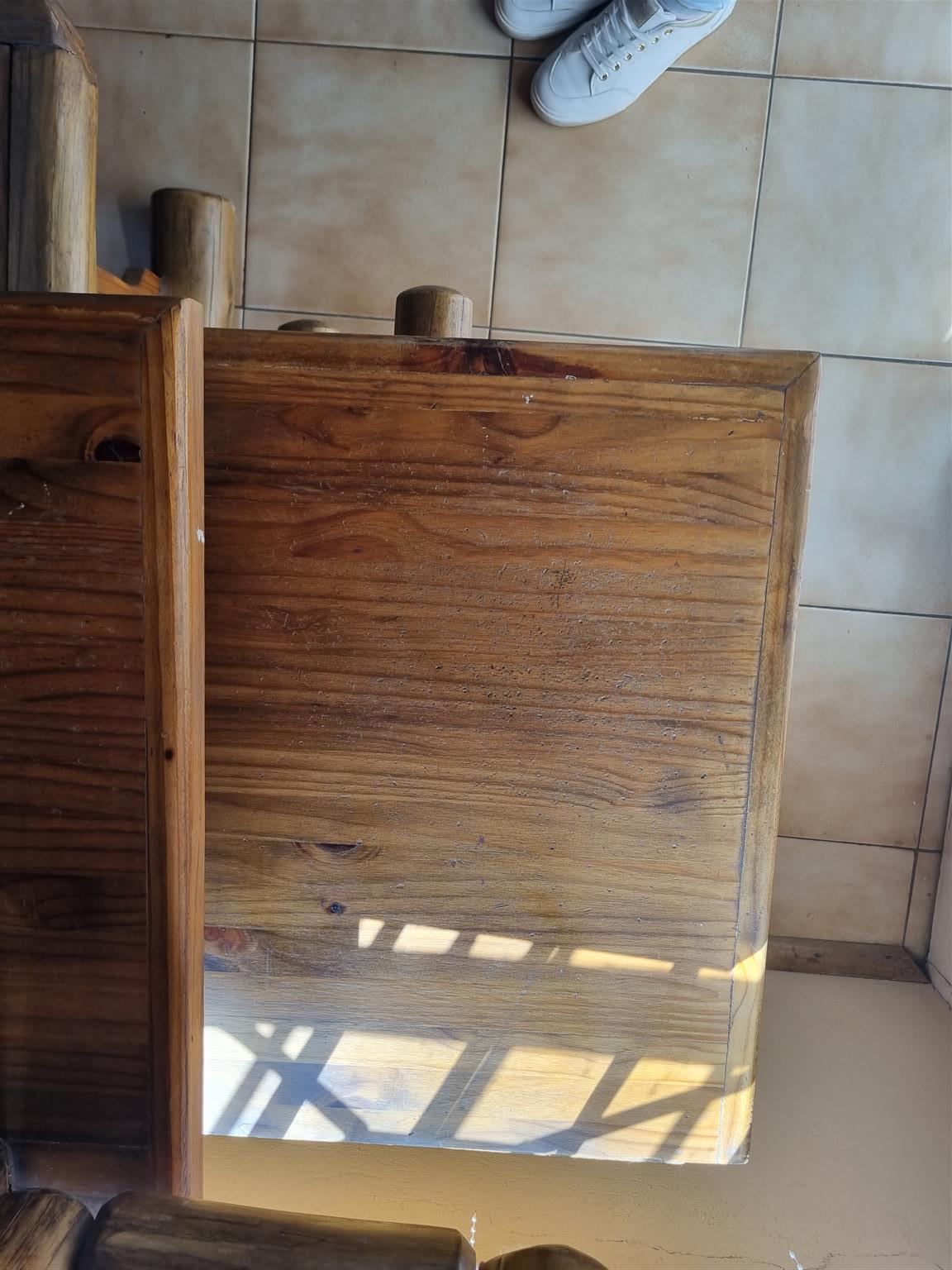 All solid wood and in good condition. Picture is slightly faded but can be replaced.