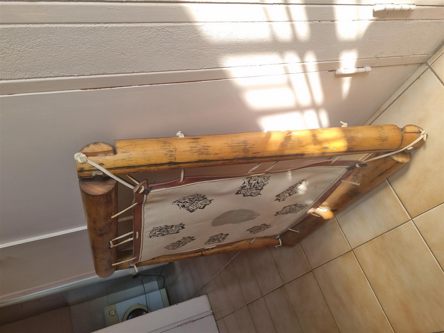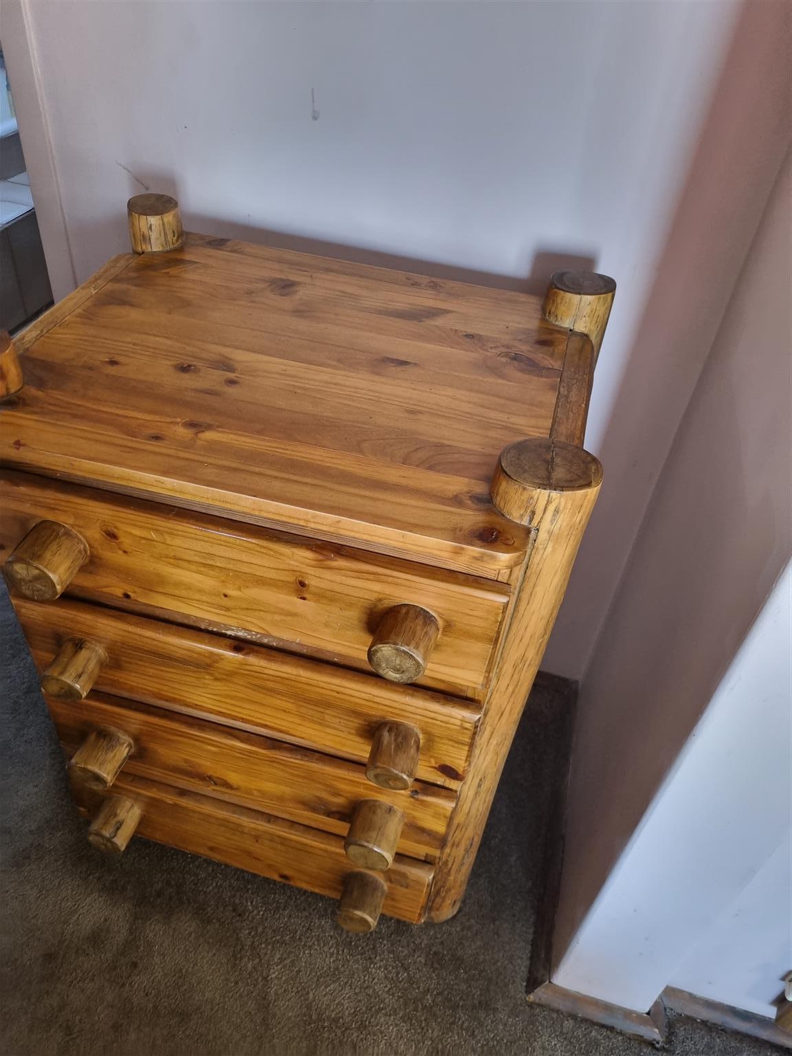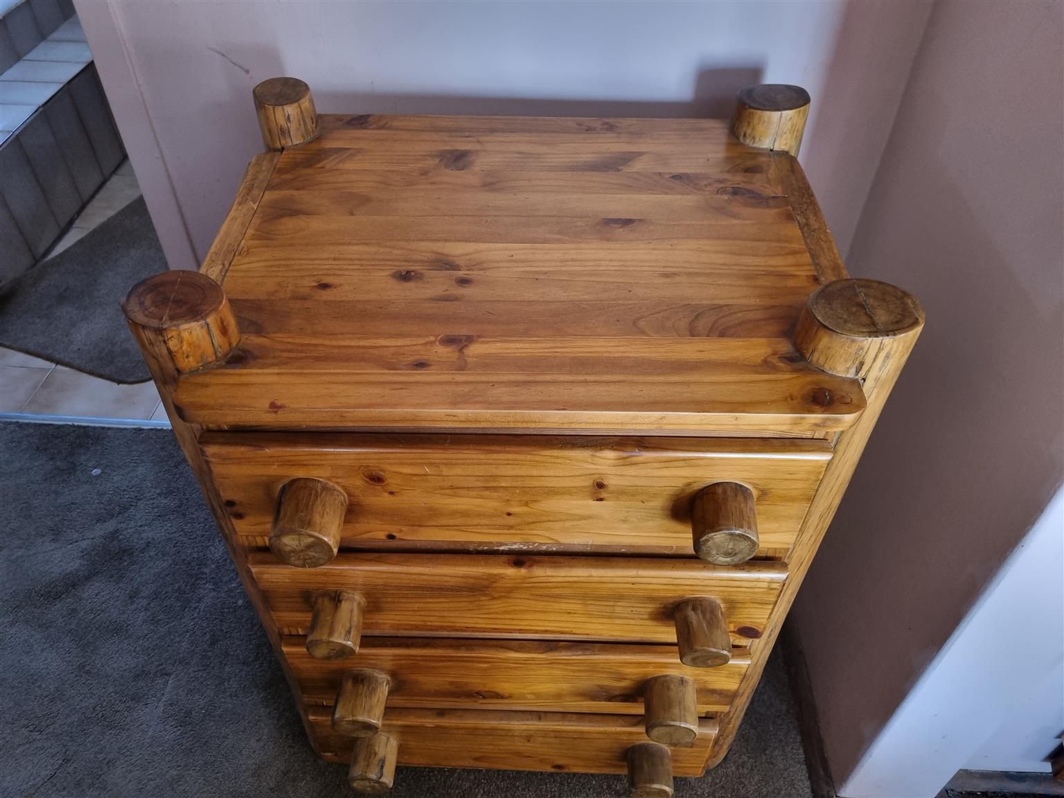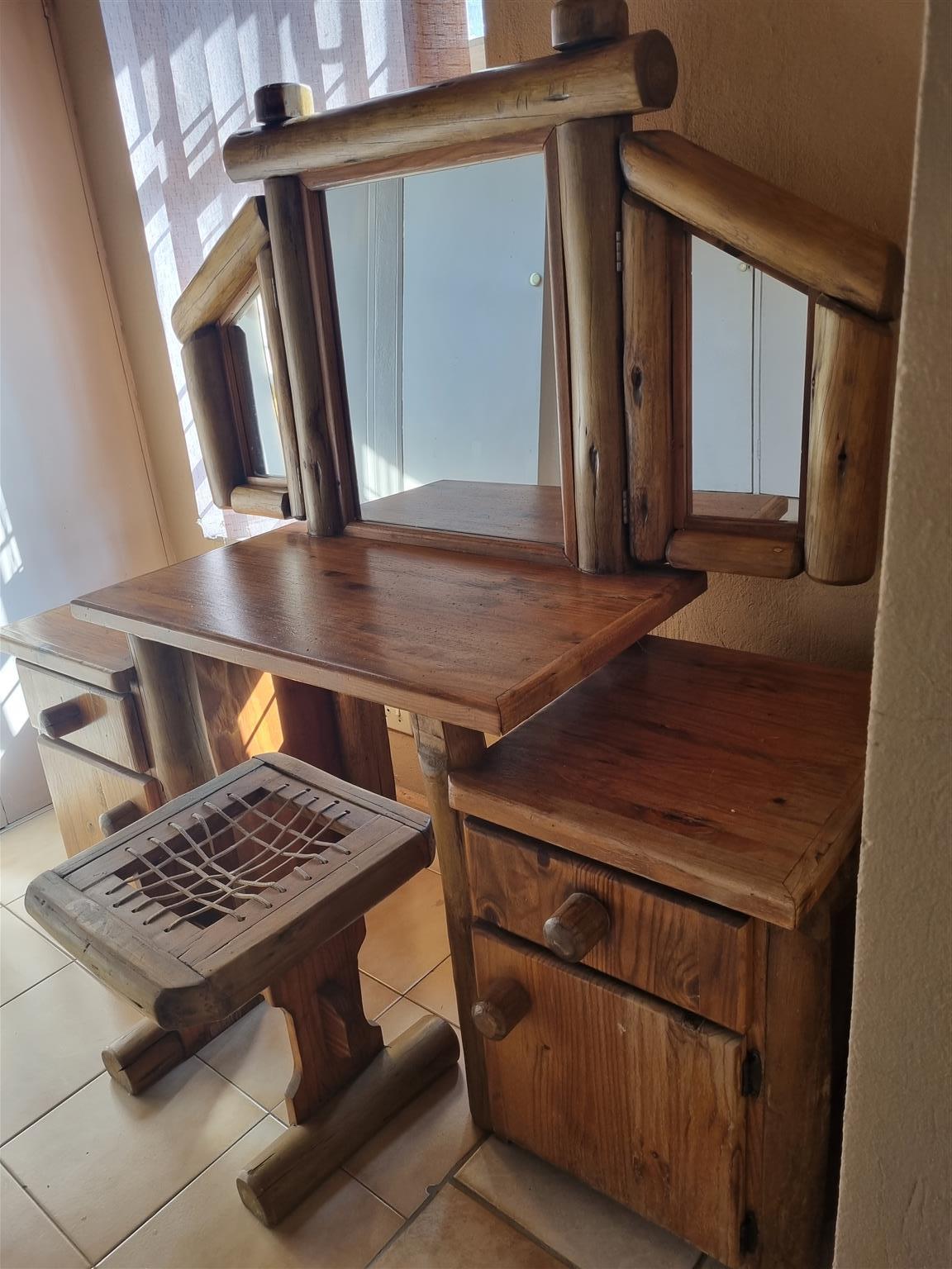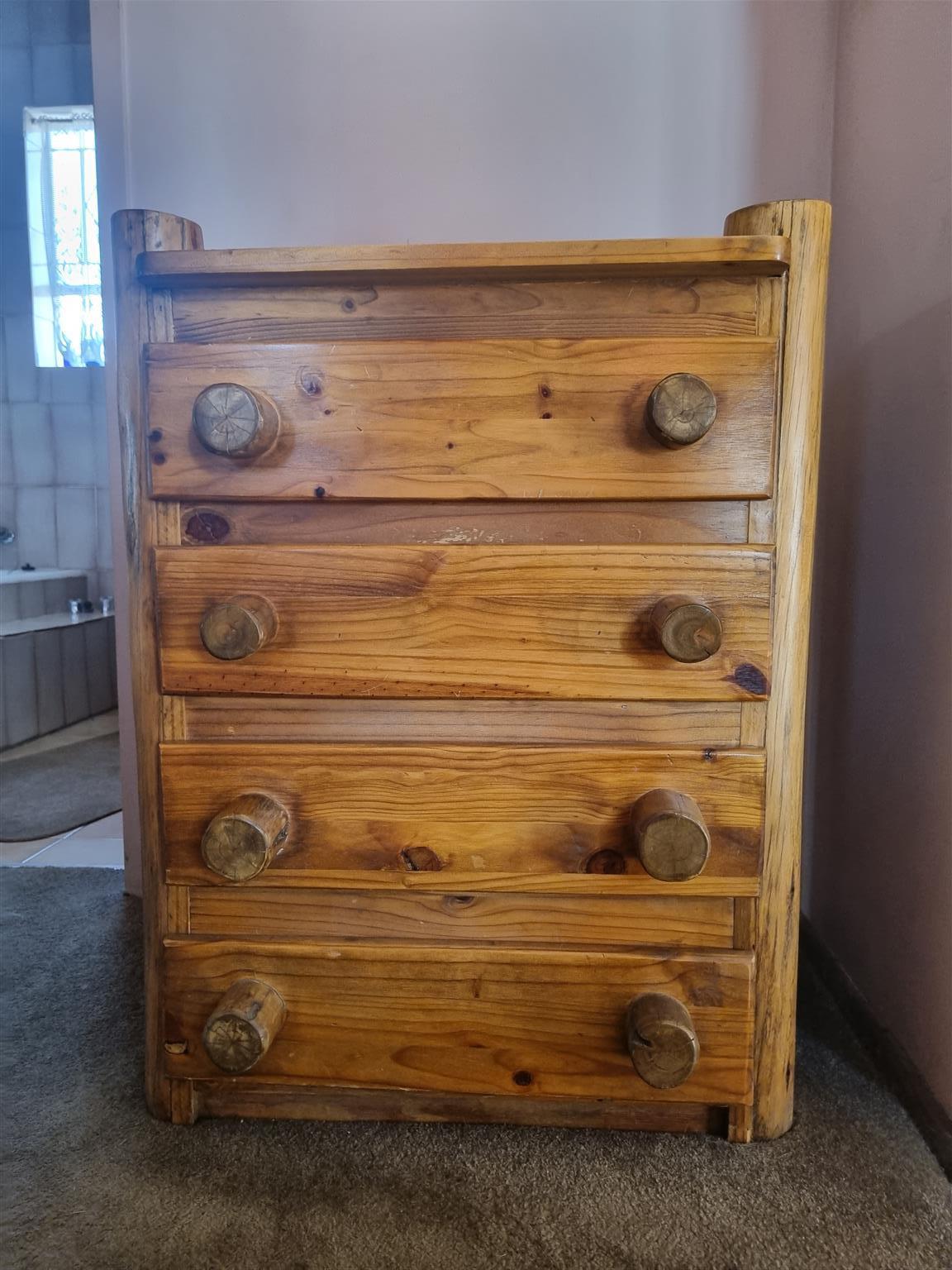 All solid wood and in good condition. Picture is slightly faded but can be replaced.