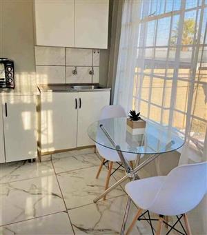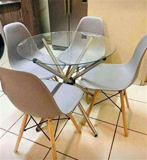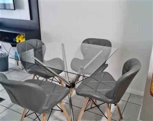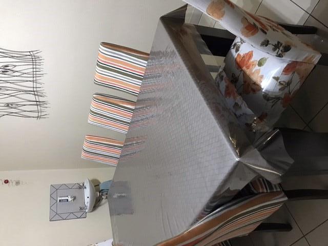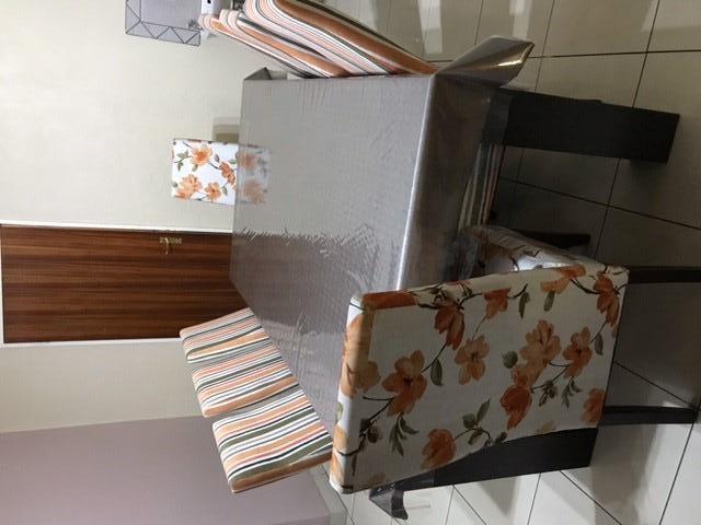 8 lovely clean material chairs (have been scotch guarded) and seats covered in plastic for added protection.