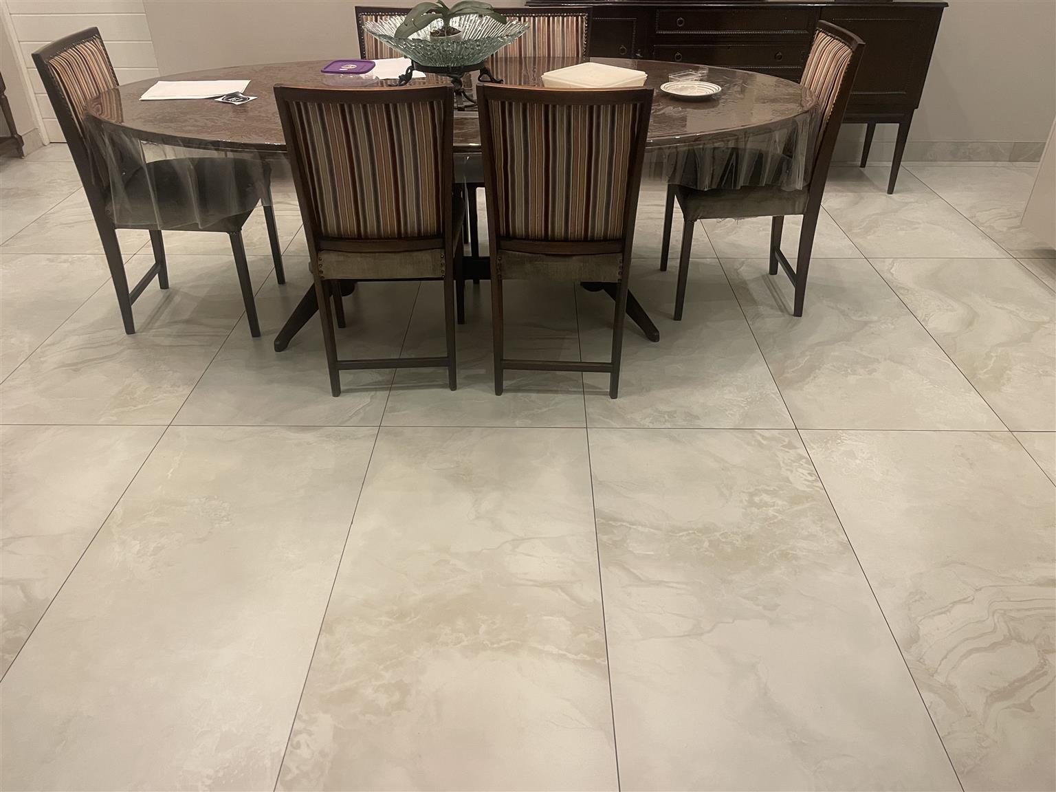 6 seater (chairs included) extendable dining room table can seat comfortably 10 people