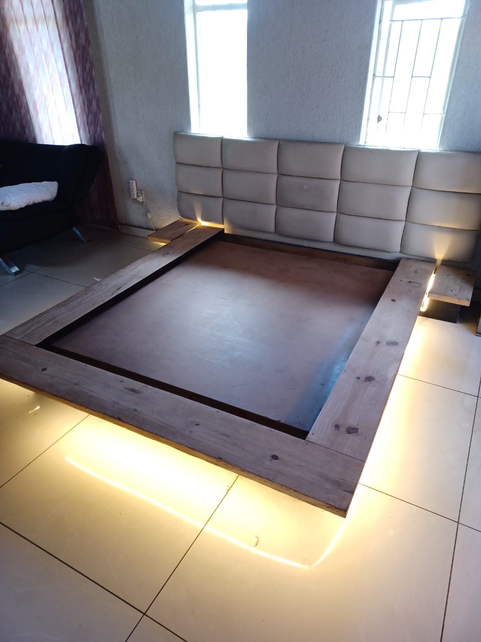 Floating Double Bed with mattress. Very heavy- solid wood.