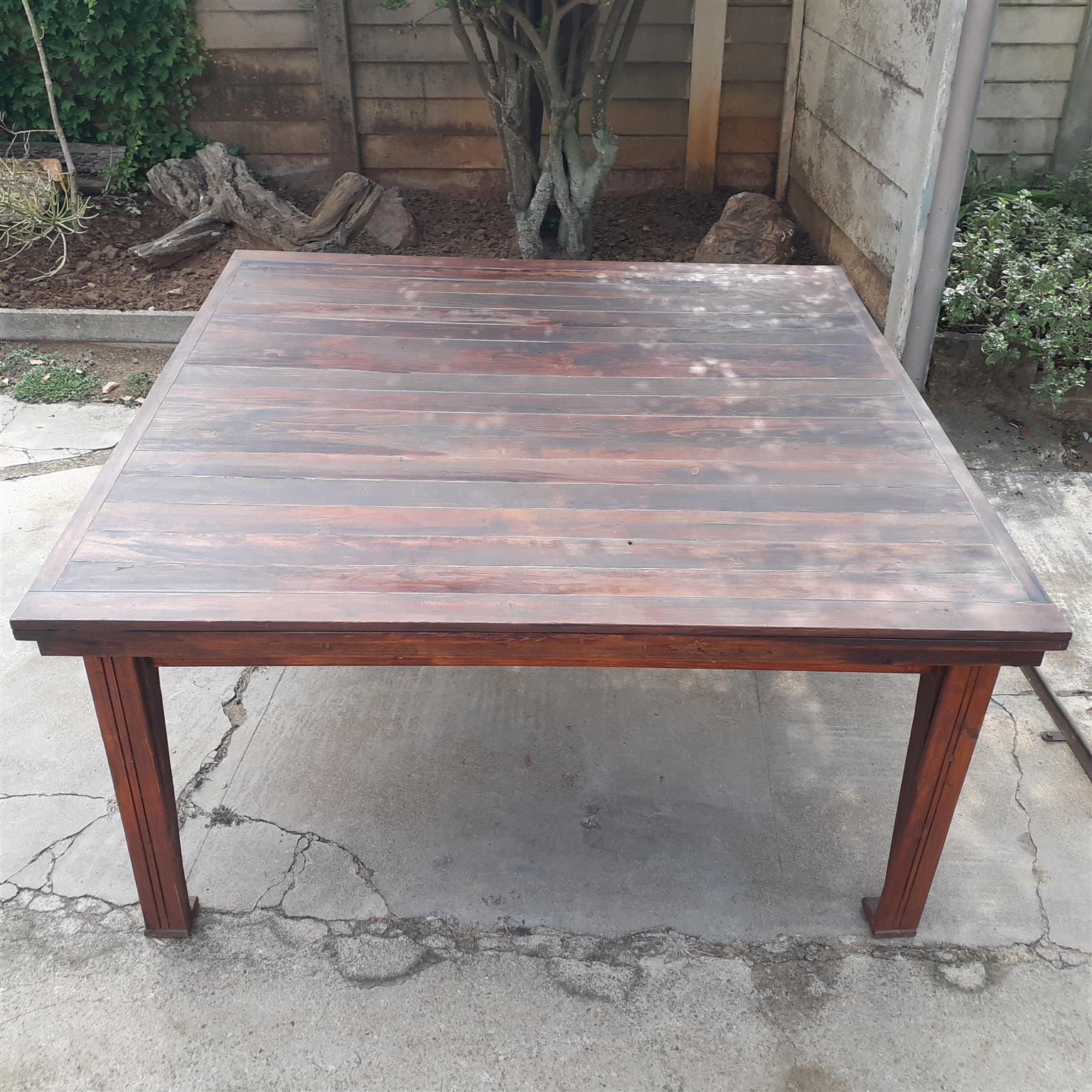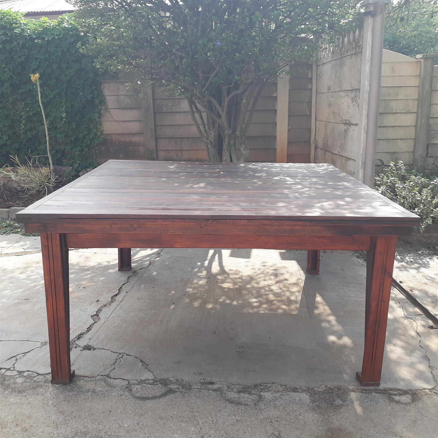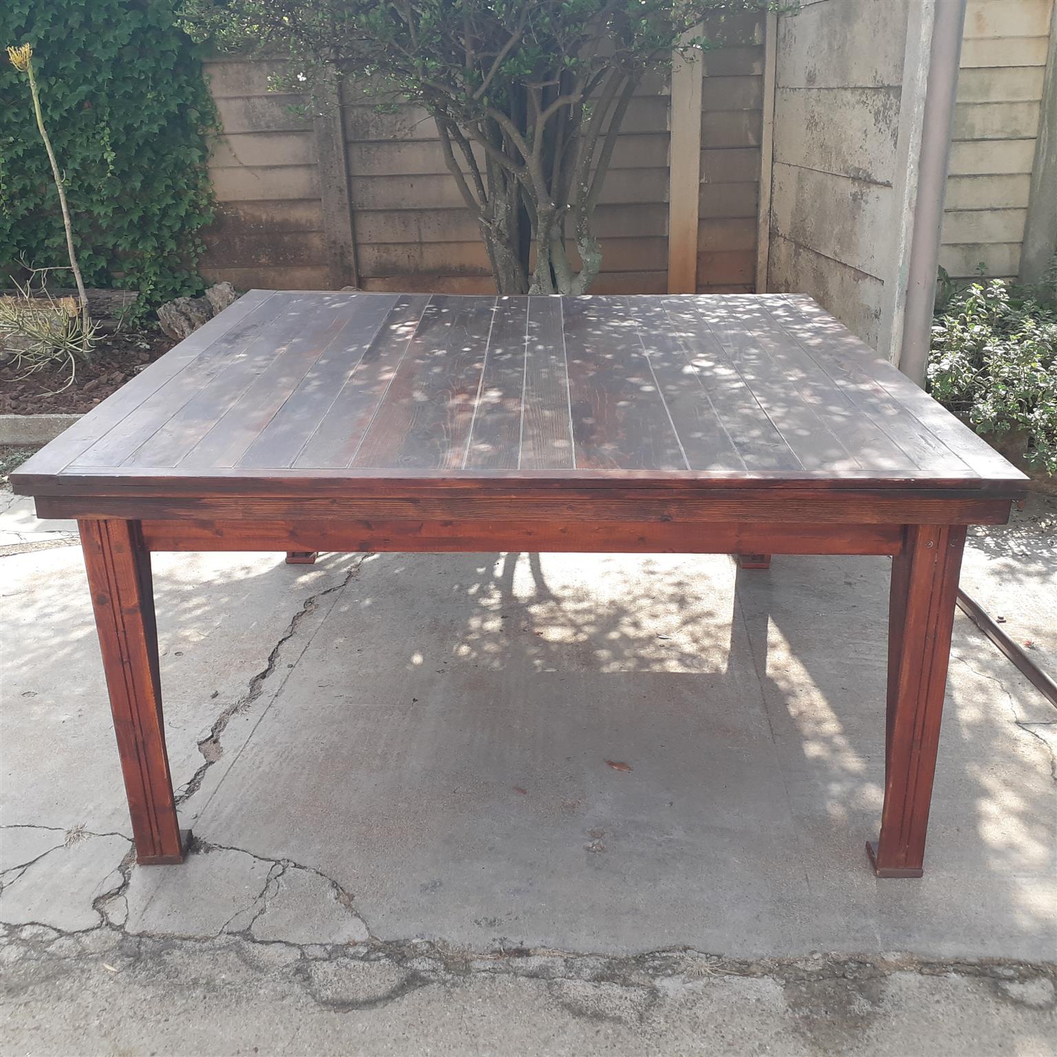 Stained Wooden table for sale. Size: 1520 x 1520 x 780mm - Ideal for patio / stoep, but ban be used for dining room too. Price: R4,800 Benoni, Ekurhuleni/ East Rand, Gauteng. Contact Jacques- 083 556 0032view more.