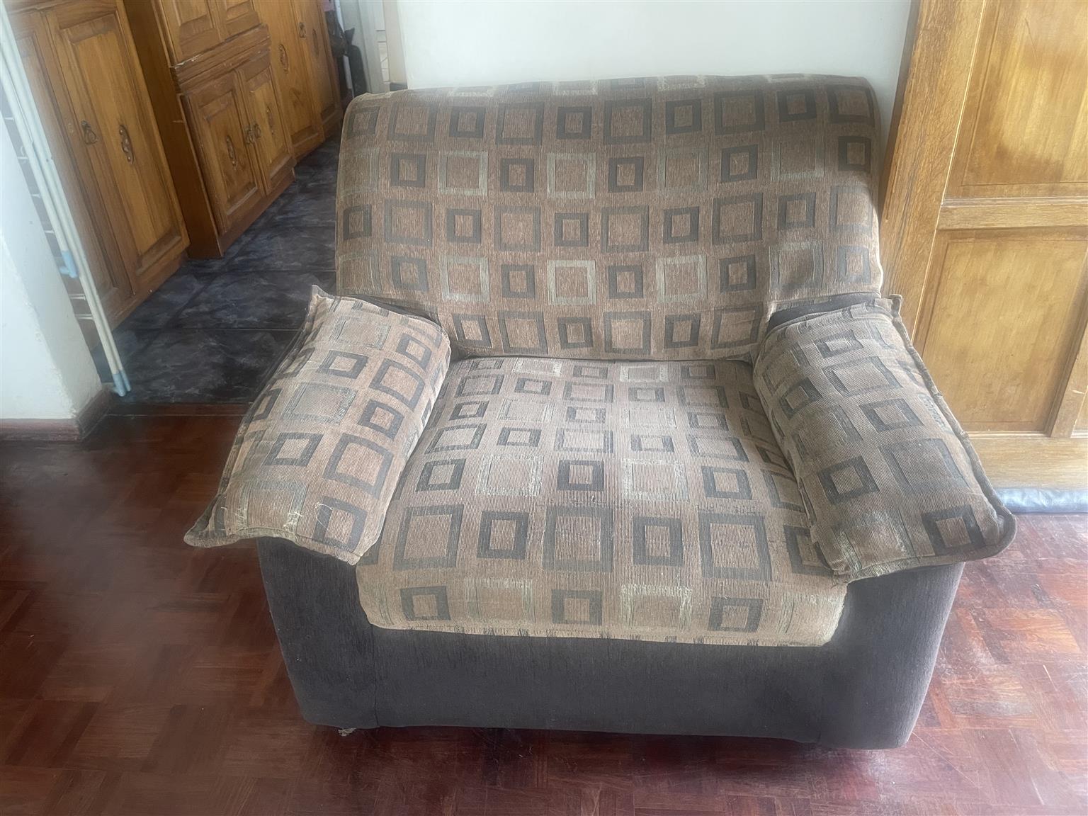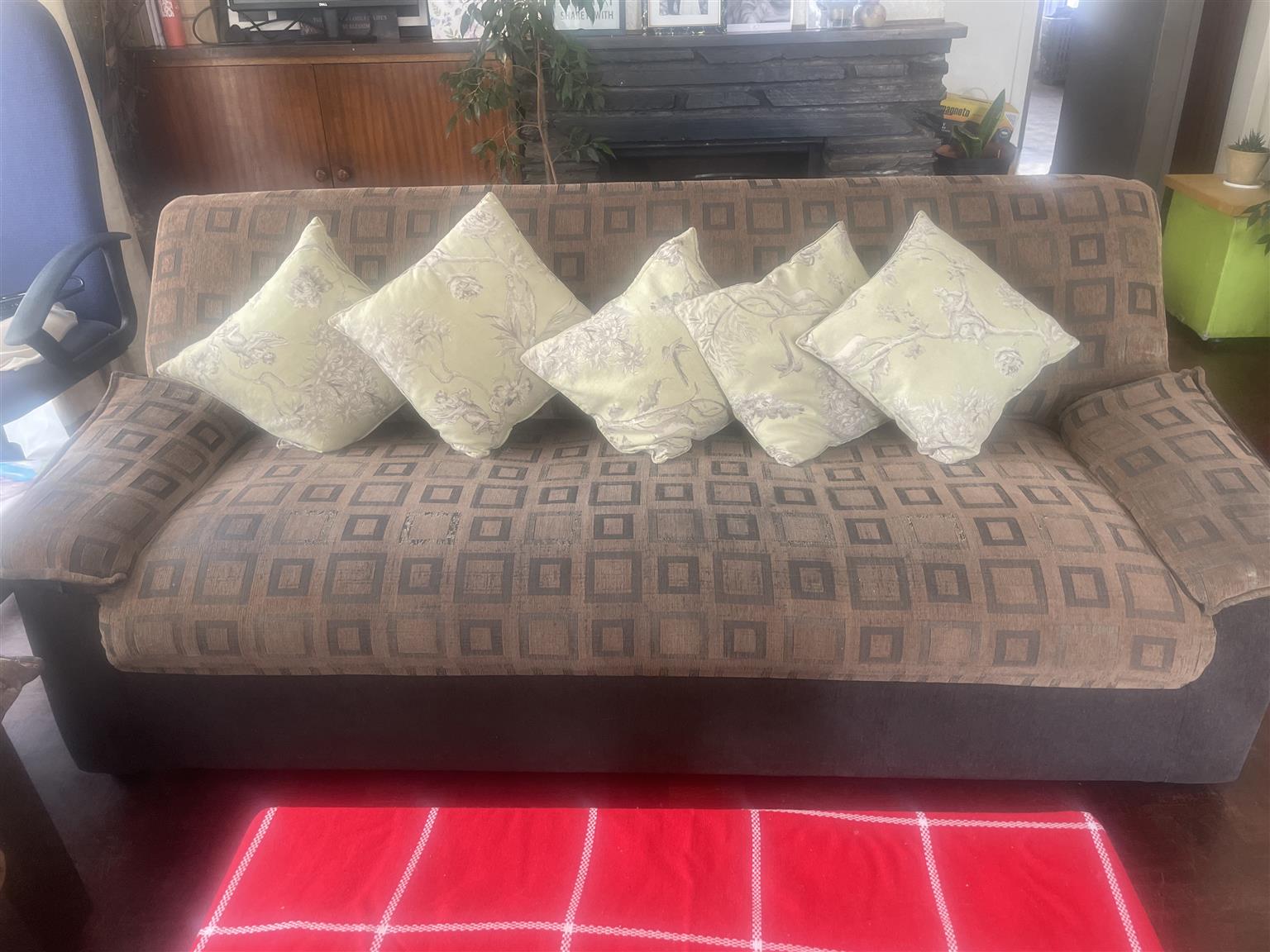 Used, strong, 3 Piece Lounge Suite. The fabric is slightly worn.