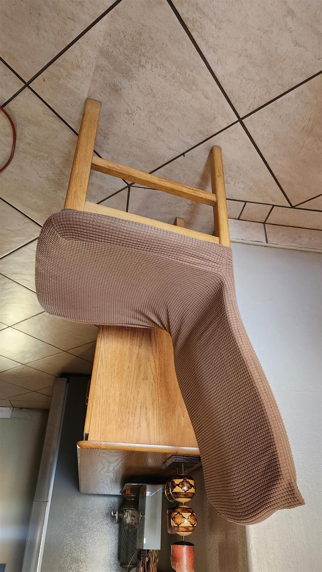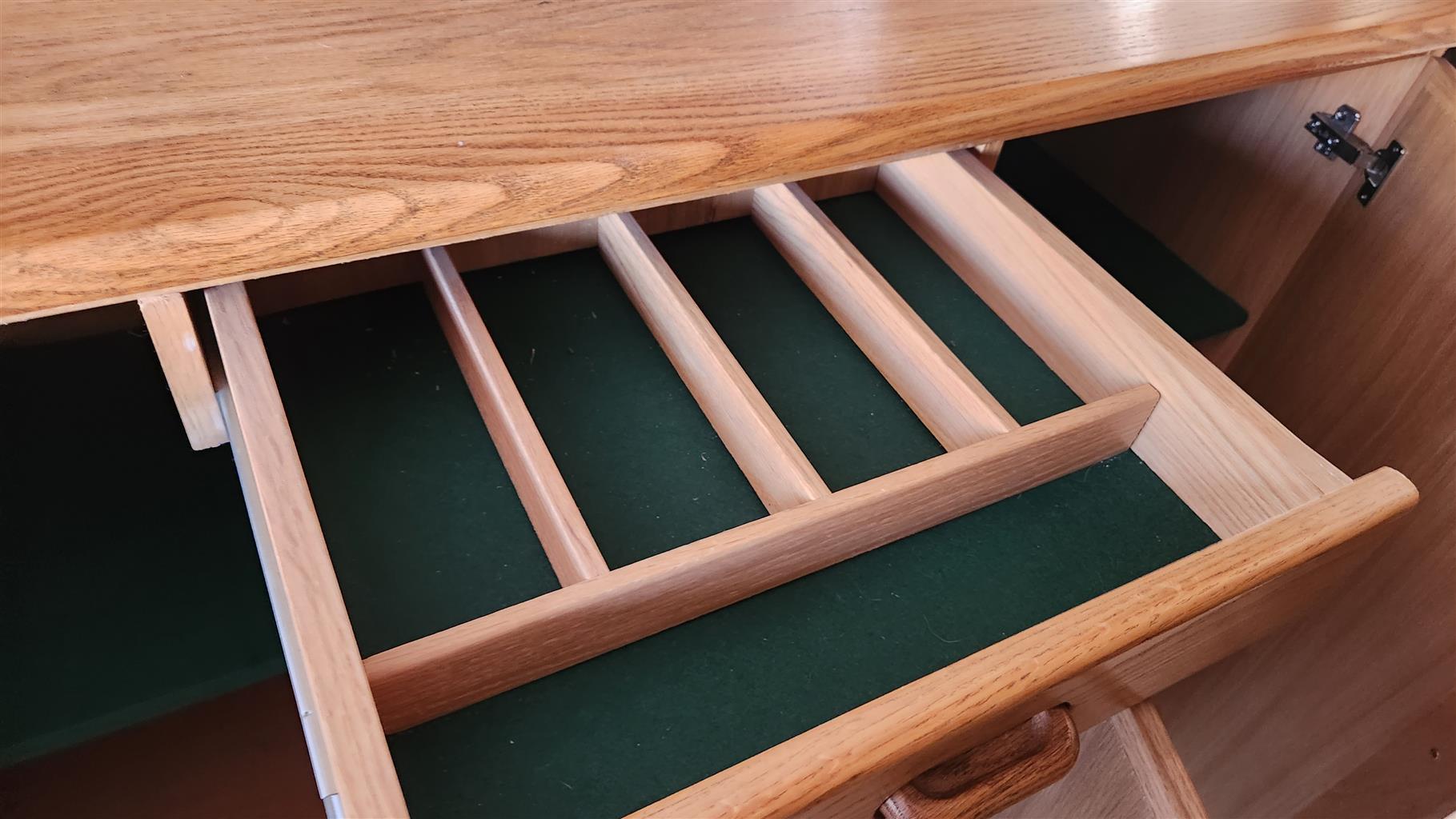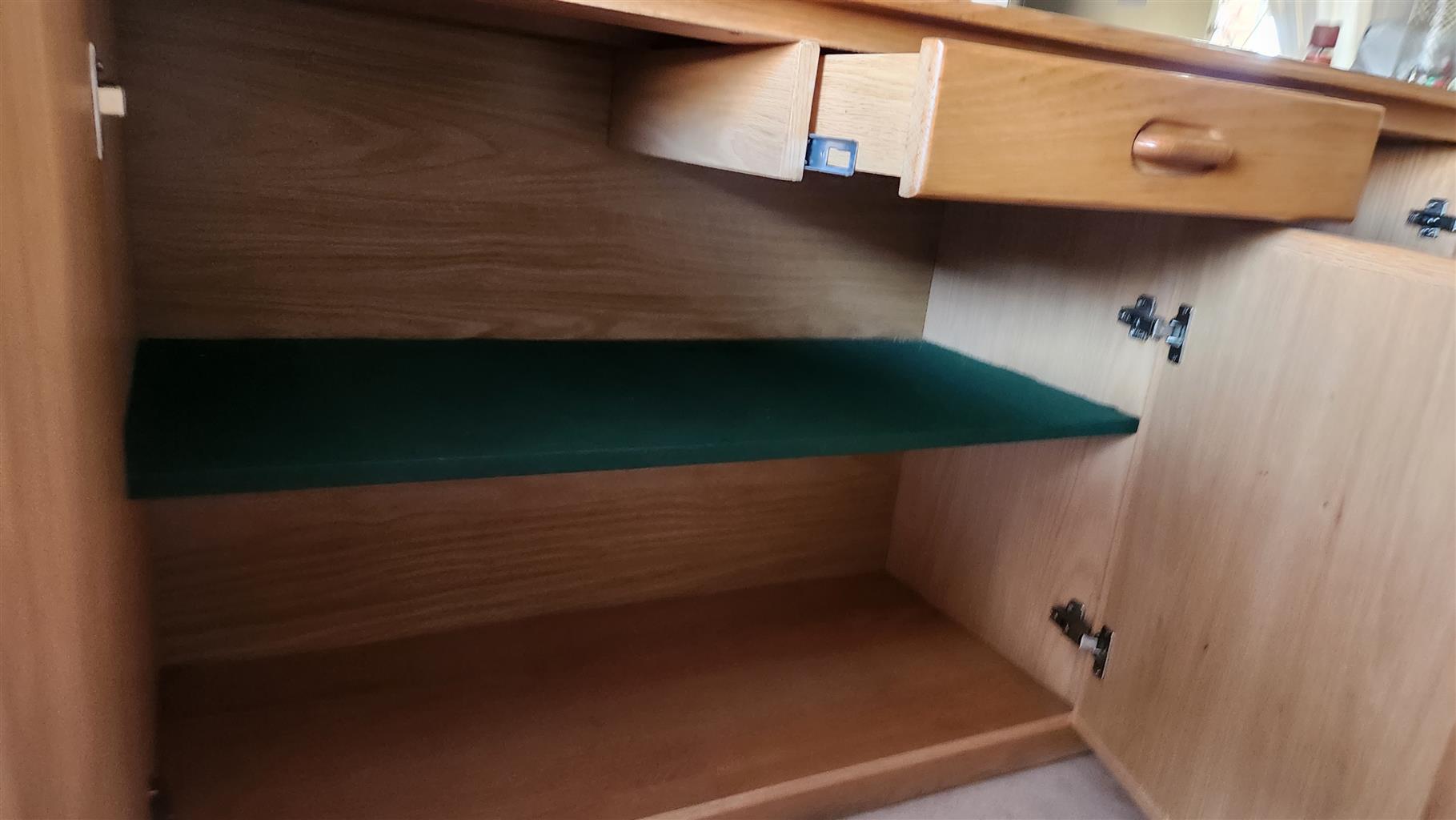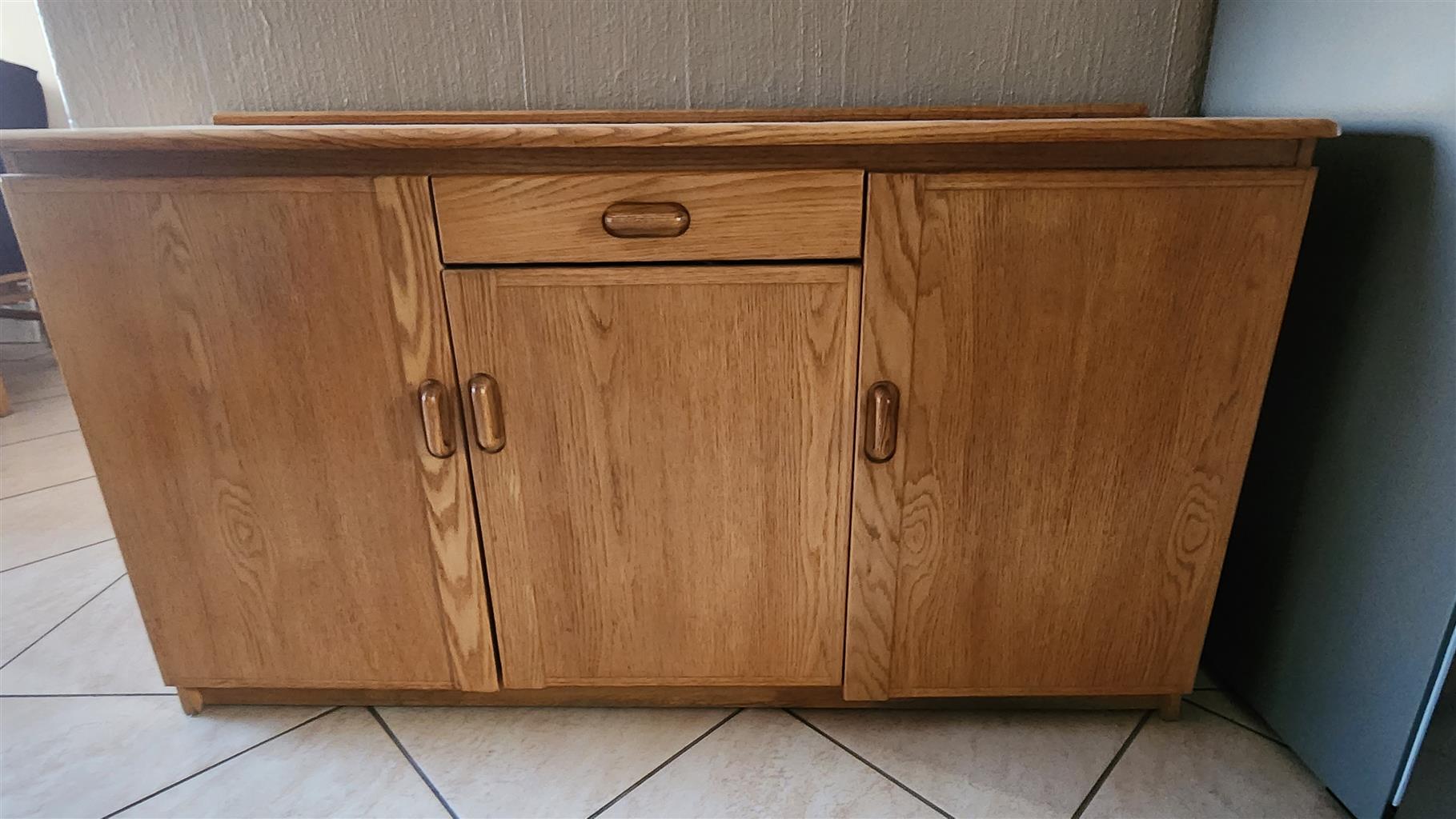 8 seater dining room table with chairs and covers, matching side board and mirror. Excellent condition solid pine.