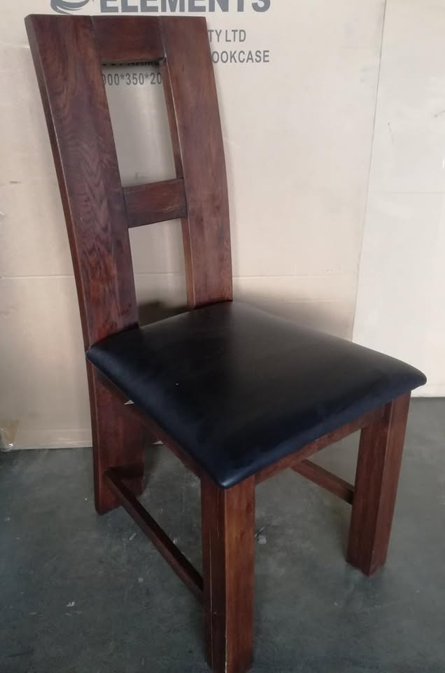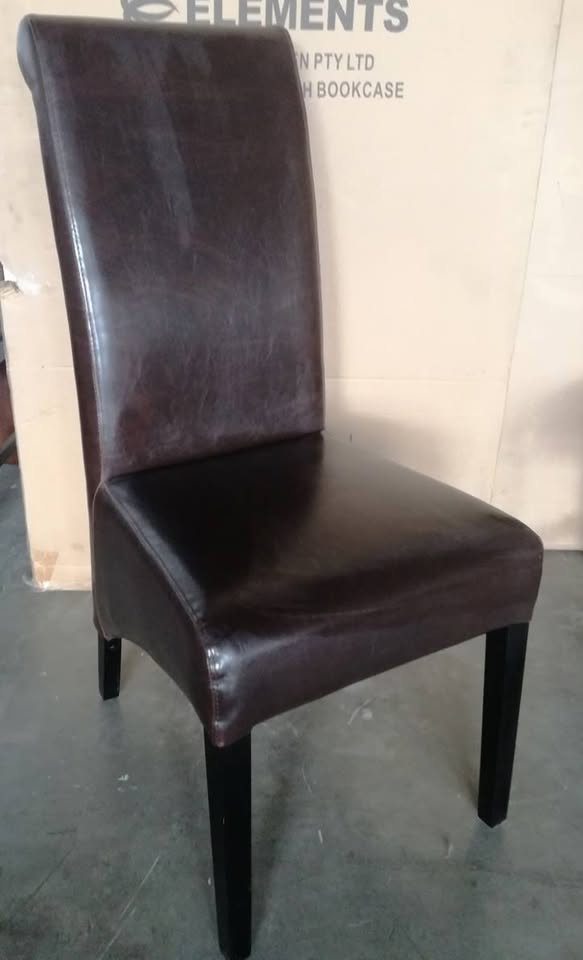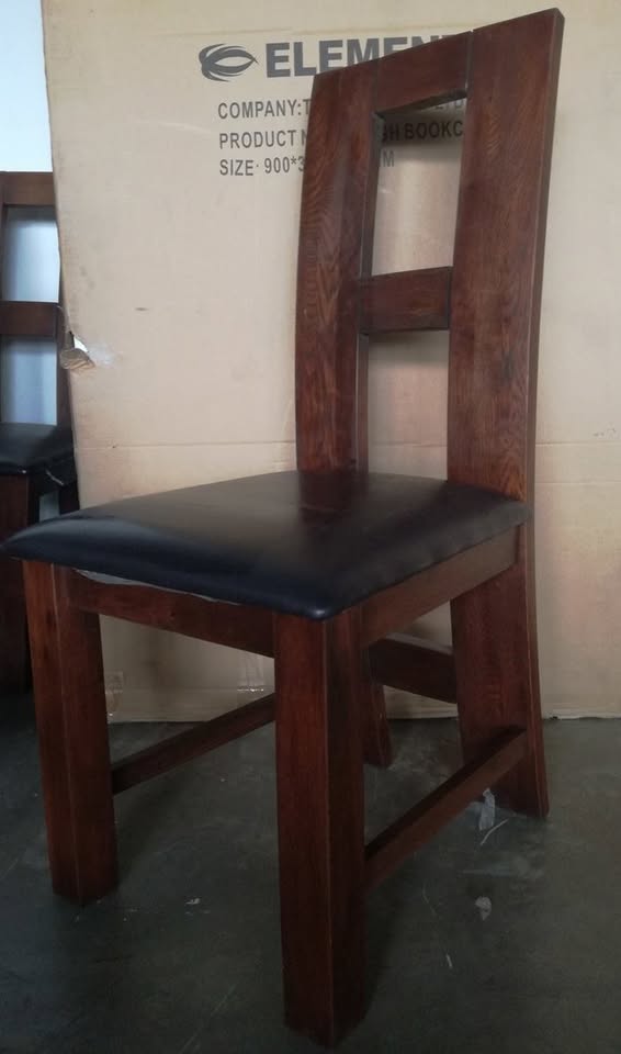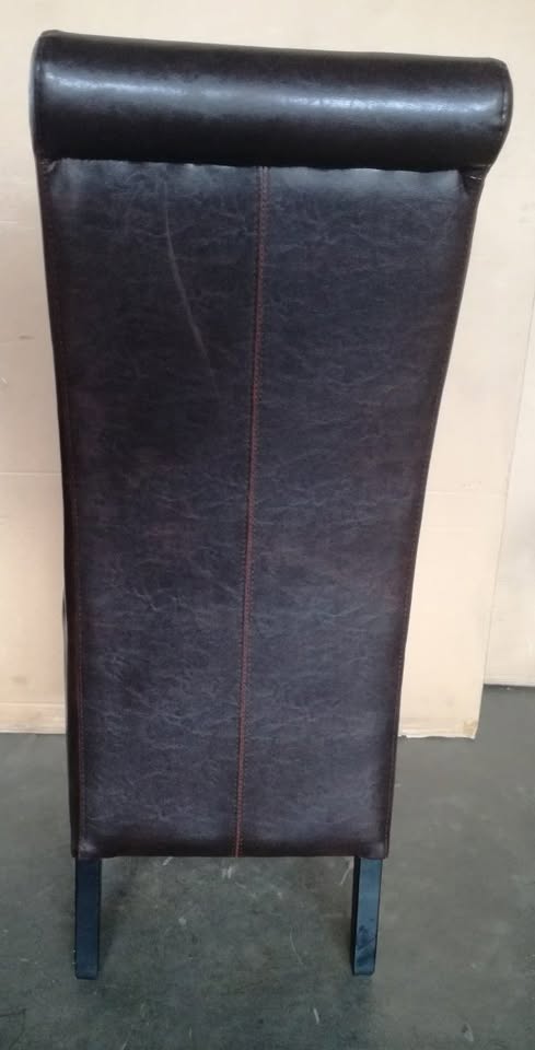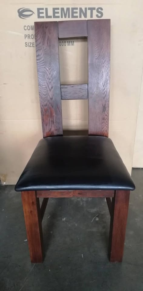 Imported high back dining room chairs at cost: Oak chair: R820 Full leather: R1050 Material: R525 Denim: R525 PU dark brown: R480 PU black: R480 Viewing & purchase direct from warehouse in Boksburg. All new. Call Sanette