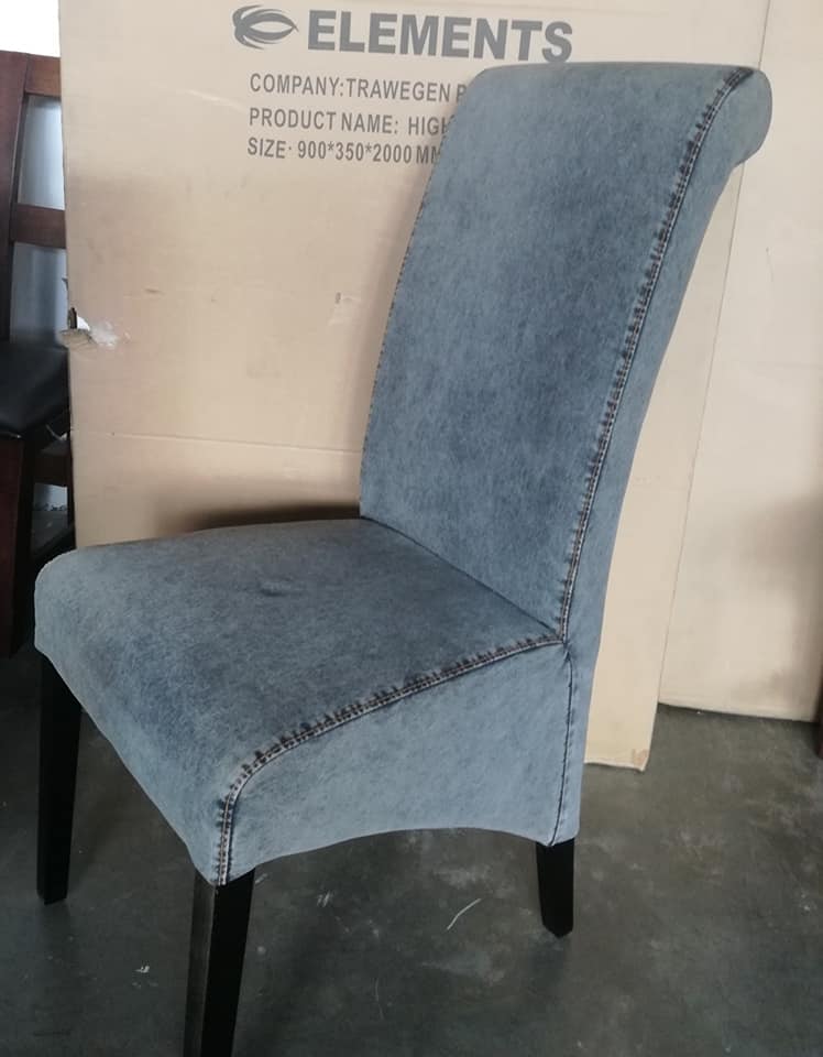 New dining chairs. PU R650ea Full grain leather, black or brown R1250ea Denim fabric R800 Oak (stained bown) H chair R900ea. Collect in Boksburg. Free delivery in Boksburg & benoni Many in stock. 0118942111view more 0744209591view more
