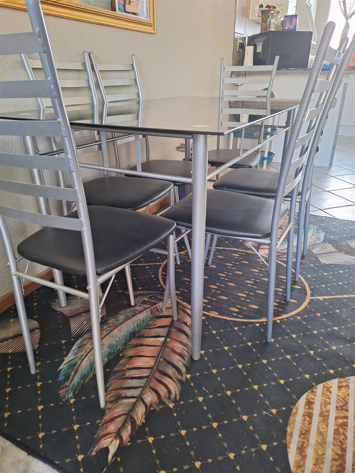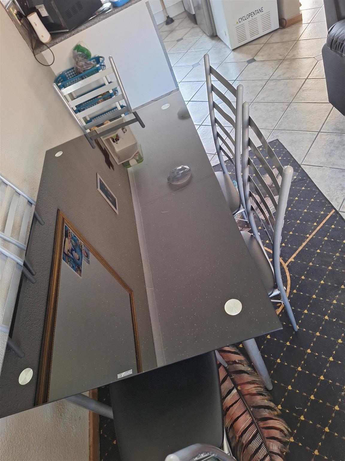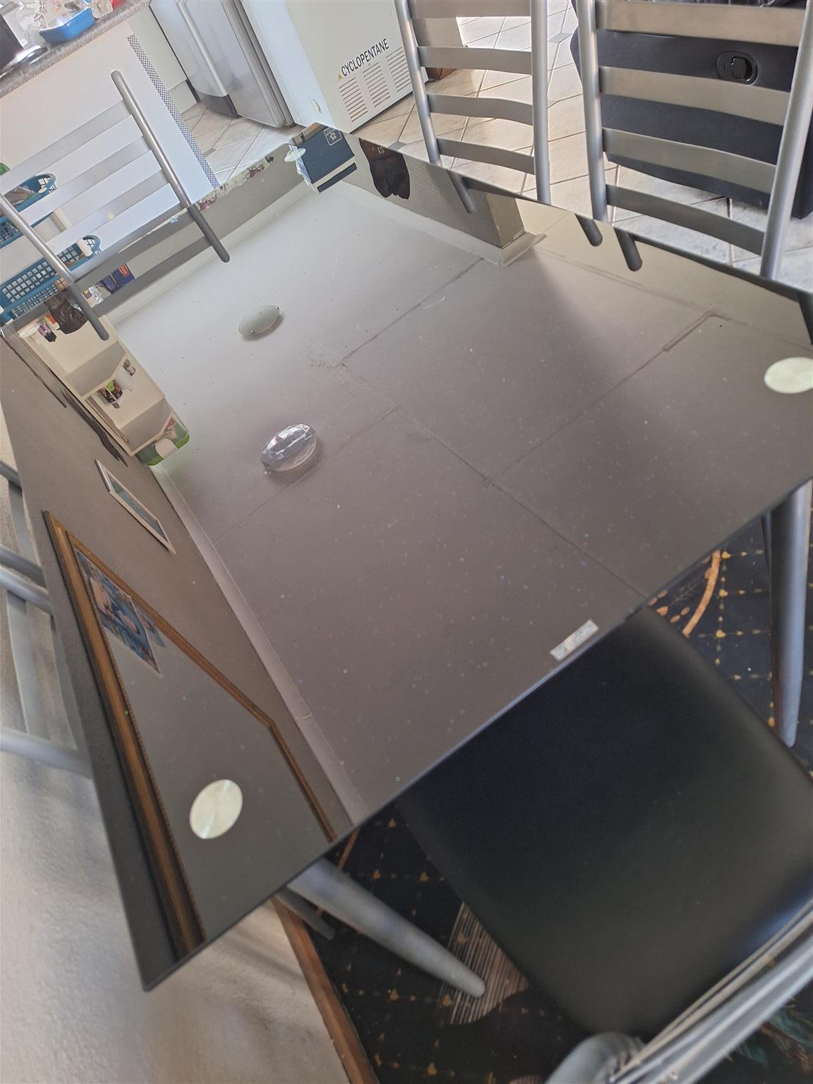 Glass Table with 4 chairs for sale ( The other 2 chairs are available 1 off the chairs seats are loose and the other chair got damaged when moving)