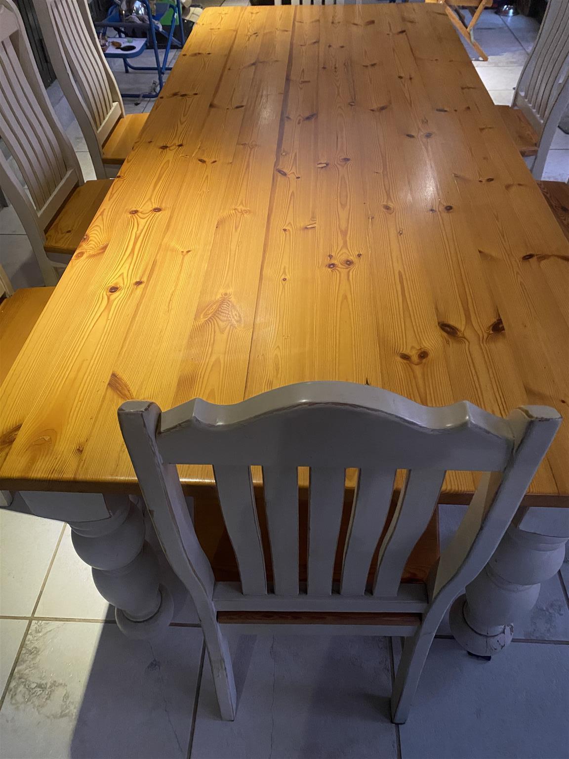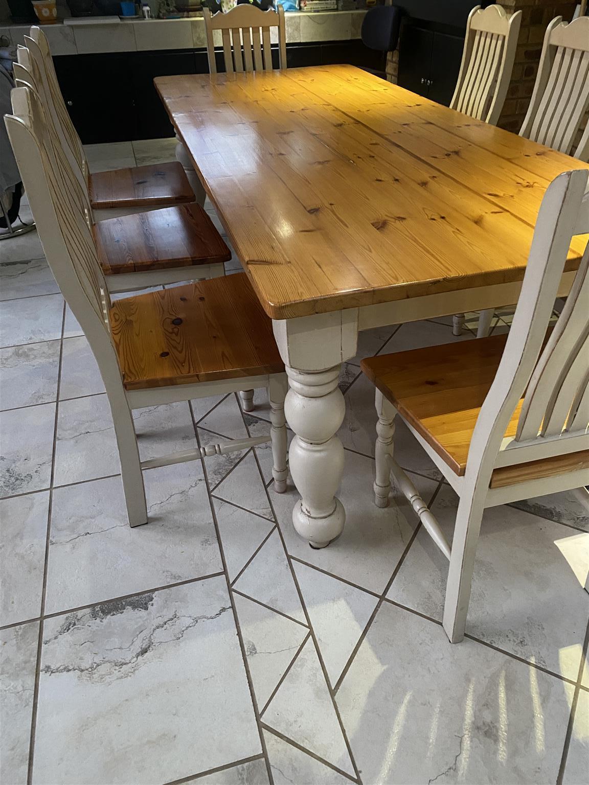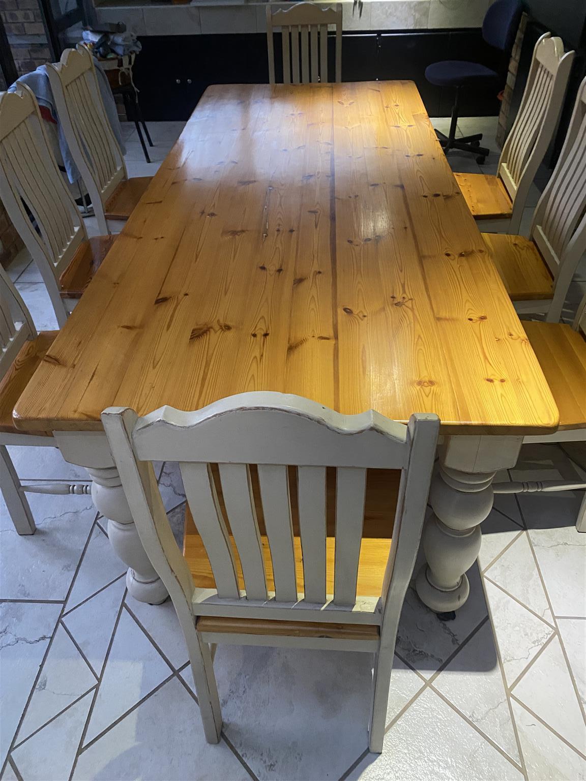 Wooden- 8-seater dining room suite for sale. Big wooden table with eight chairs. It is in very good condition.