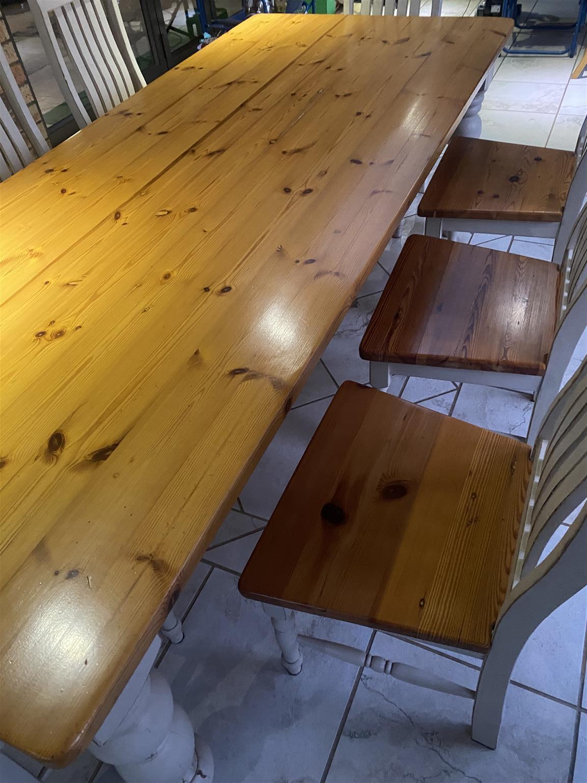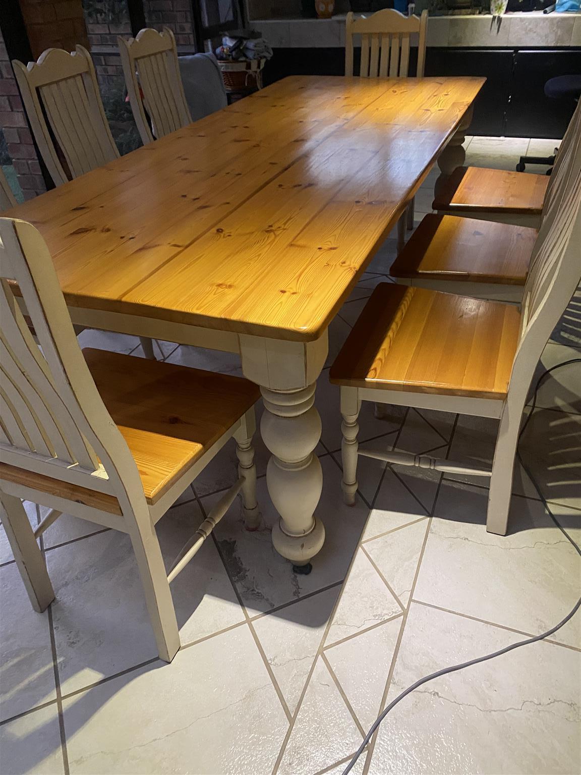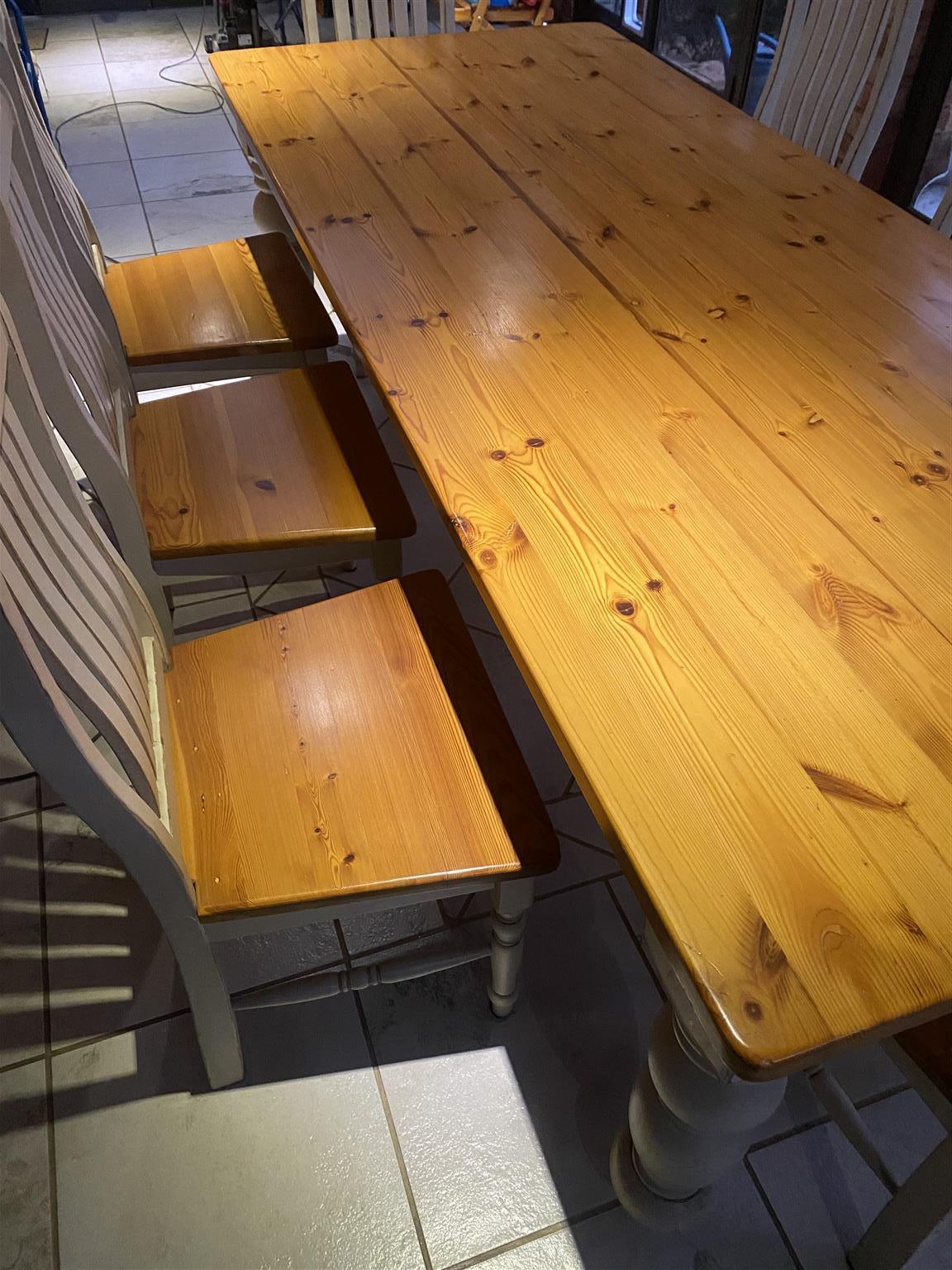 Wooden- 8-seater dining room suite for sale. Big wooden table with eight chairs. It is in very good condition.