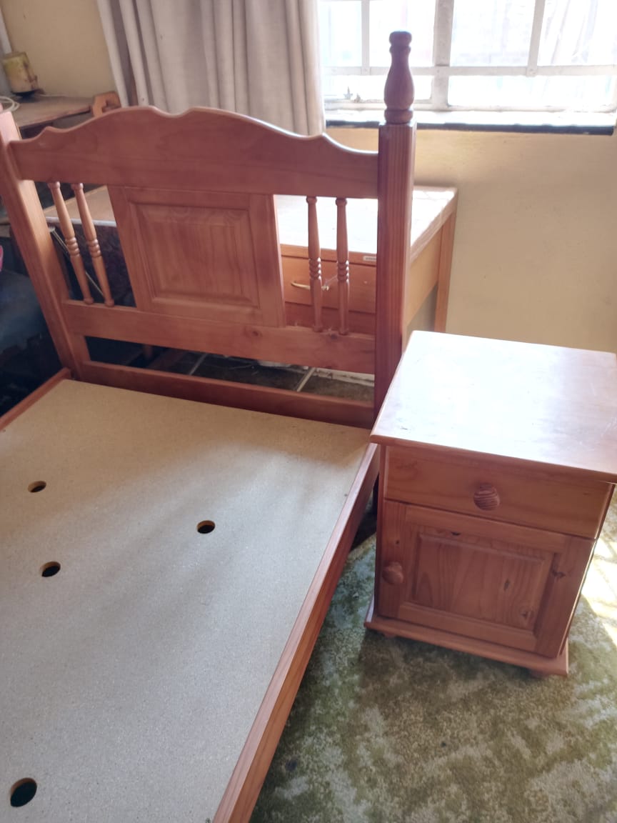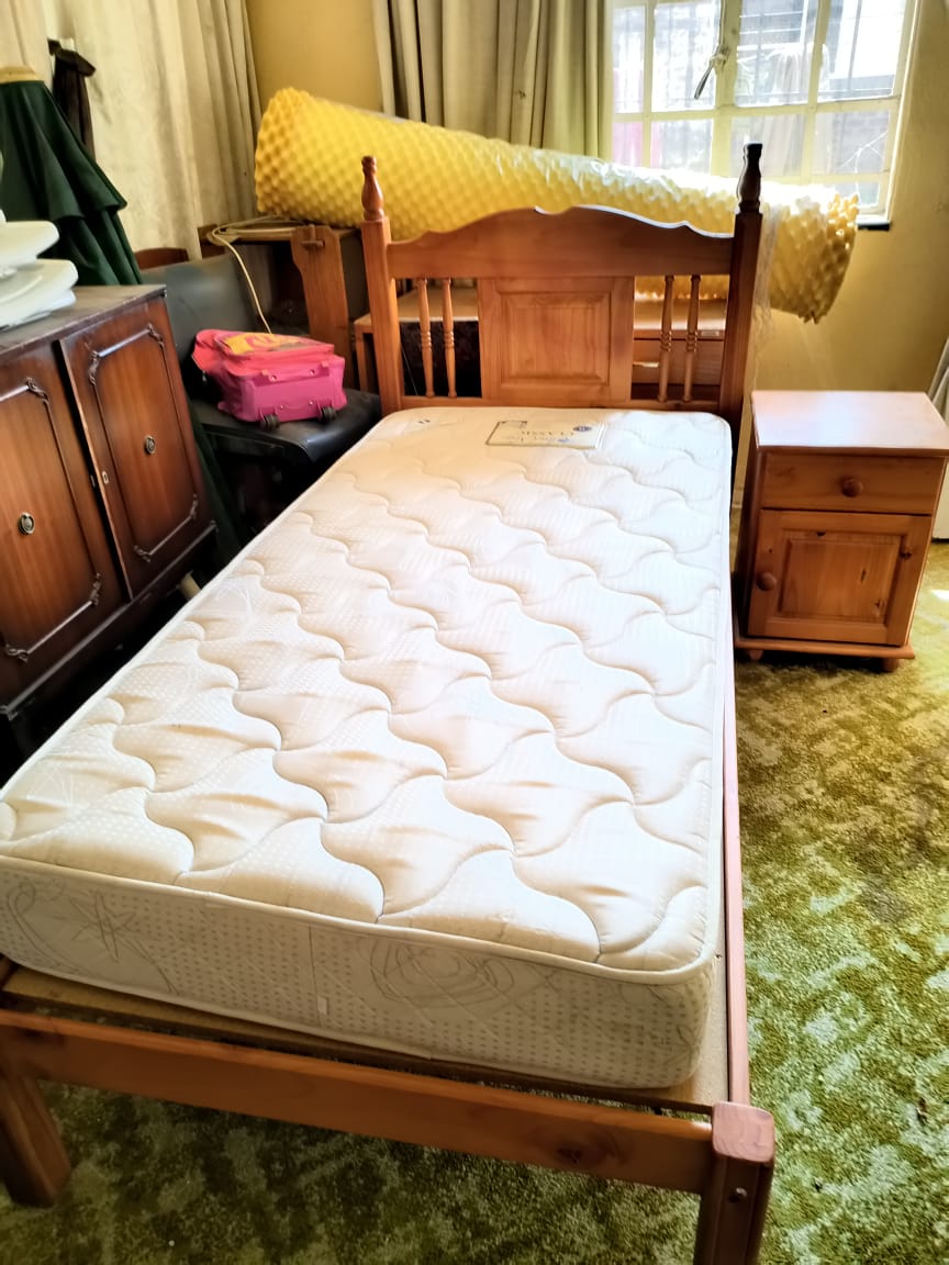 SINGLE BED WITH SIDE TABLE, AND MATRESS