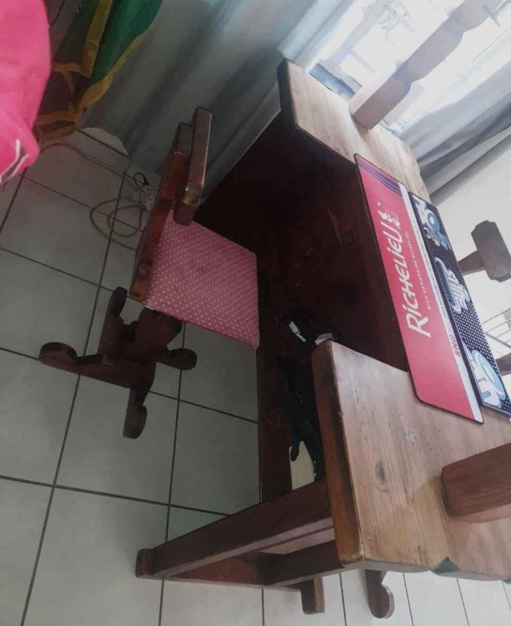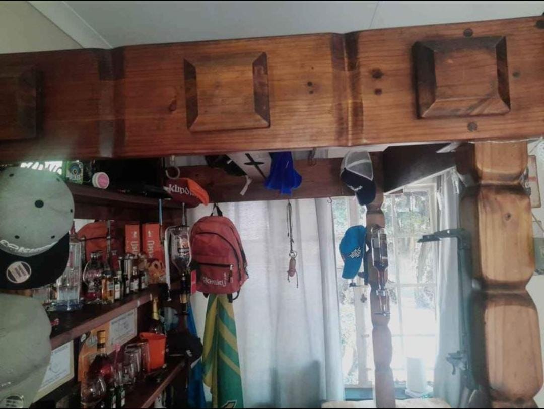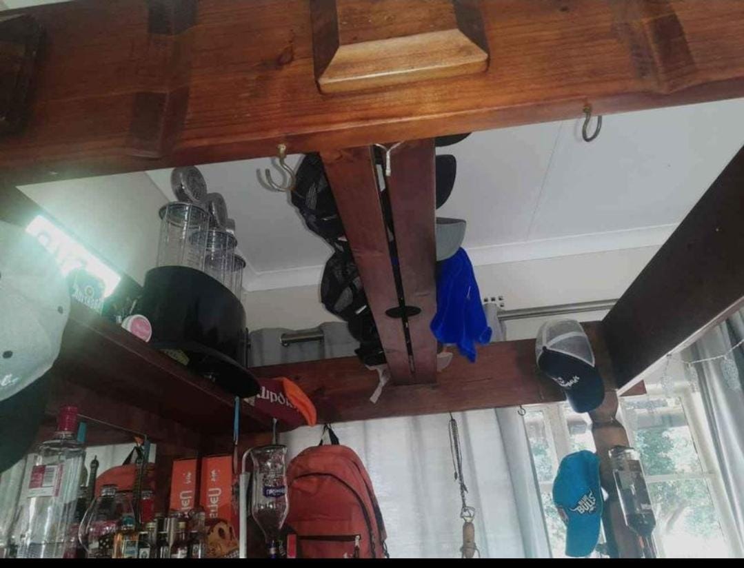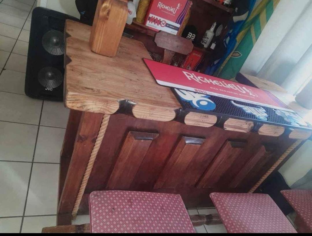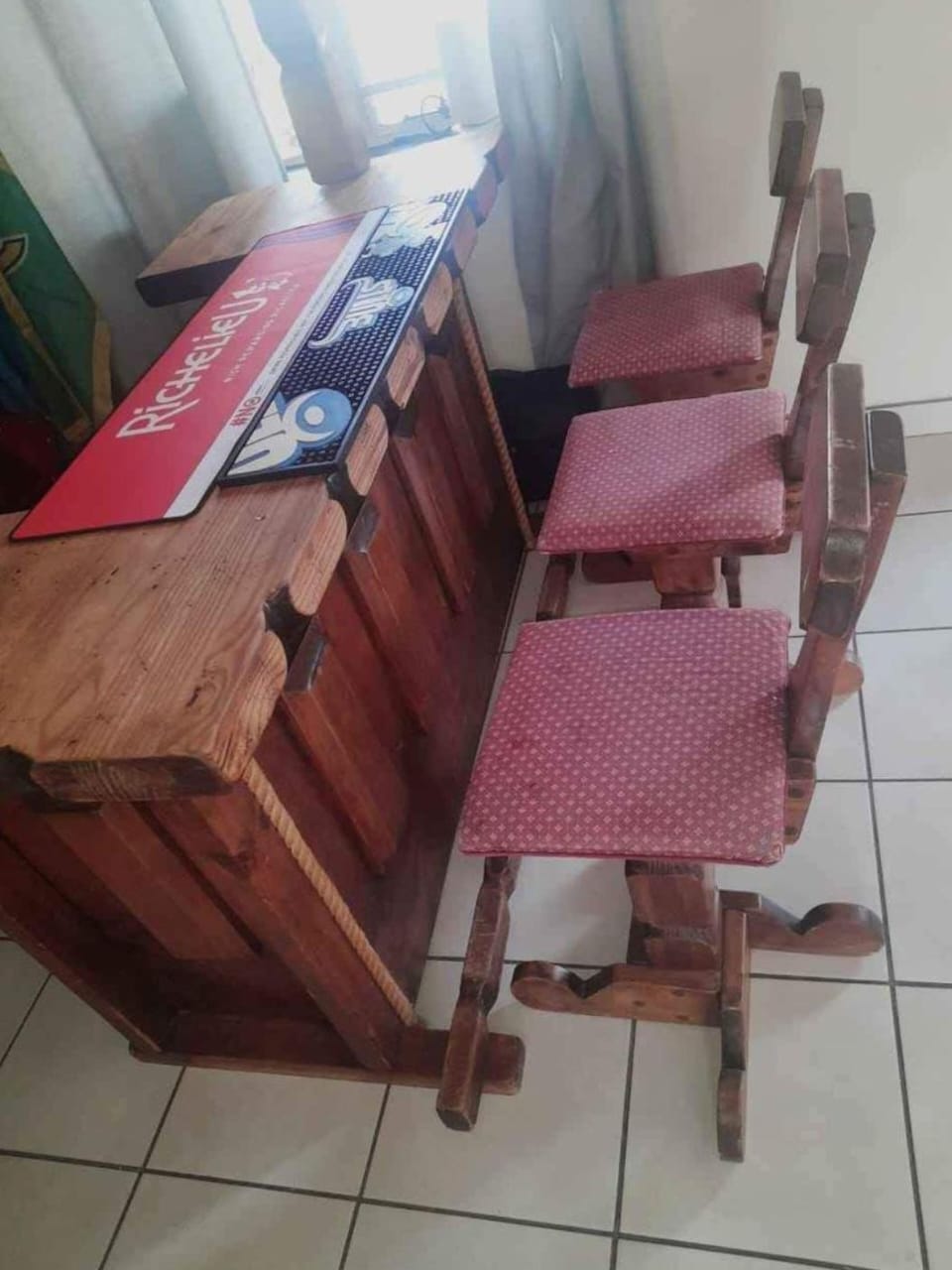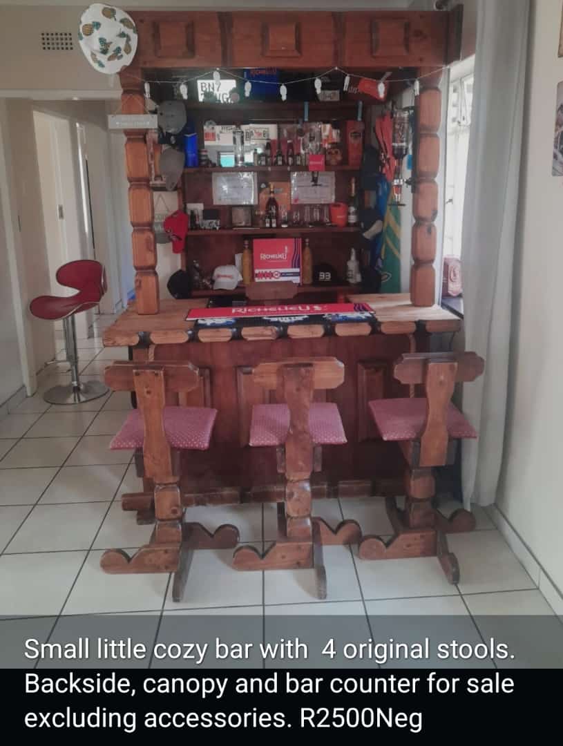 Wood bar with backside and canopy and 4 original bar stoels. More details: