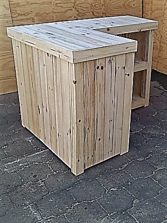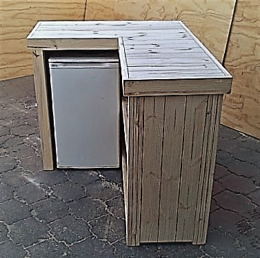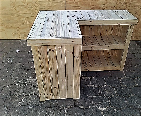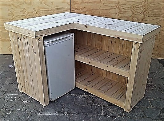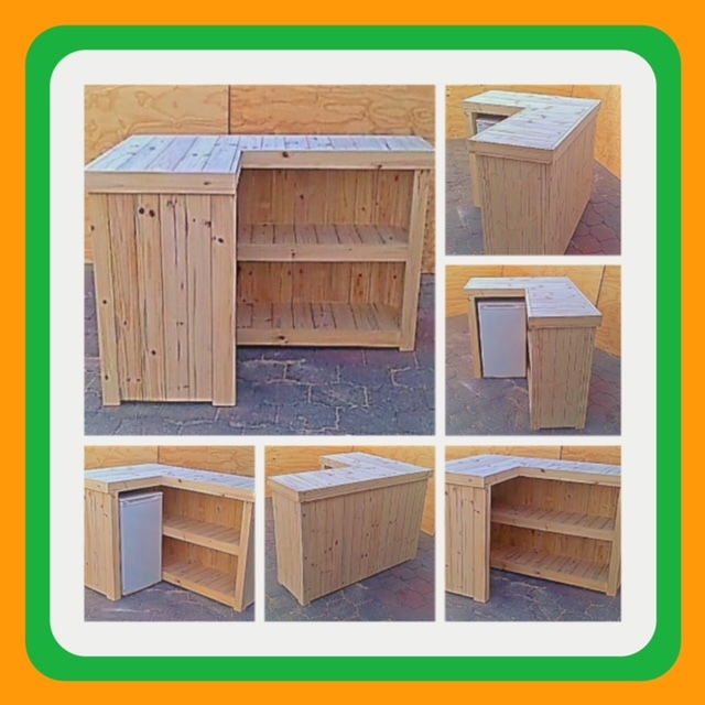 The beautiful hand-crafted design makes it a showcase piece for the entertainer! Ideal for that cosy corner where Dad can relax with a cold one after a hectic day at the office. Very versatile piece. Can also be used as a Reception Counter, Coffee bar etc. Bar fridge excluded