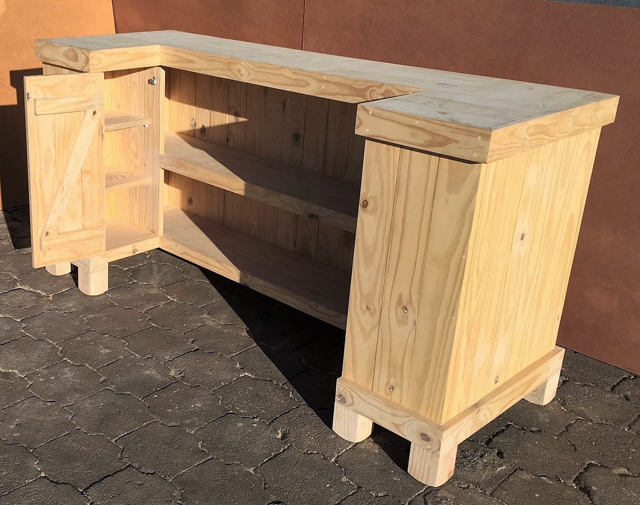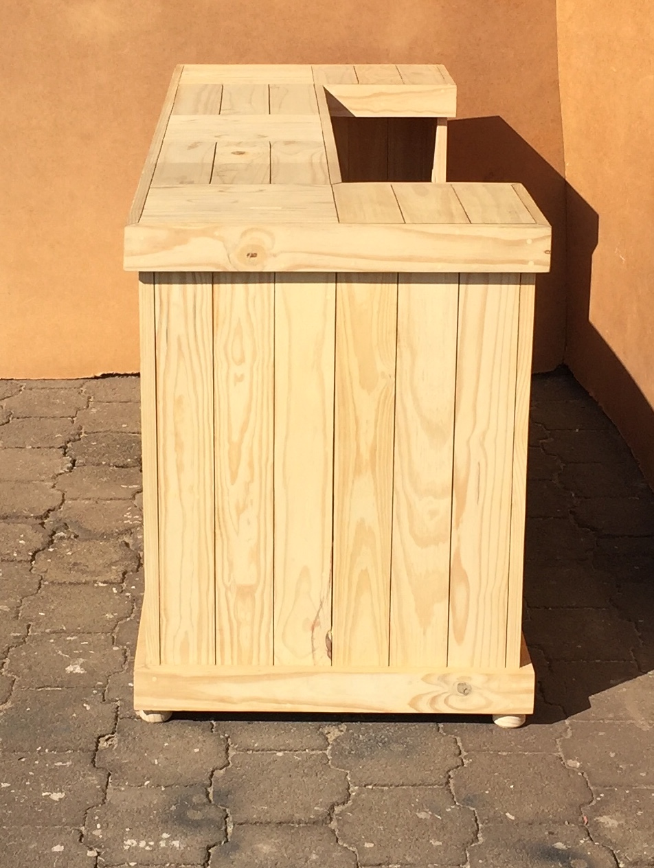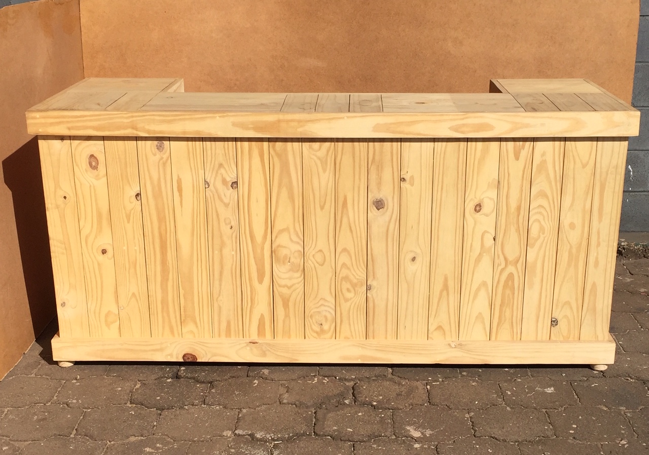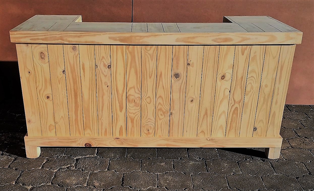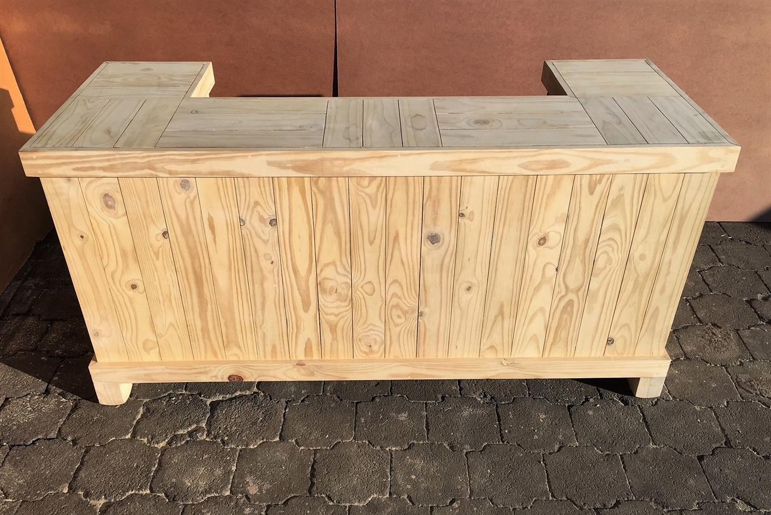 Beautiful hand-crafted design making it a definite focus point for the entertainer! Handy cupboard for glasses or to "hide" that very special bottle! Very versatile piece, can also be used as a Reception Counter, Coffee bar etc.