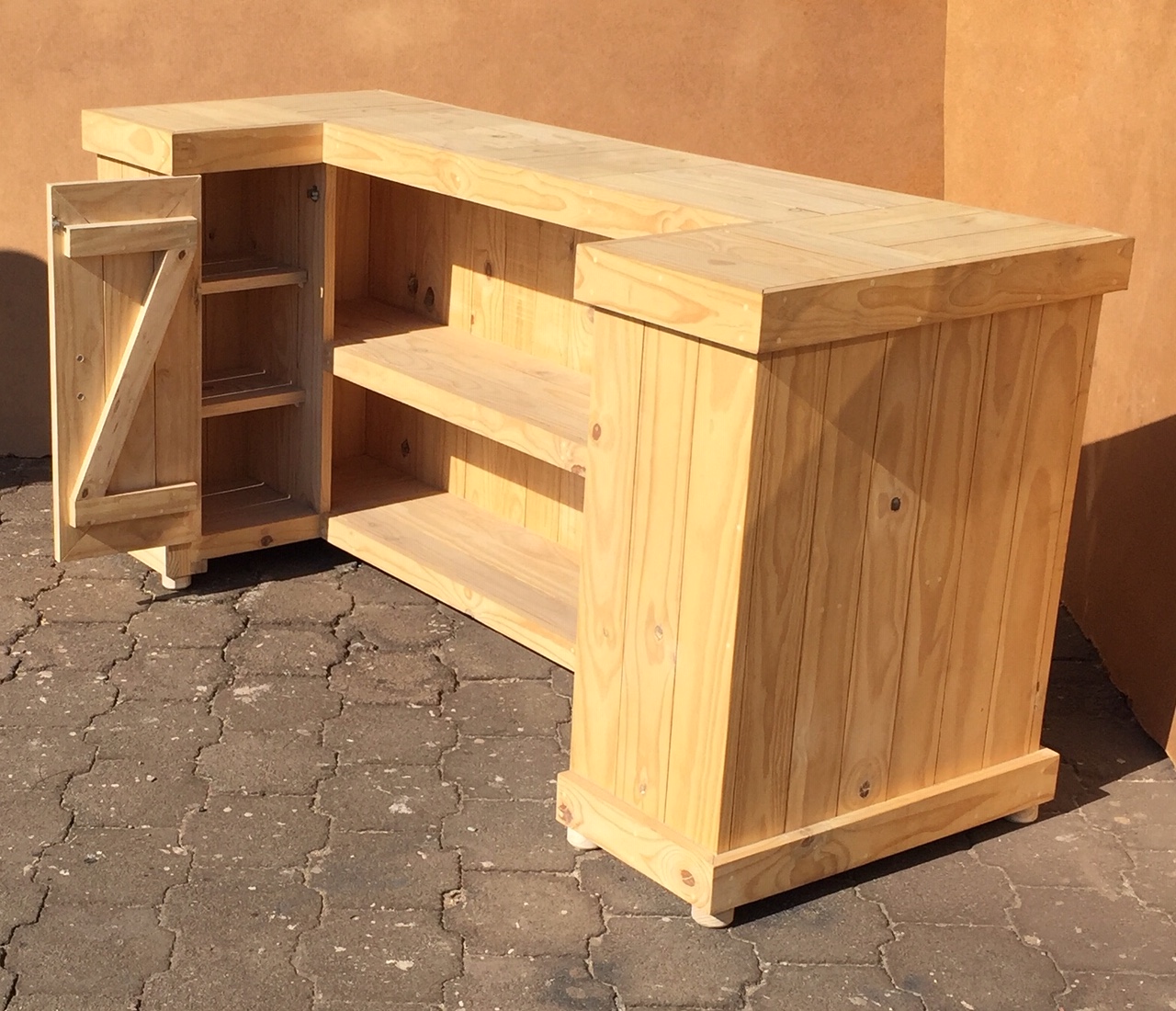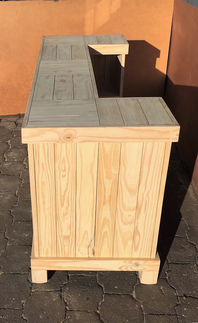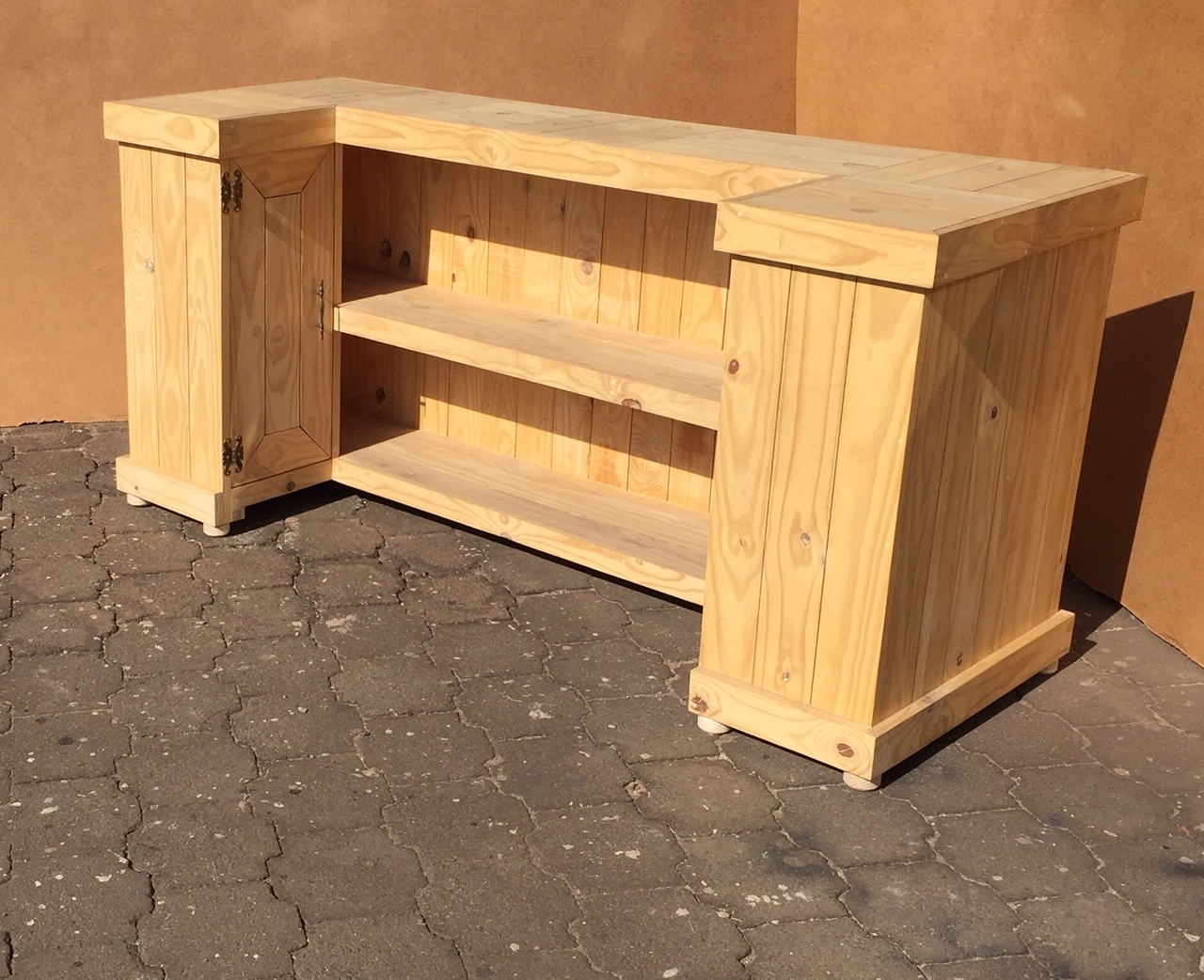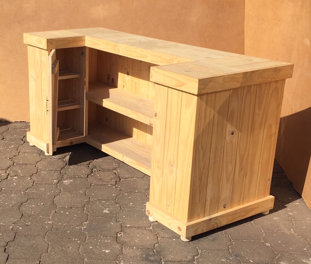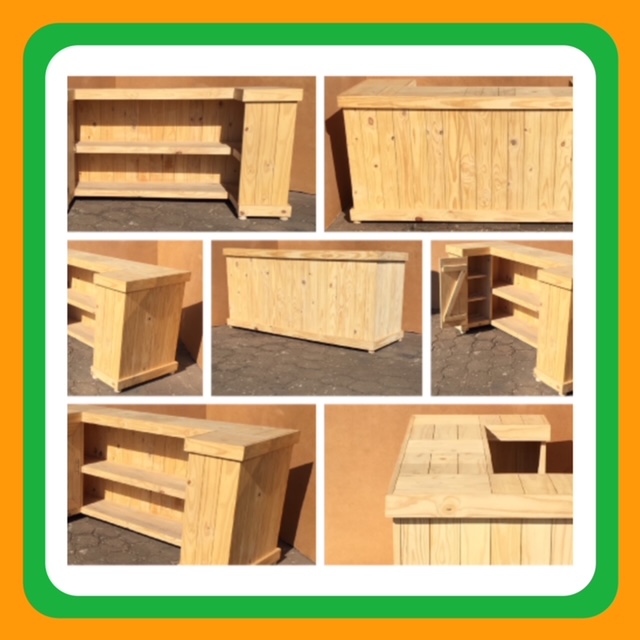 Beautiful hand-crafted design making it a definite focus point for the entertainer! Handy cupboard for glasses or to "hide" that very special bottle! Very versatile piece, can also be used as a Reception Counter, Coffee bar etc.