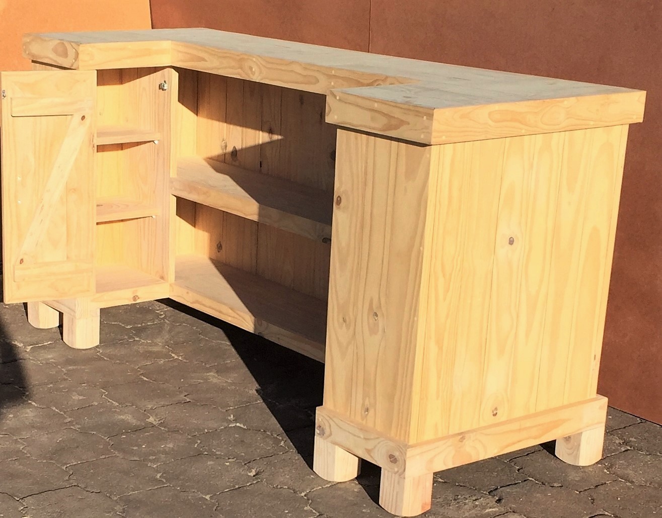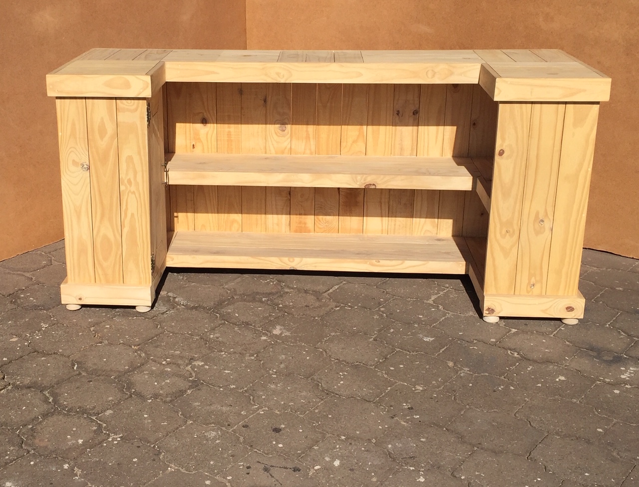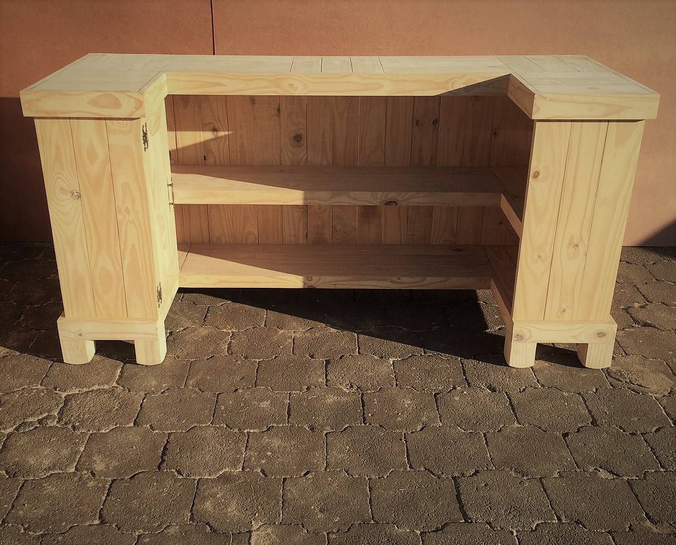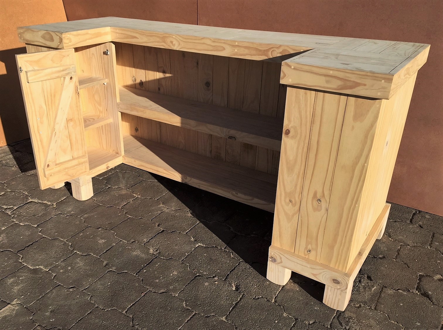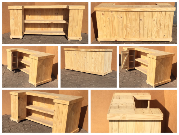 Beautiful hand-crafted design making it a definite focus point for the entertainer! Handy cupboard for glasses or to "hide" that very special bottle! Very versatile piece, can also be used as a Reception Counter, Coffee bar etc.