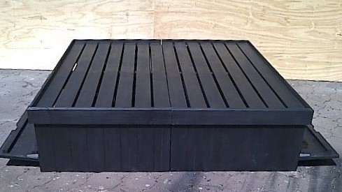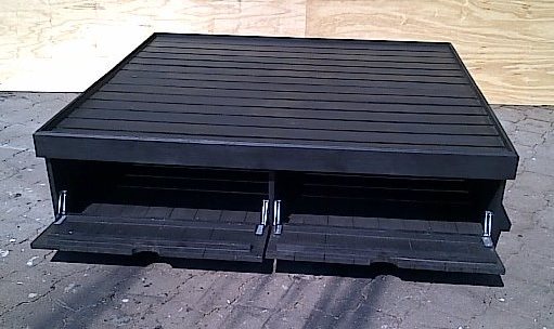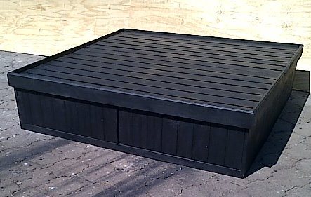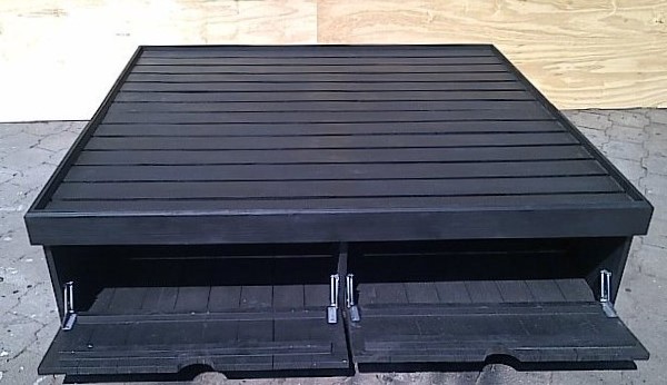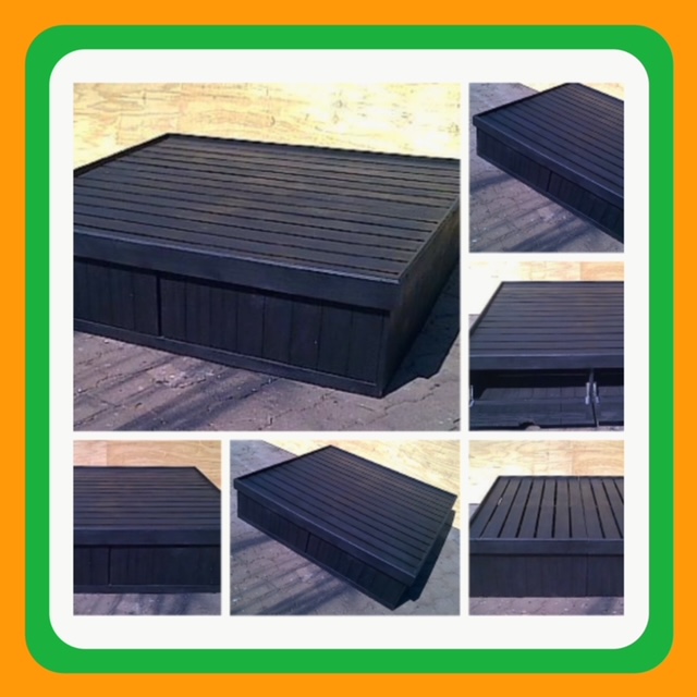 A sturdy piece with a lot of wood! Hand crafted and beautifully designed, a truly special piece. Each side has 2 doors on hinges. Very handy to store all the extra pillows, duvets, sheets and blankets. Headboards can be designed to be attached to this piece.