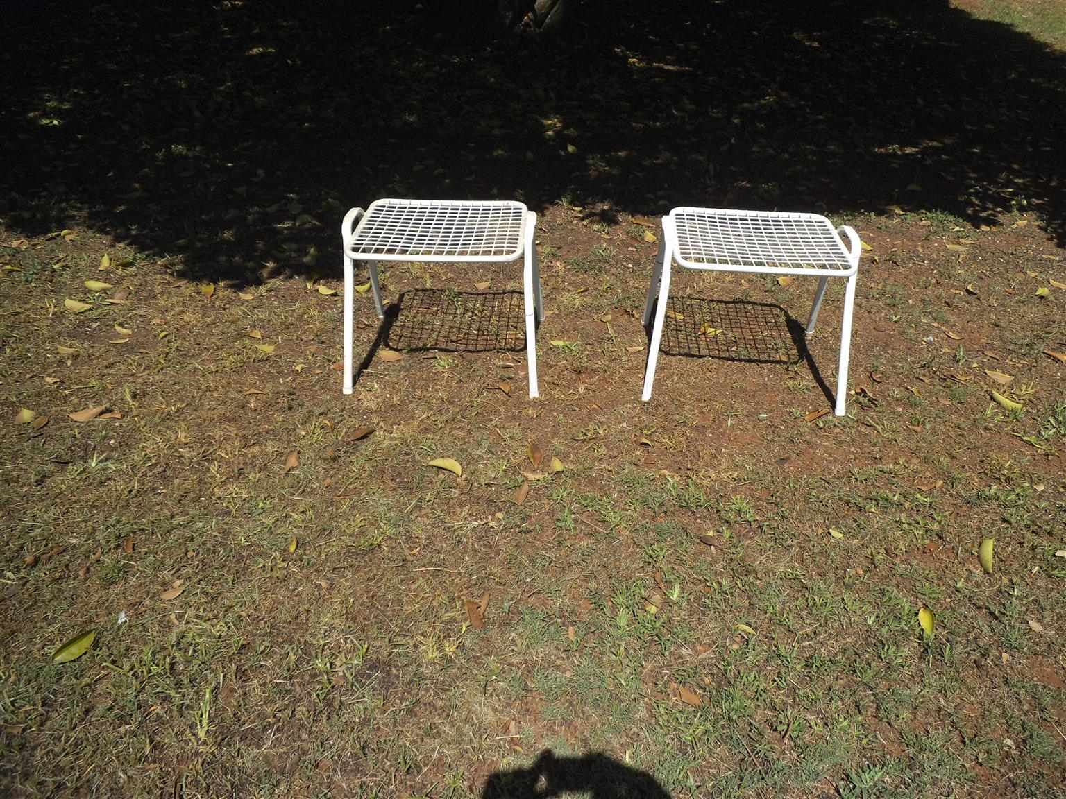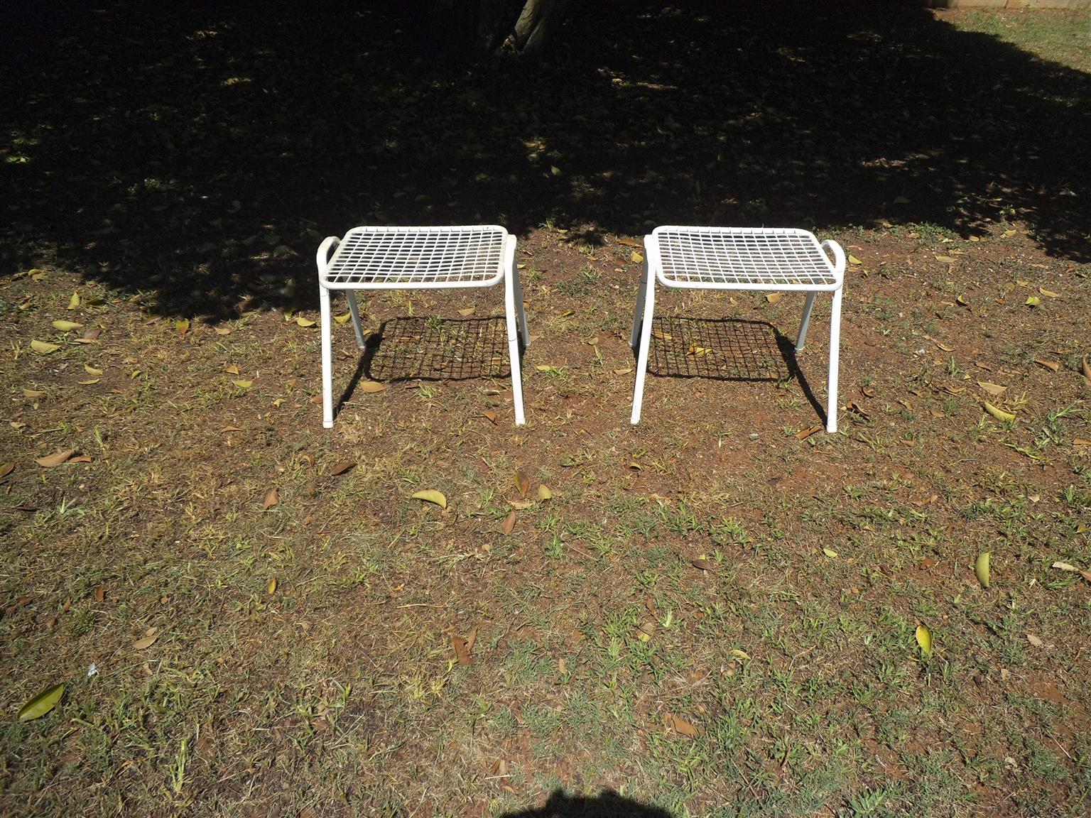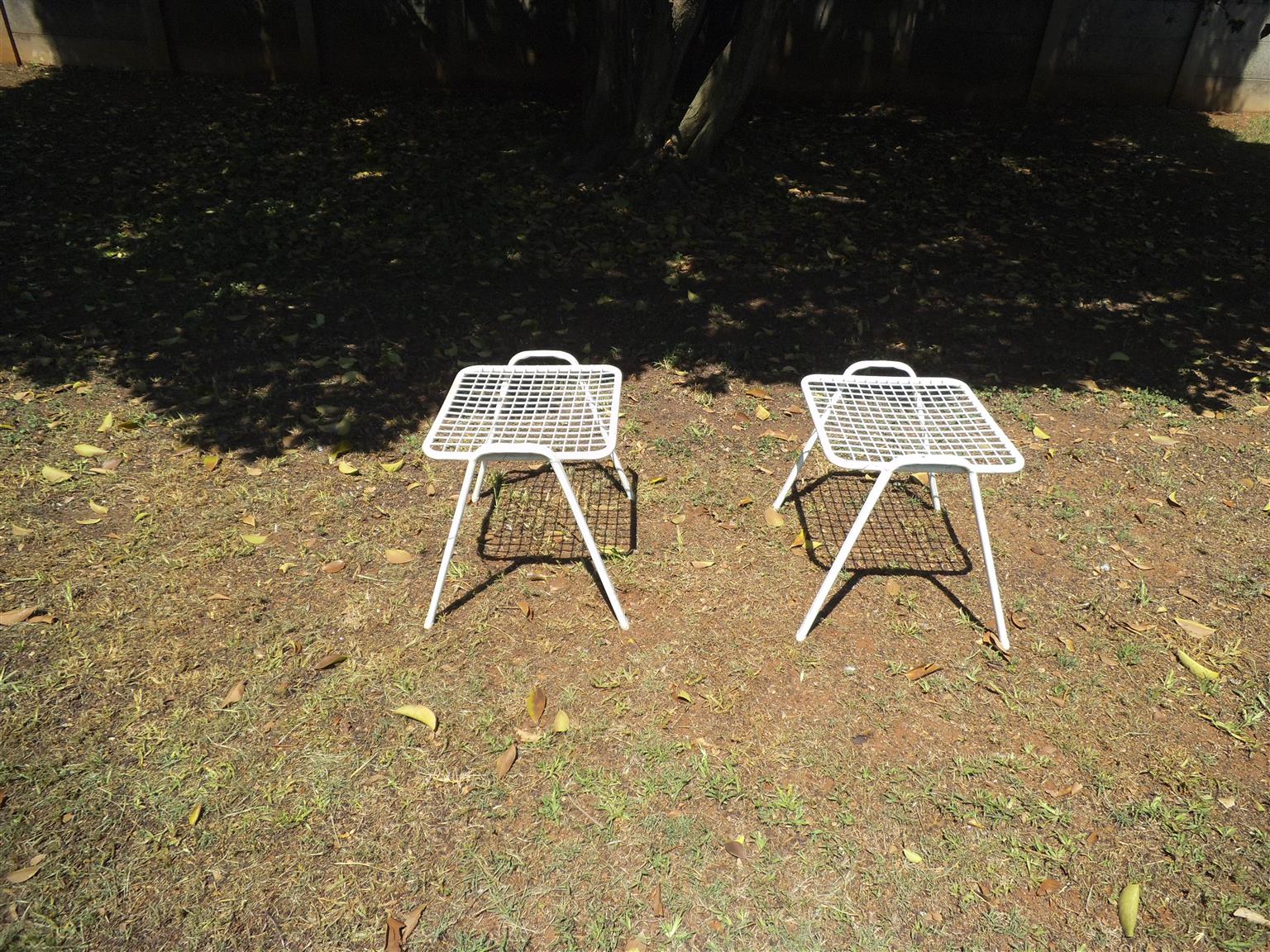 Garden side tables. Steel frames and mesh tops. White in colour. Matching pair (2 for R 198 ie R 99 ea).