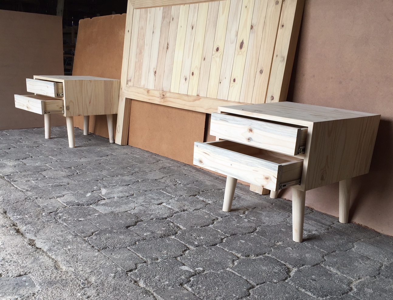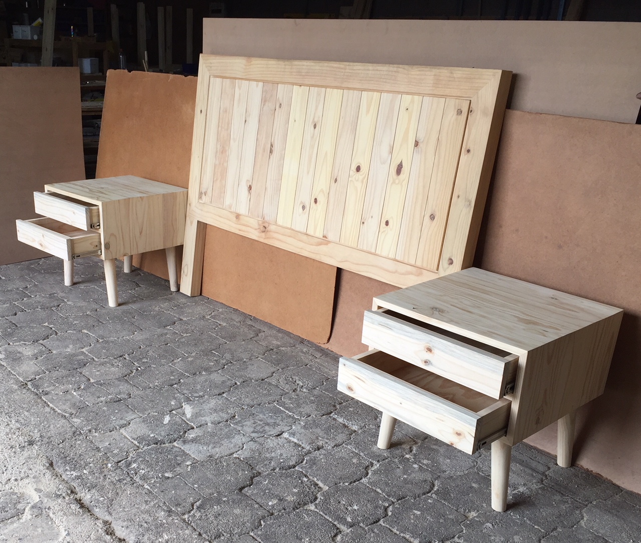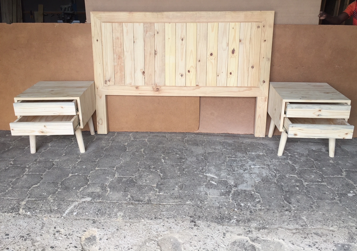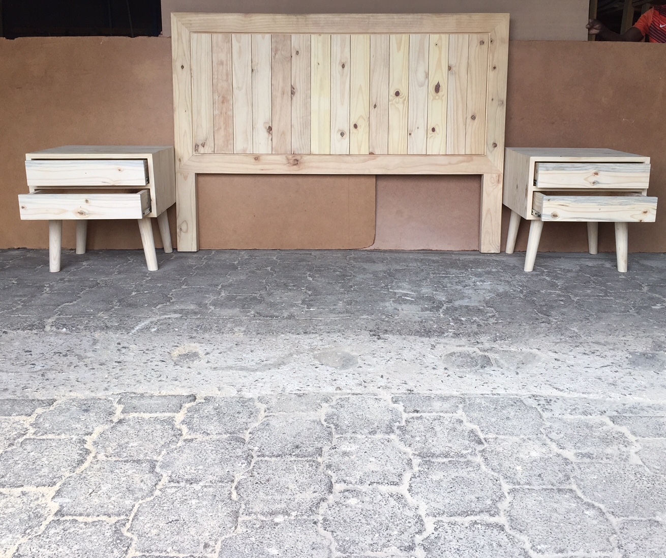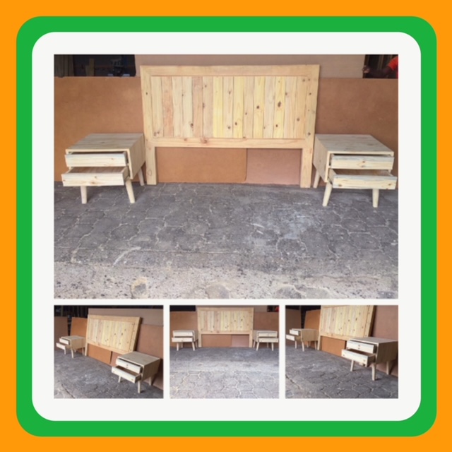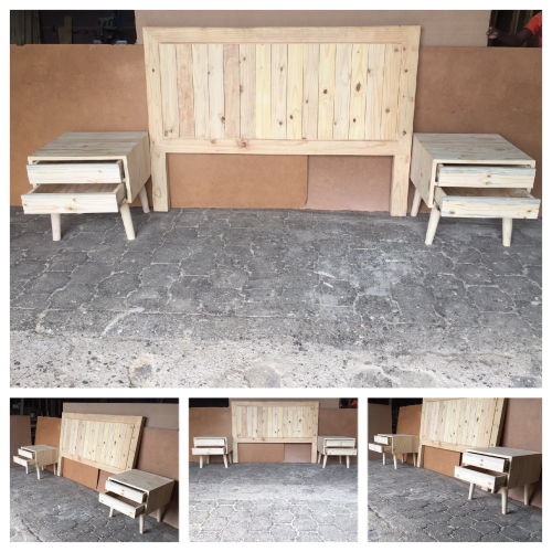 This raw hand-made combo consists of a Headboard and two beautiful Night stands. It will certainly light up any bedroom.