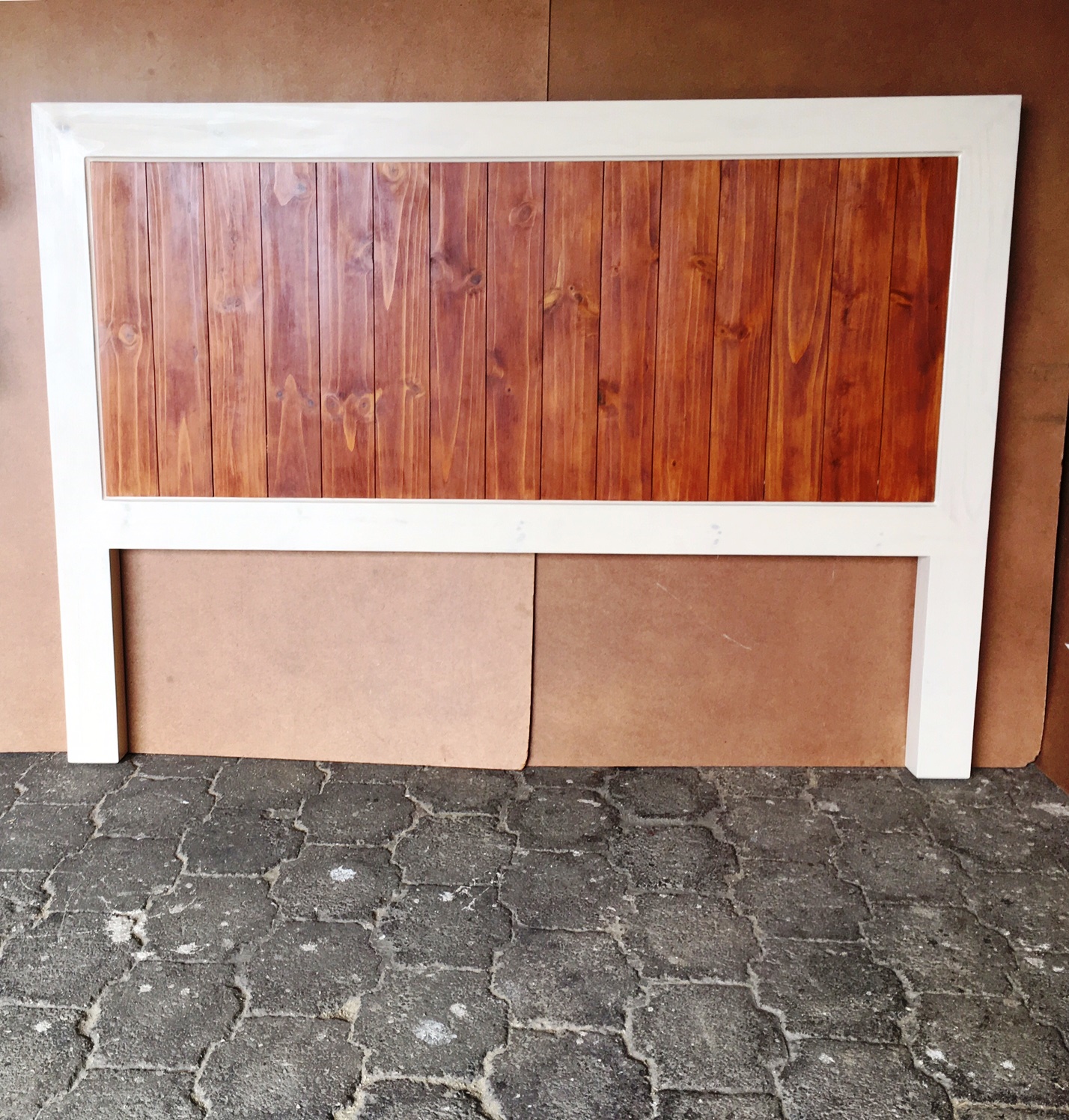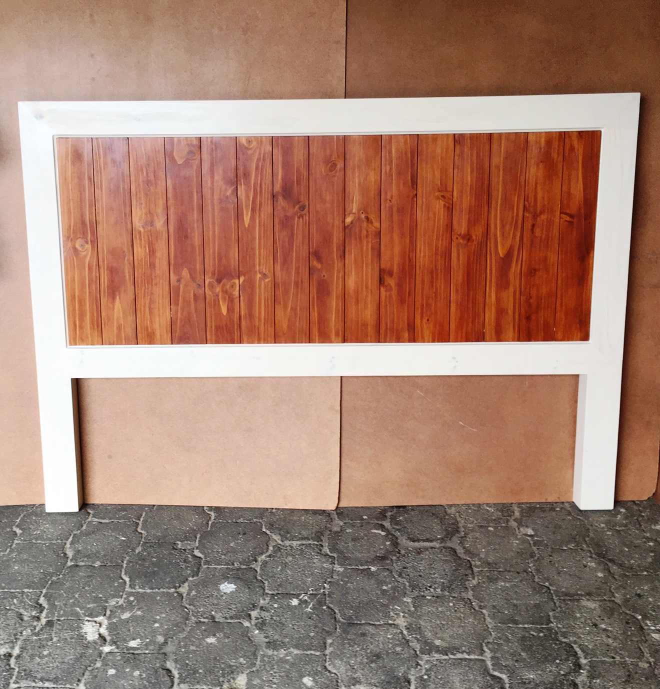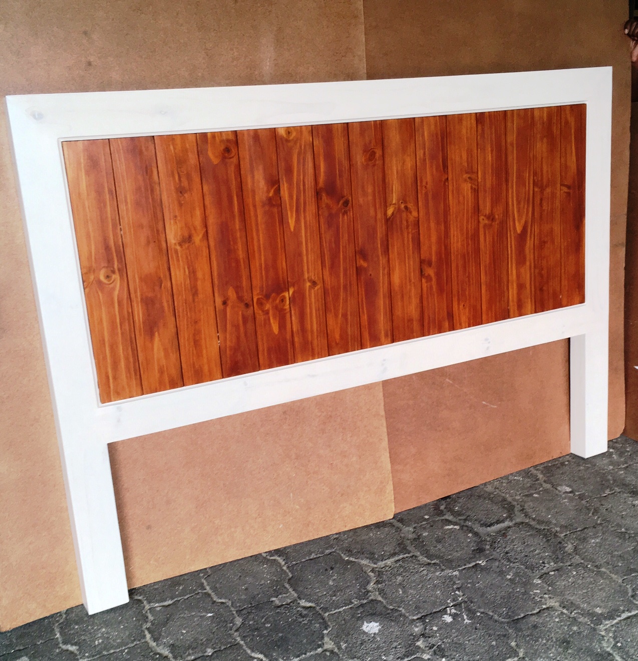 Beautiful and uniquely designed hand-made Two toned King size headboard. Night stands optional.