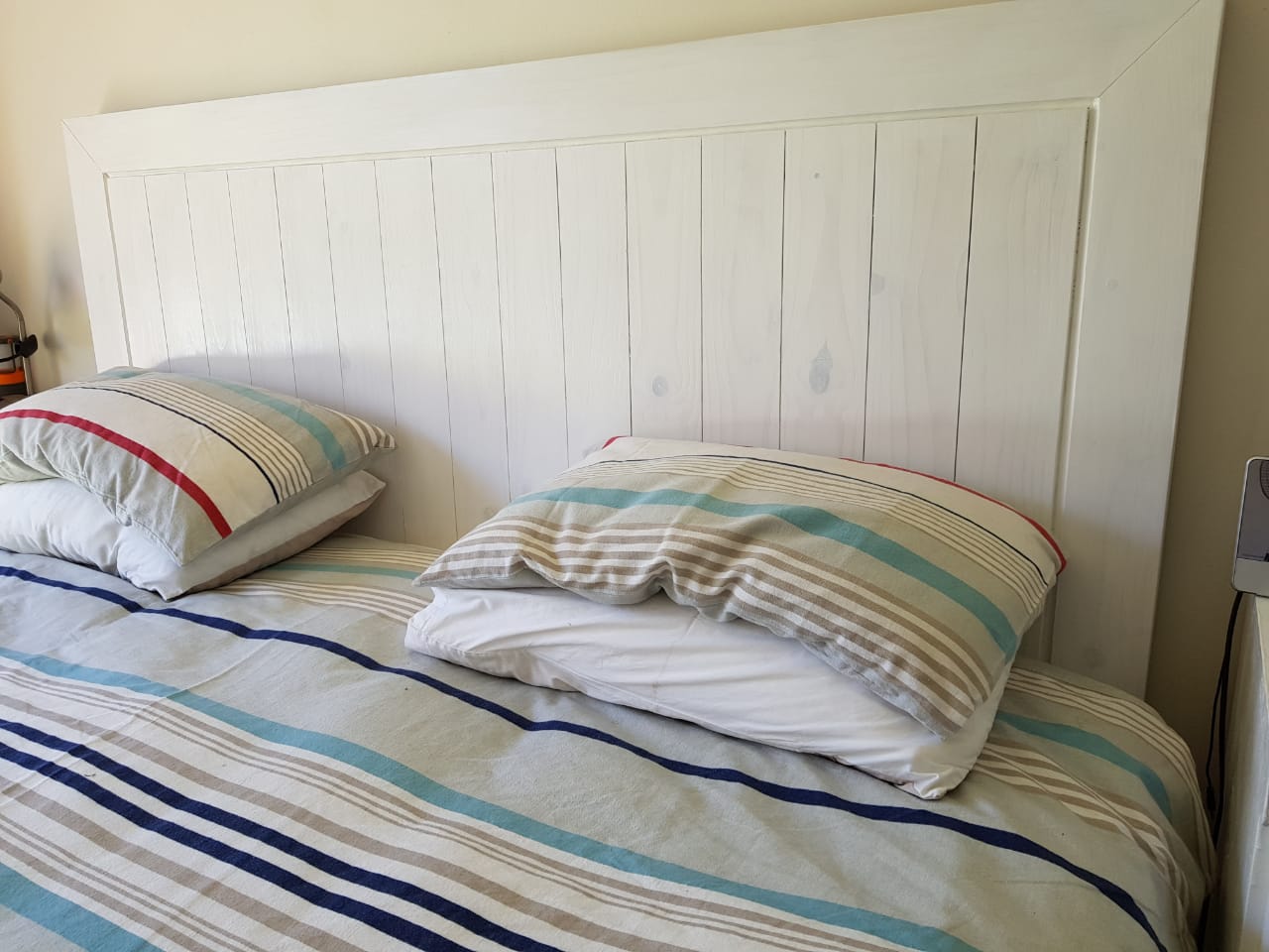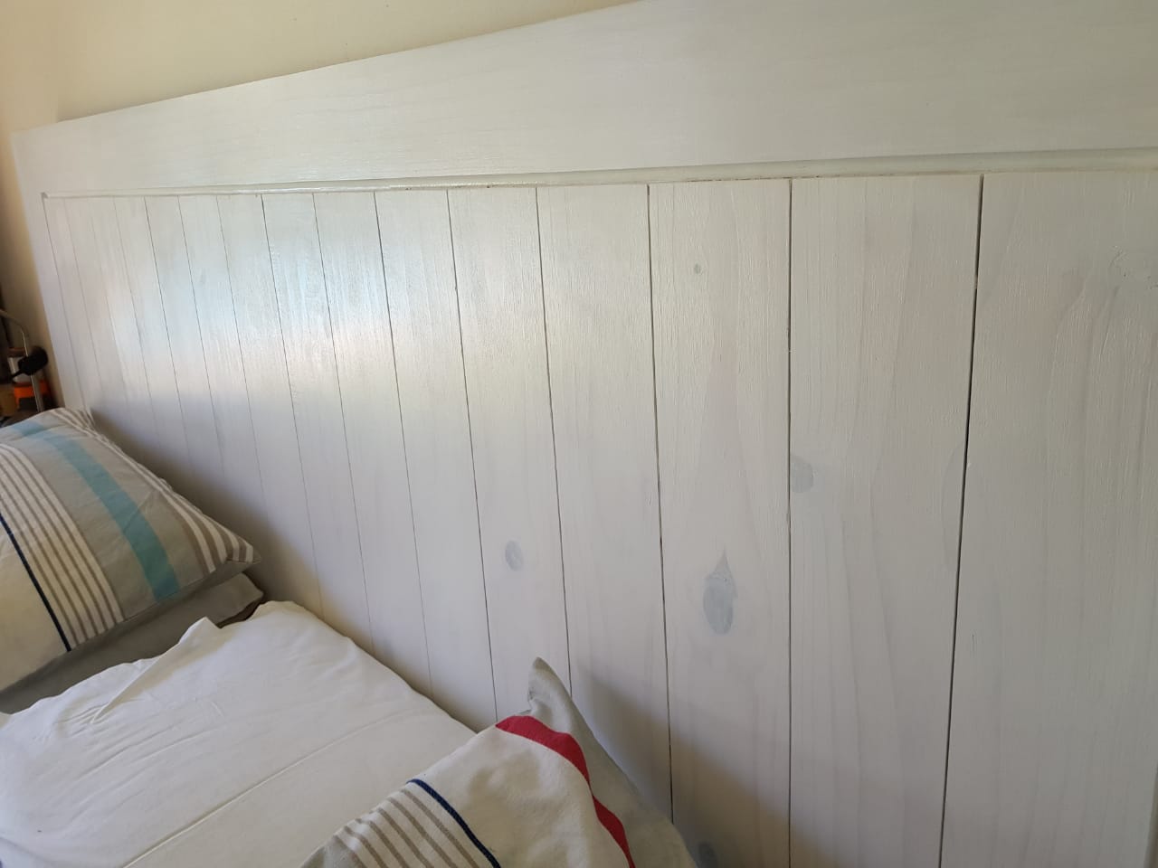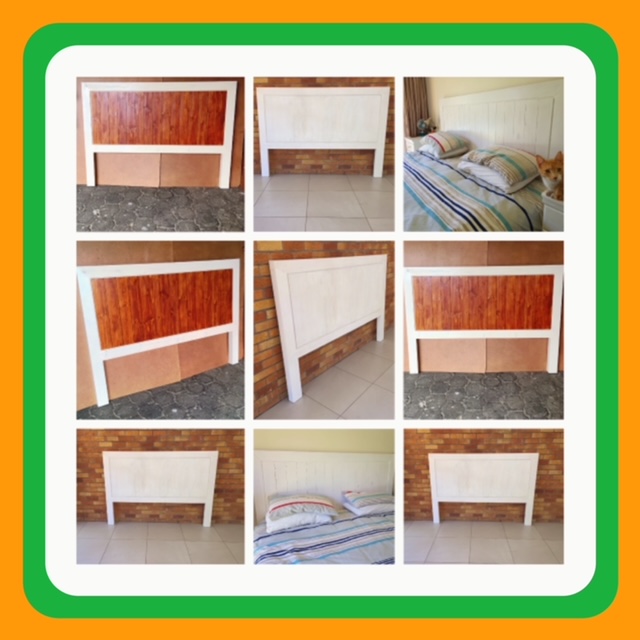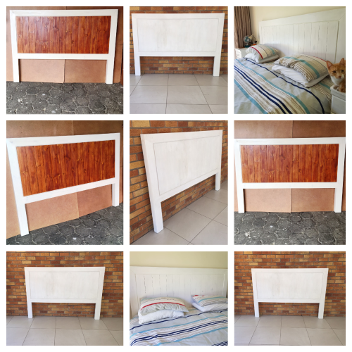 Beautiful and uniquely designed hand-made Two toned King size headboard. Night stands optional.