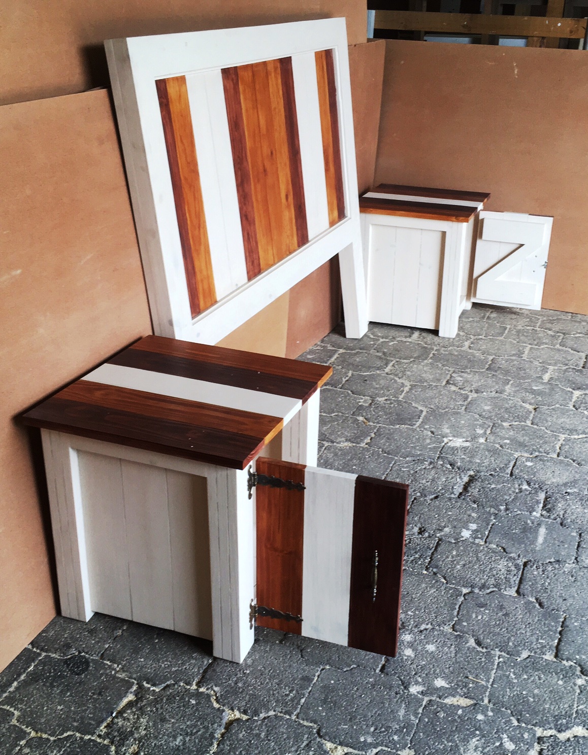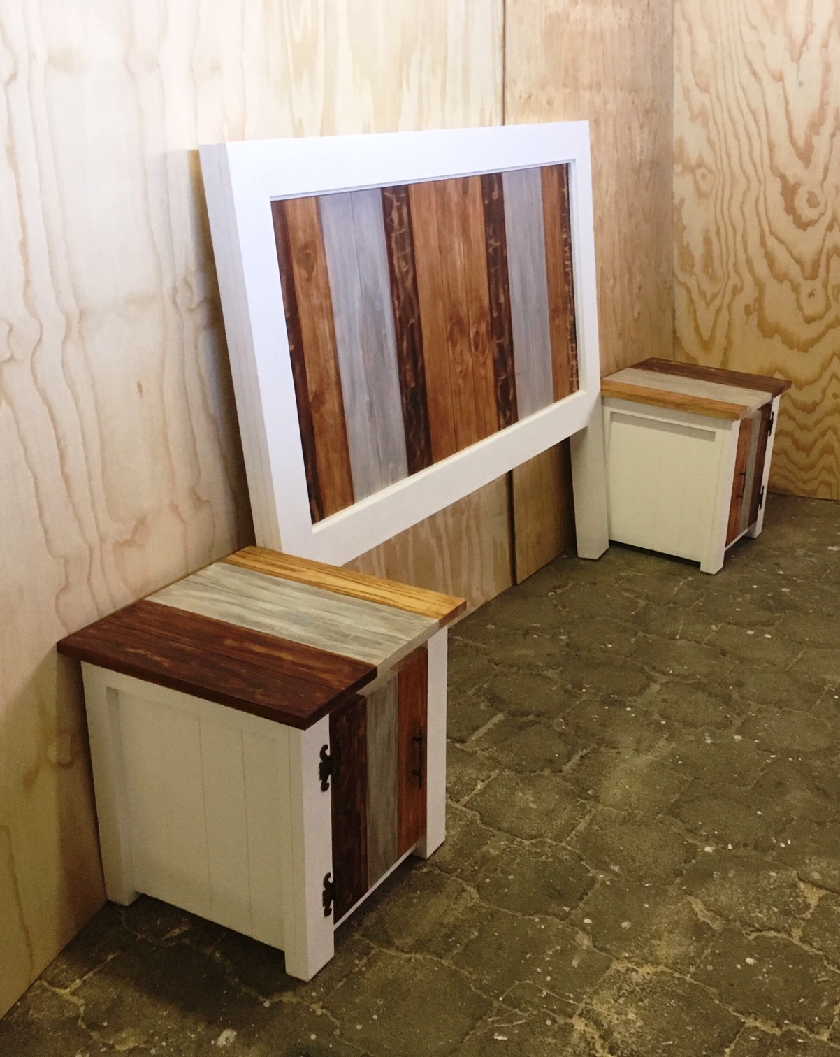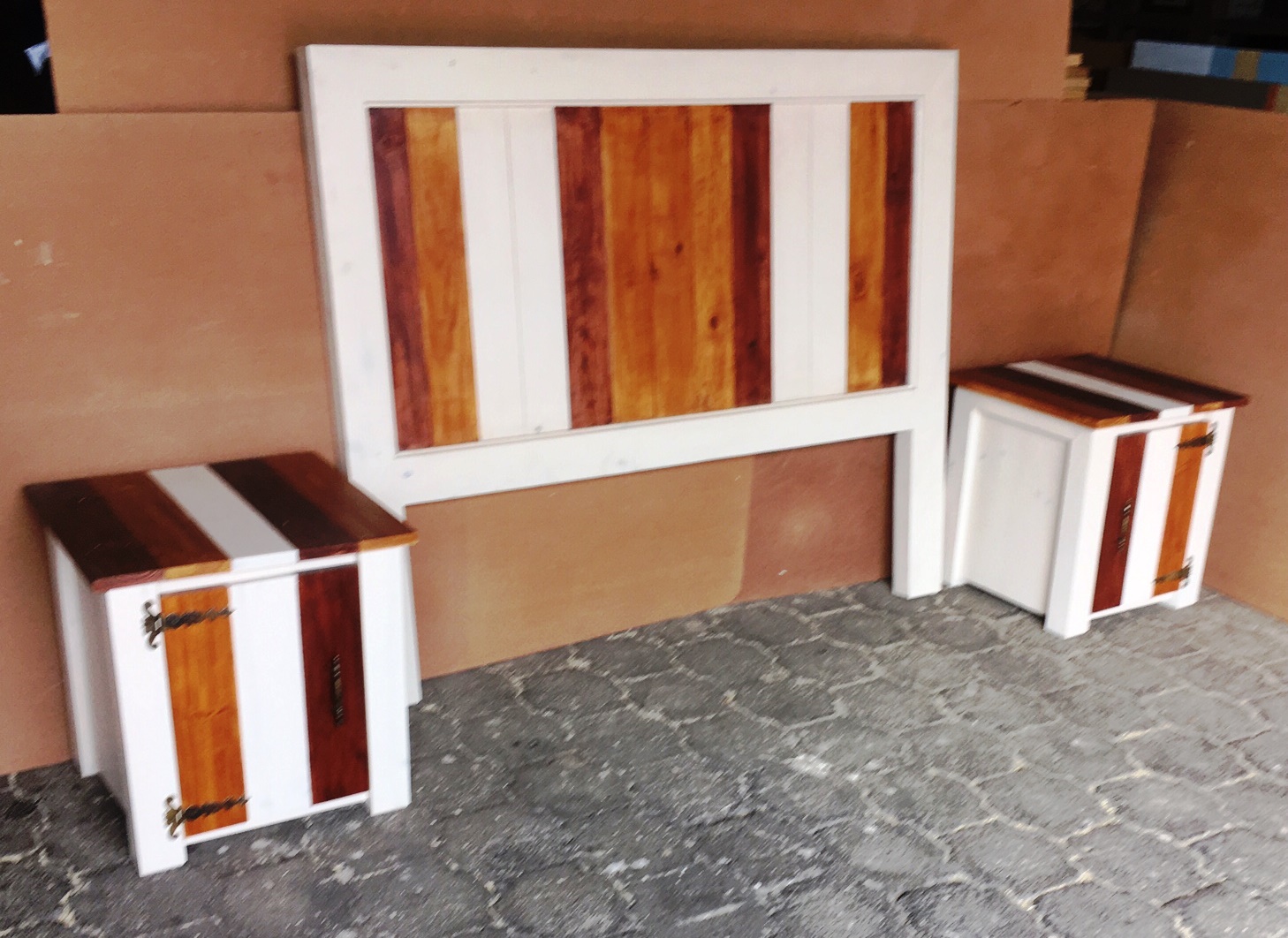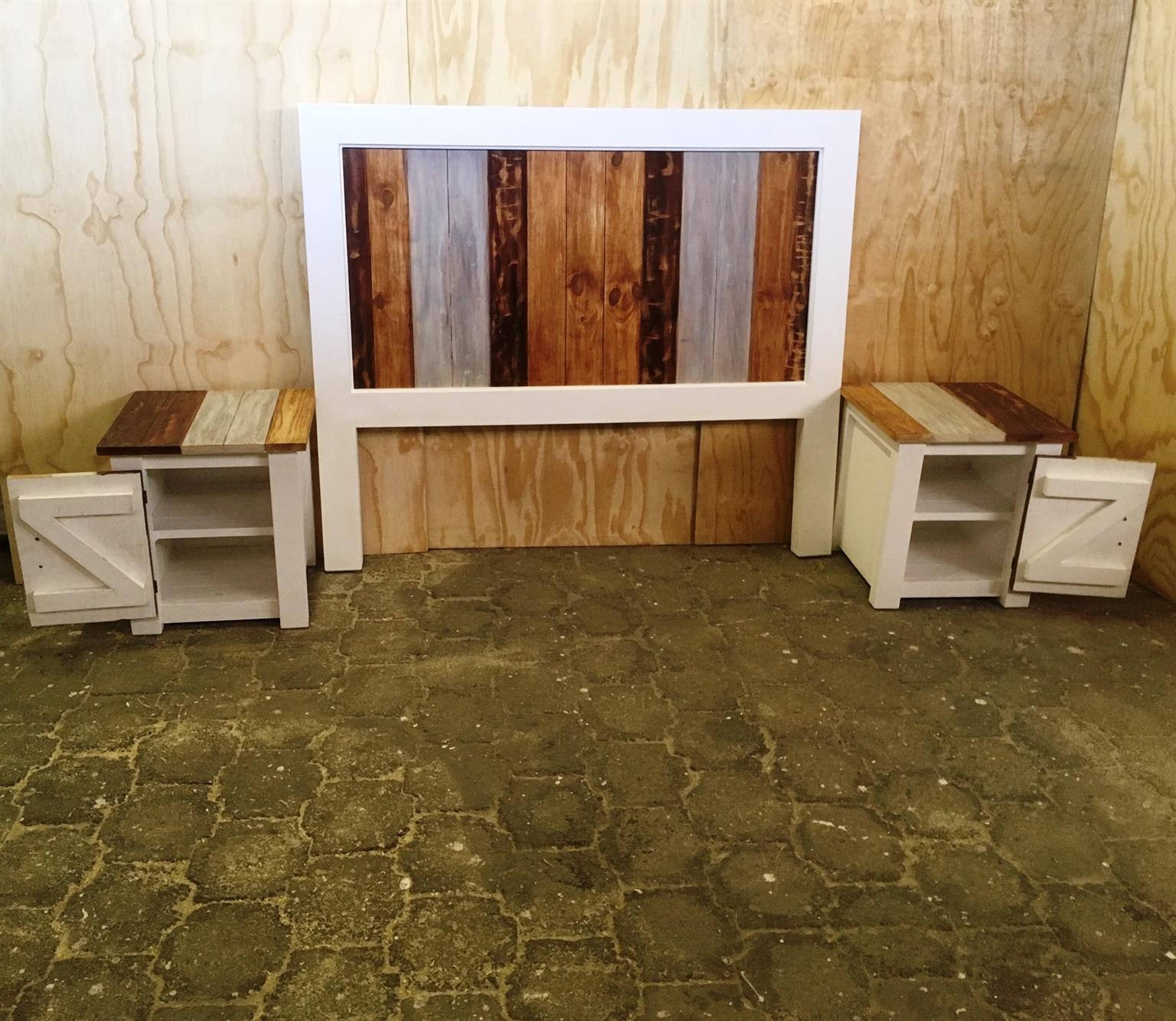 This beautiful designed "Weathered look" combo consists of a Headboard and two Night stands. It is very popular and will light up any bedroom.