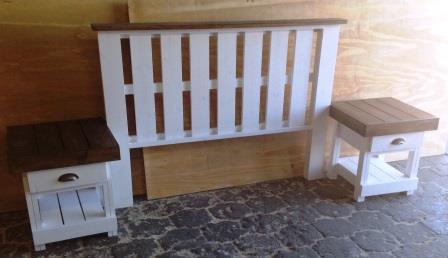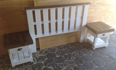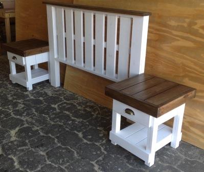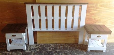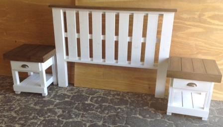 This beautiful brown stained top and white stained body headboard set consists of a Headboard and two Night stands. It is very popular with the younger generation and will light up any bedroom