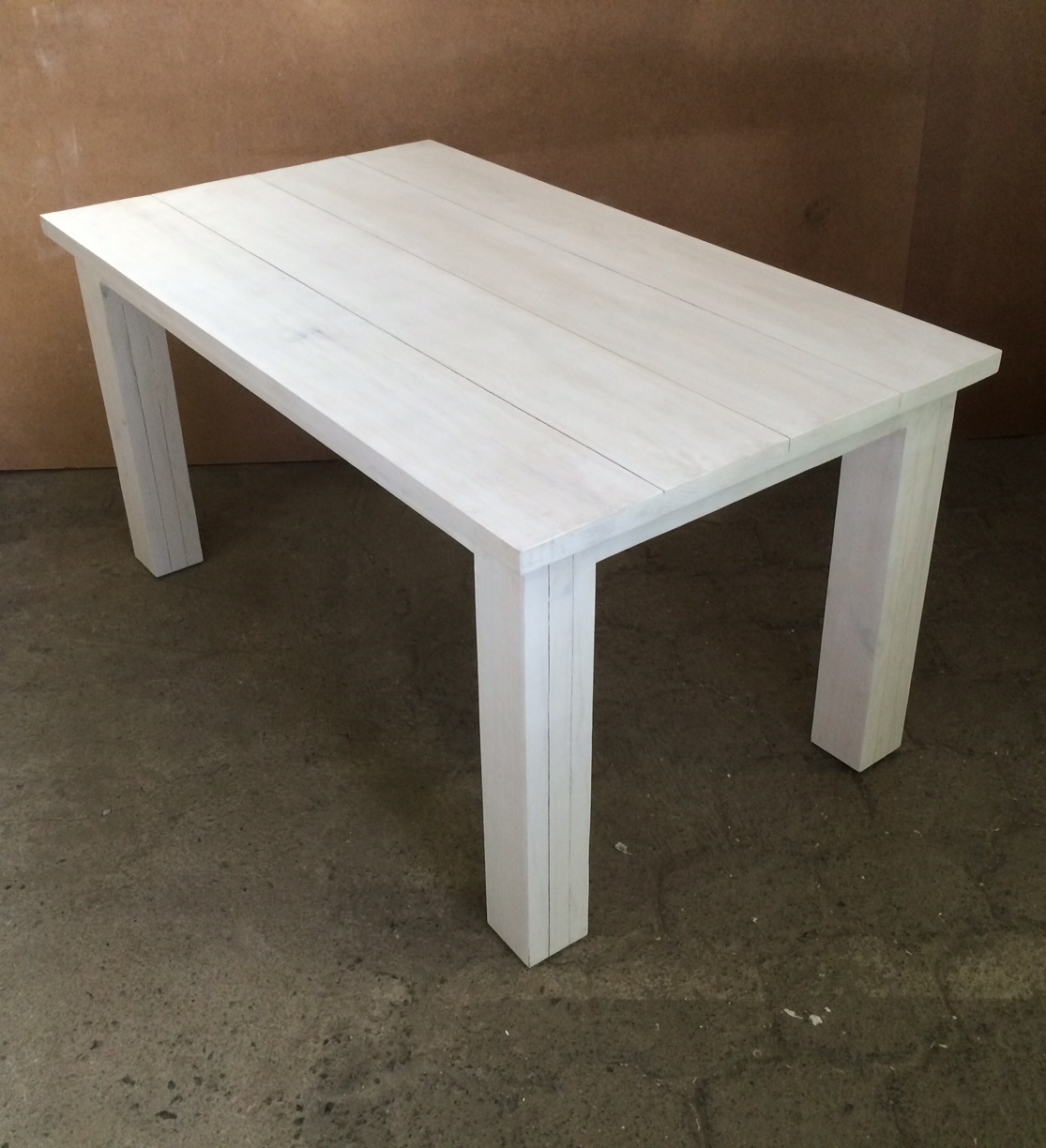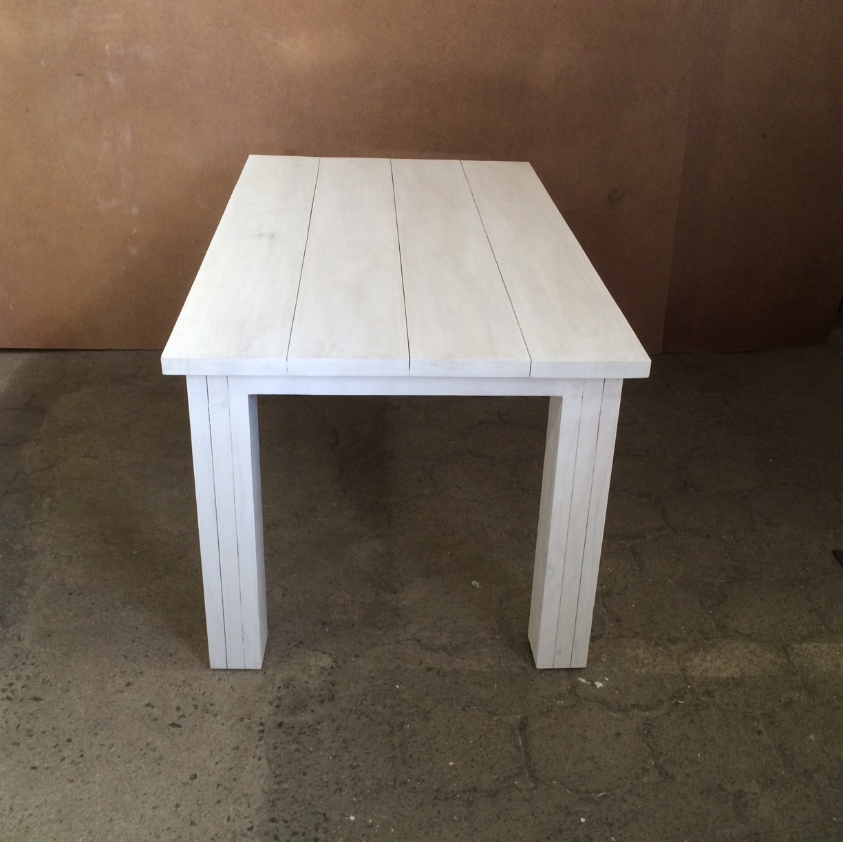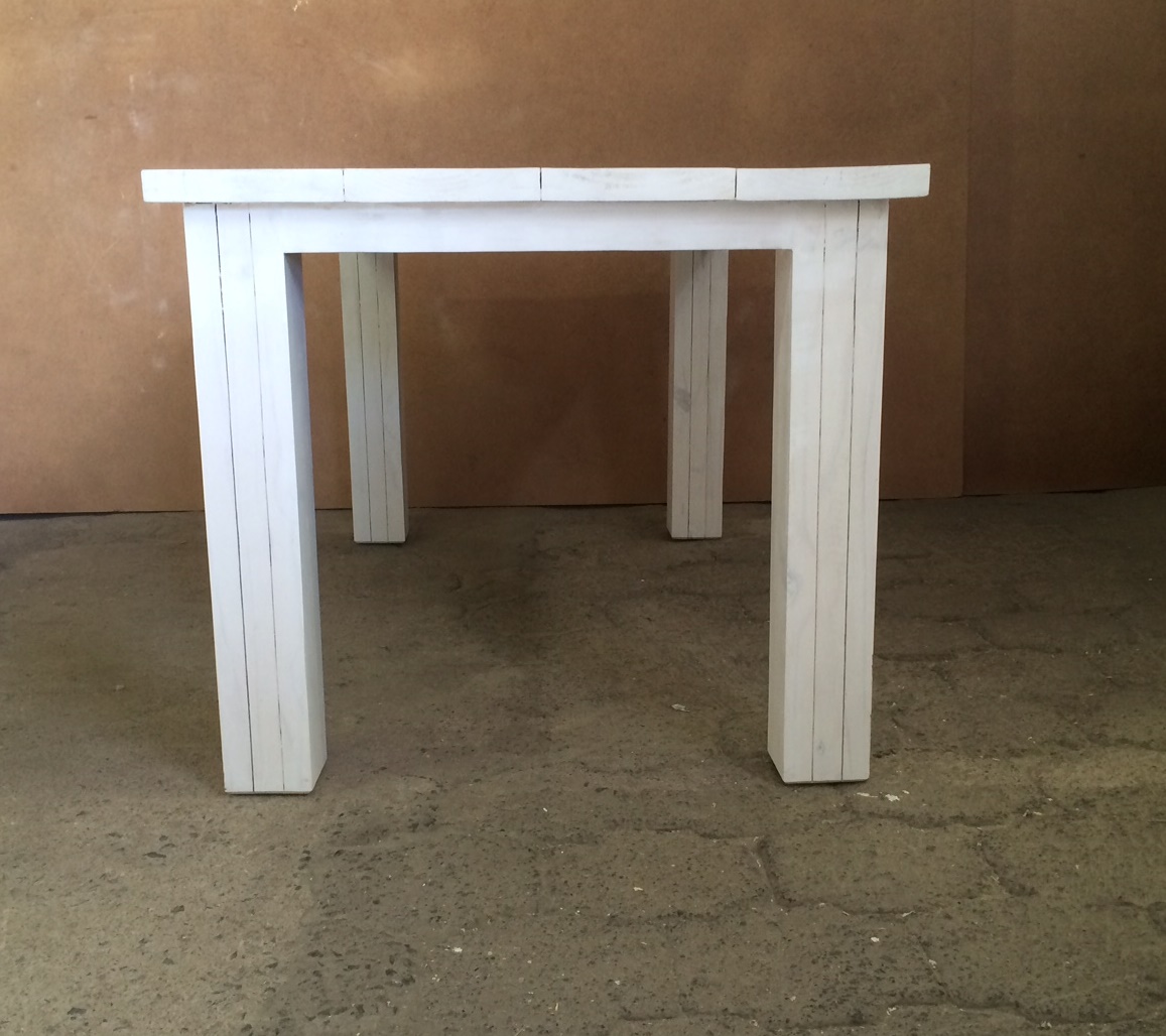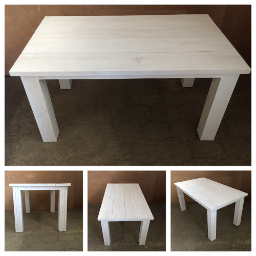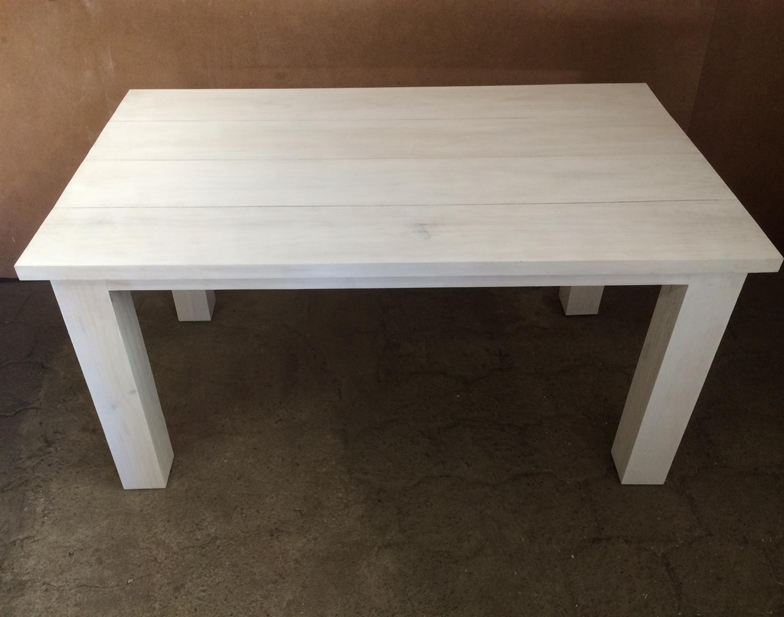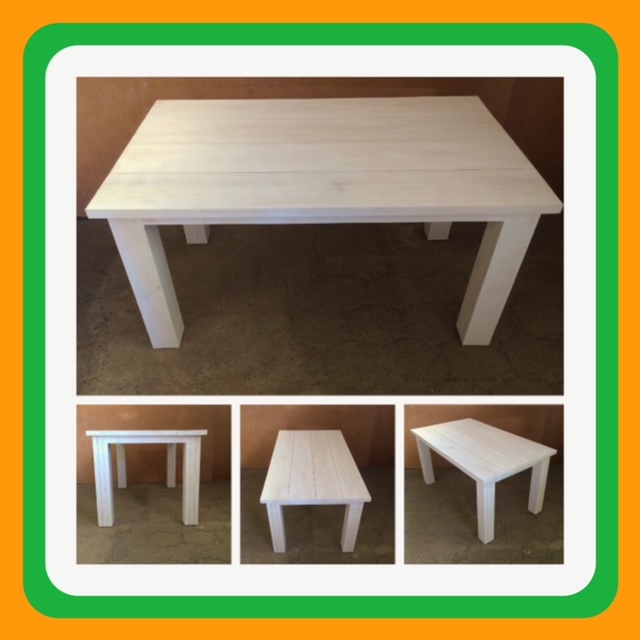 This beautiful table can seat 6 people. The top consists of 38mm thick slats and nice thick legs to give it a chunky appearance. Very sturdy and heavy, will also be an excellent dining-room table.