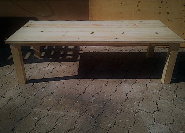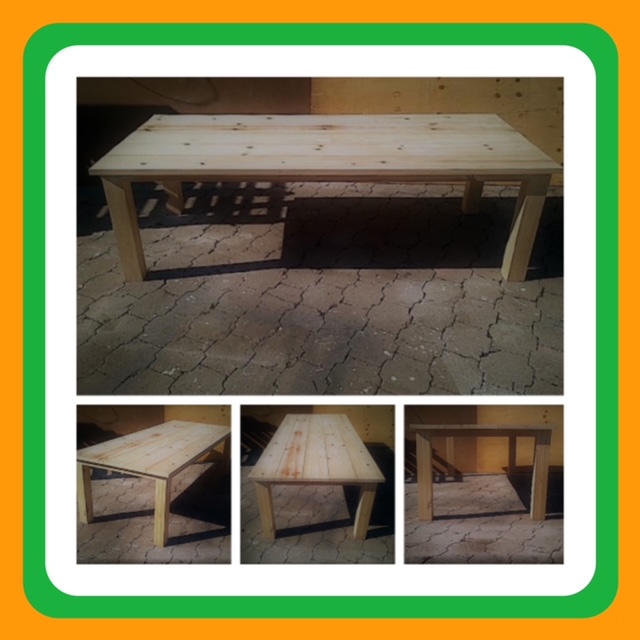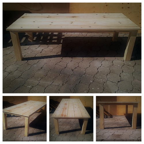 This beautiful table can seat 10 people. The top consists of 38mm thick slats and nice thick legs and to give it a chunky appearance. Very sturdy and heavy and will also be an excellent dining-room table. Benches are optional.