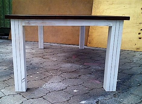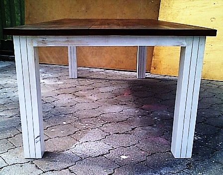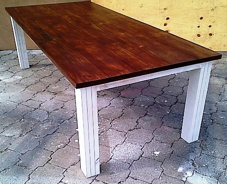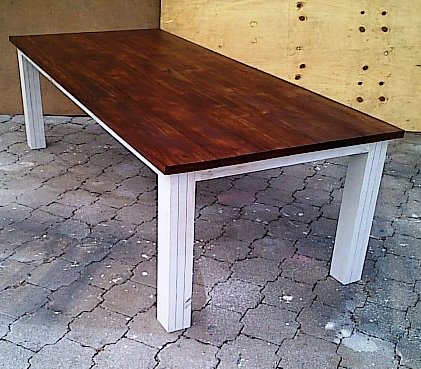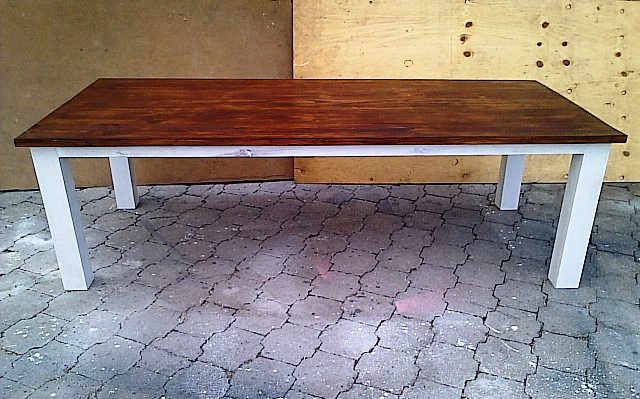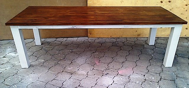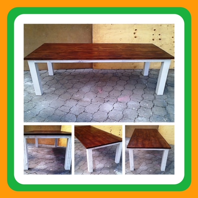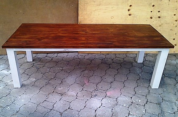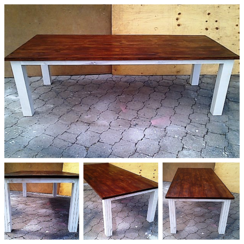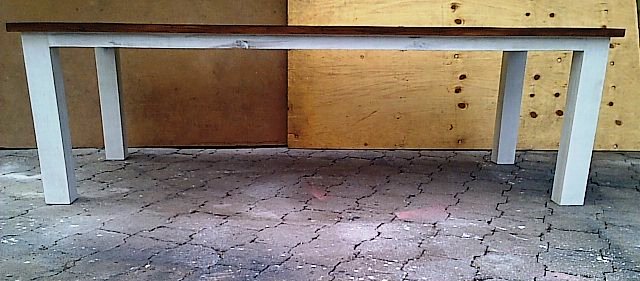 A beautiful hand-made table that can seat 10 people. This magnificent table is made from 38mm thick slats with nice thick legs to give it a chunky appearance. Very sturdy and heavy and will also be an excellent dining-room table. Benches are optional.