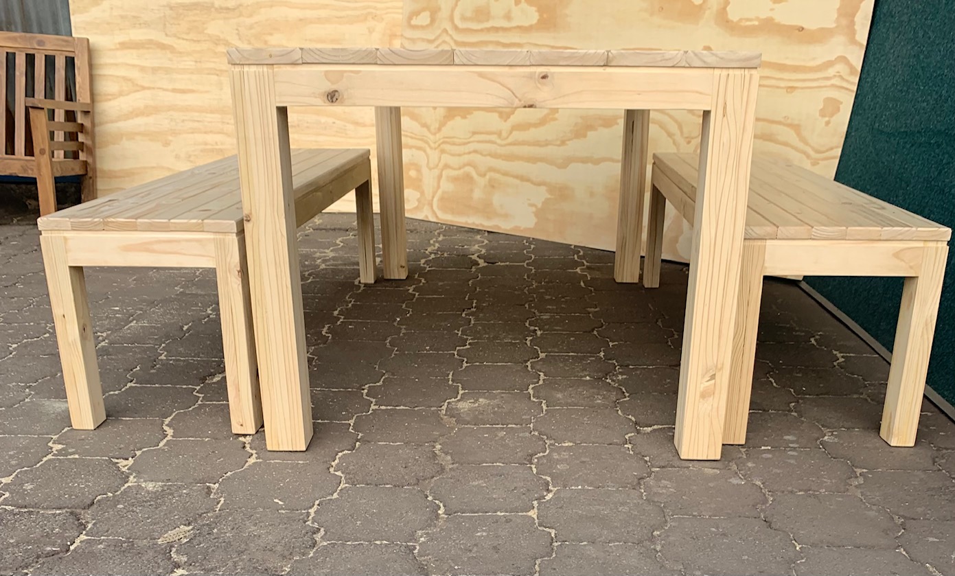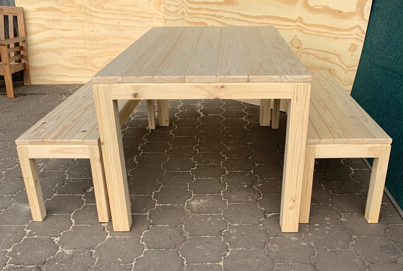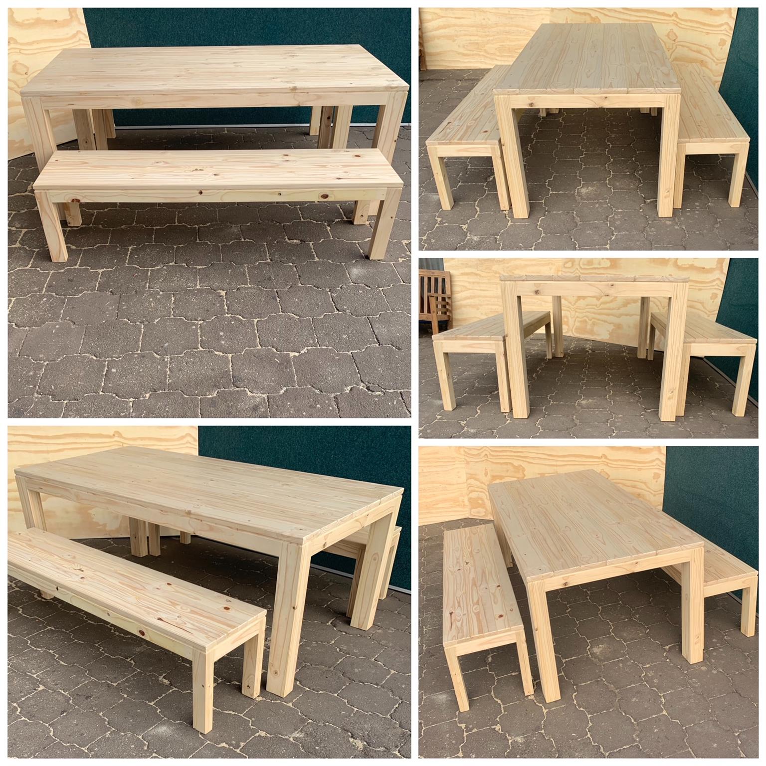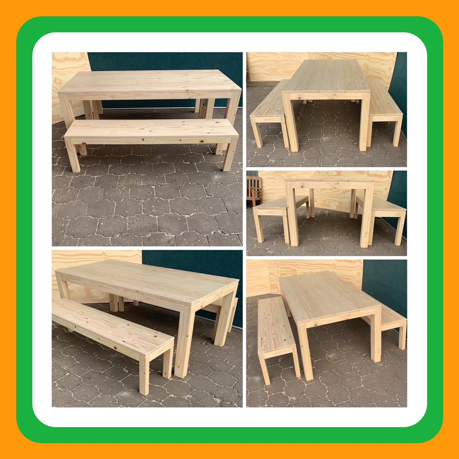 Beautiful hand-made Patio table and bench combo that can also be used as a dining table or a kitchen table in larger kitchens. Can seat 8 people.