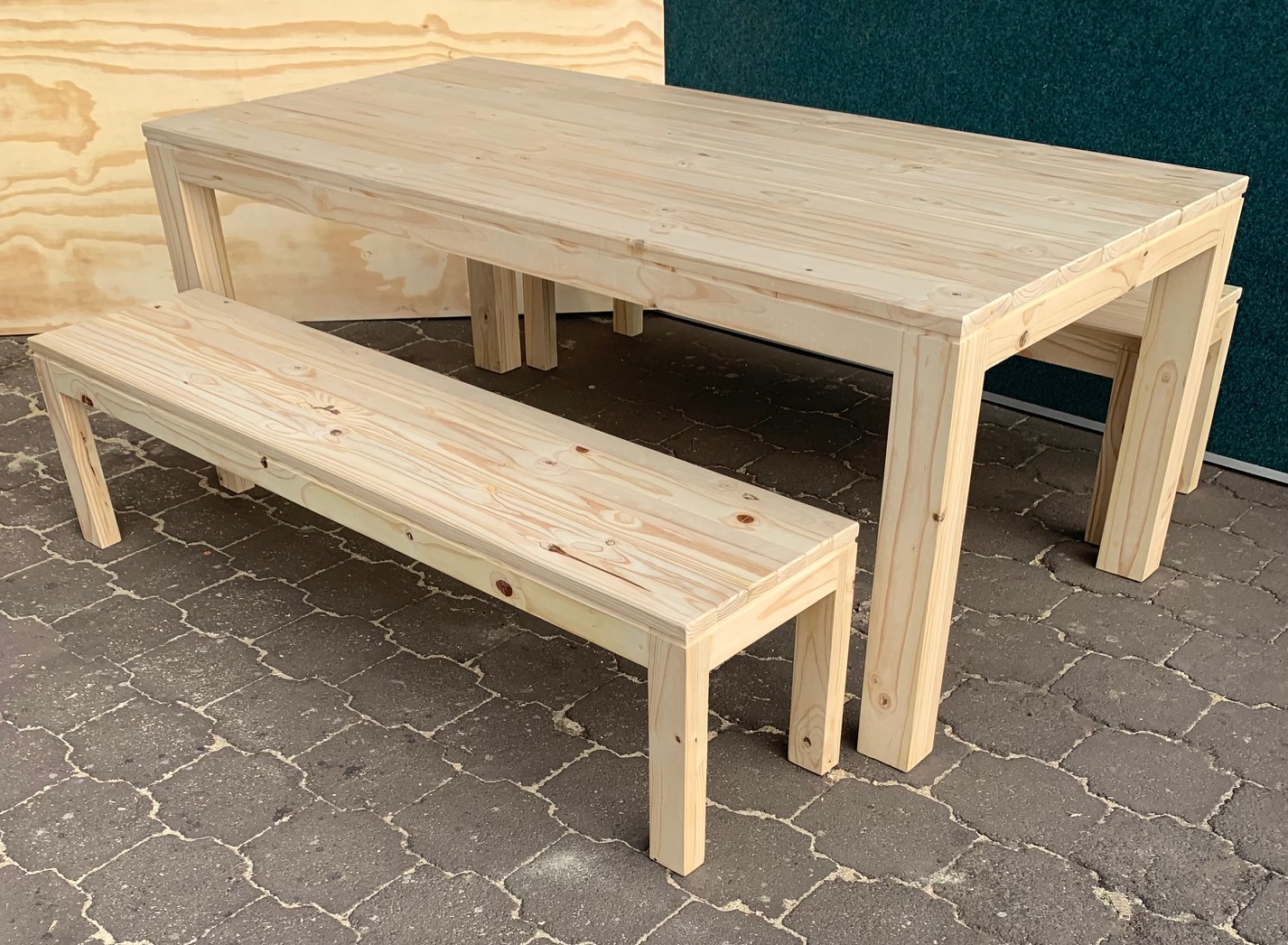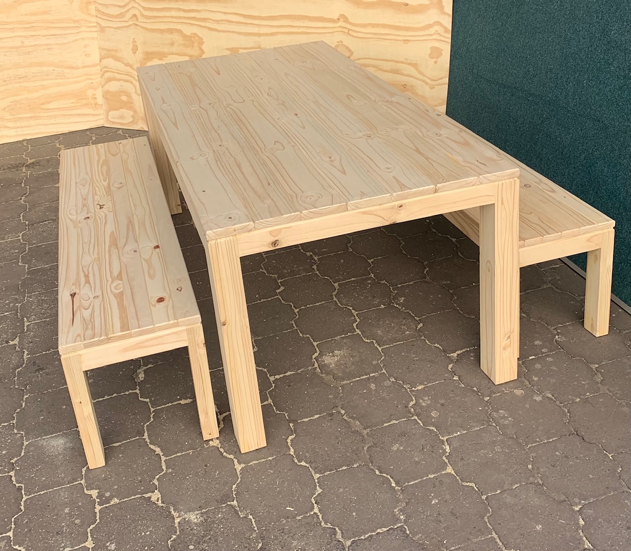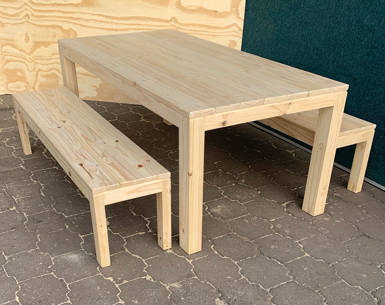 Beautiful hand-made Patio table and bench combo that can also be used as a dining table or a kitchen table in larger kitchens. Can seat 8 people.