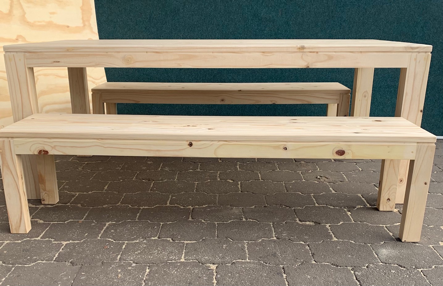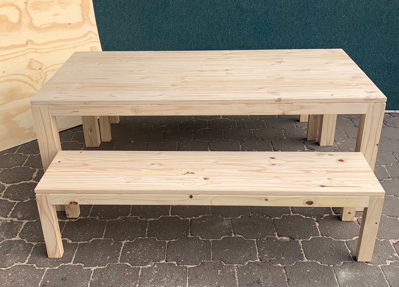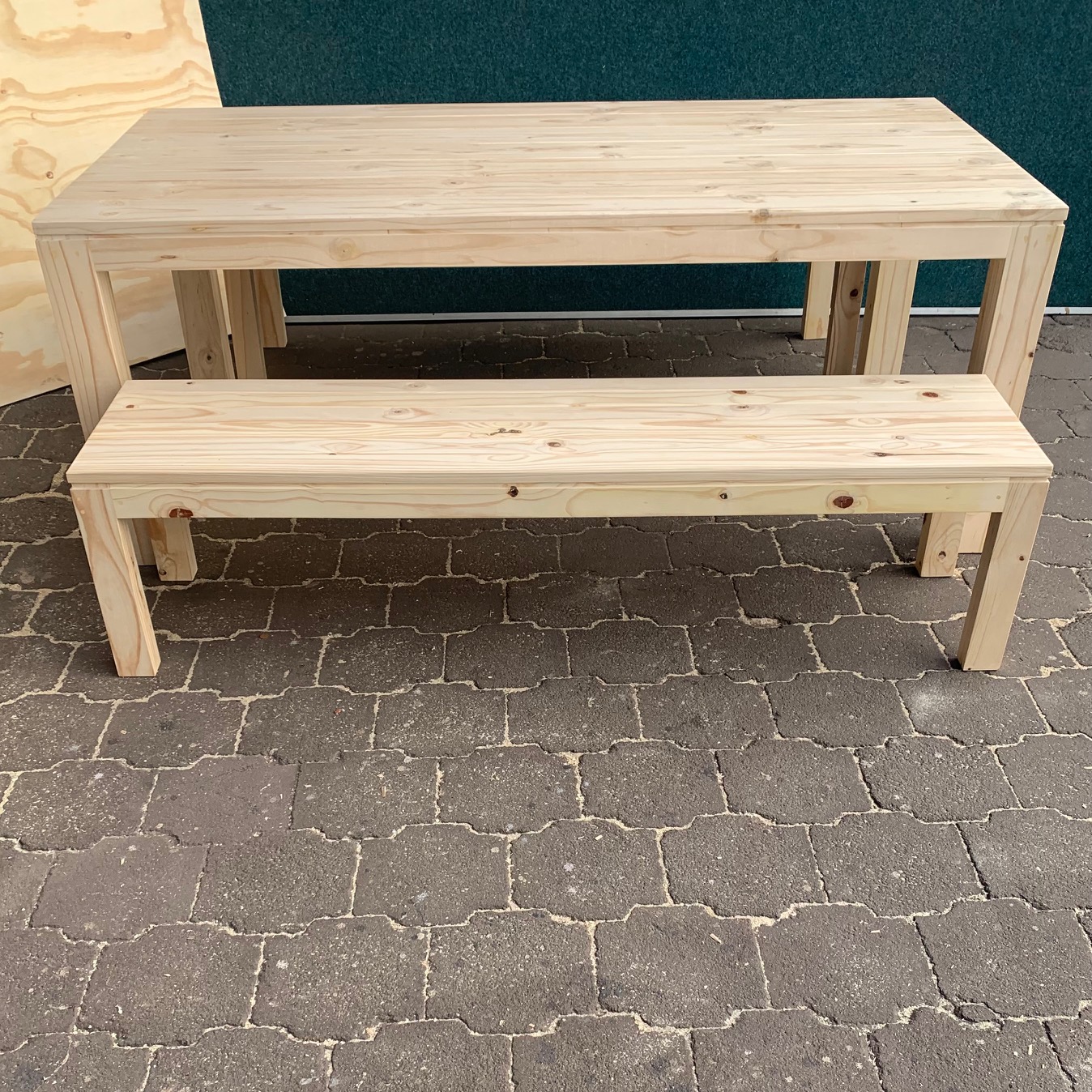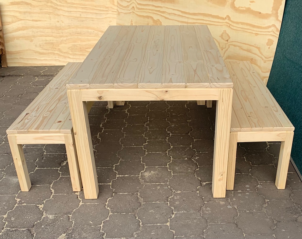 Beautiful hand-made Patio table and bench combo that can also be used as a dining table or a kitchen table in larger kitchens. Can seat 8 people.